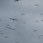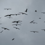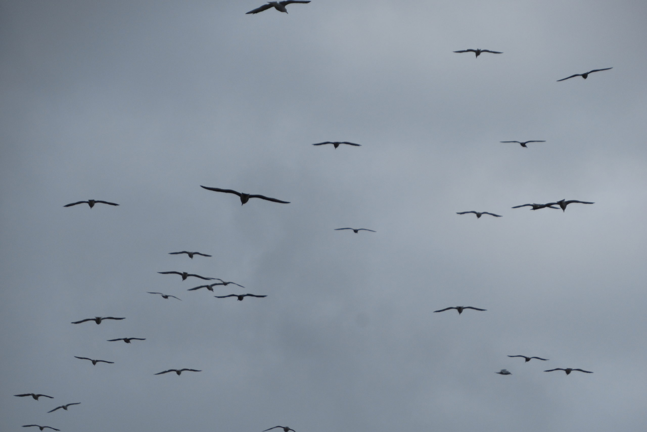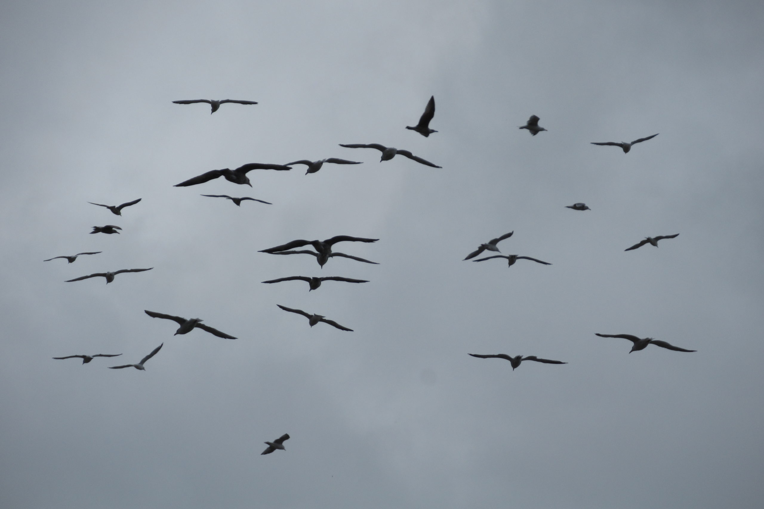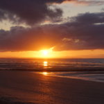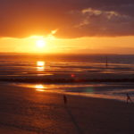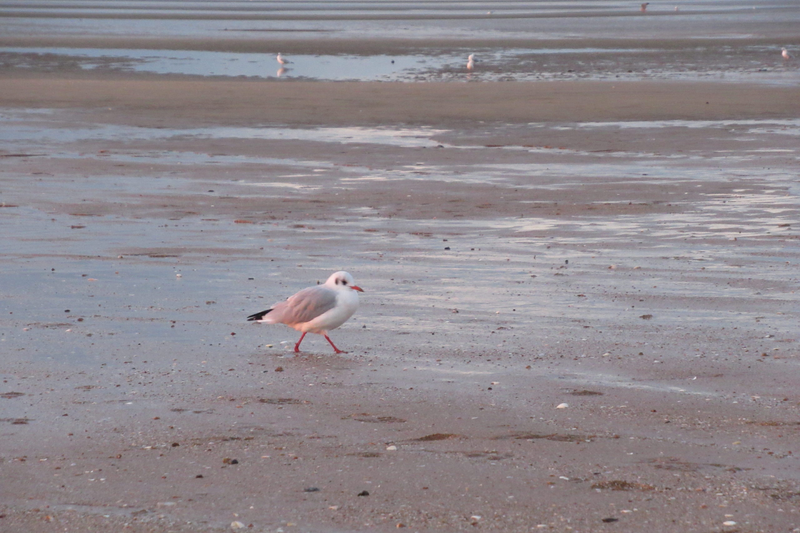 • En soirée, enfin 20h15… contemplation d’un beau coucher de soleil (le dernier) depuis notre belle grande plage, précédé d’un remake de « Les oiseaux » : goélands et mouettes sont de sortie, en groupe !