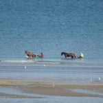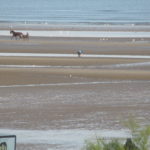 • De bon matin les trotteurs sont « au travail » sur la plage, mais pour la première (et seule fois) le temps va devenir maussade. Peu de roulage en campagne, 16km/20mn, pour atteindre Ranville et le musée mémorial du Pegasus Bridge (photo ci-dessus), situé juste à droite avant le pont actuel.