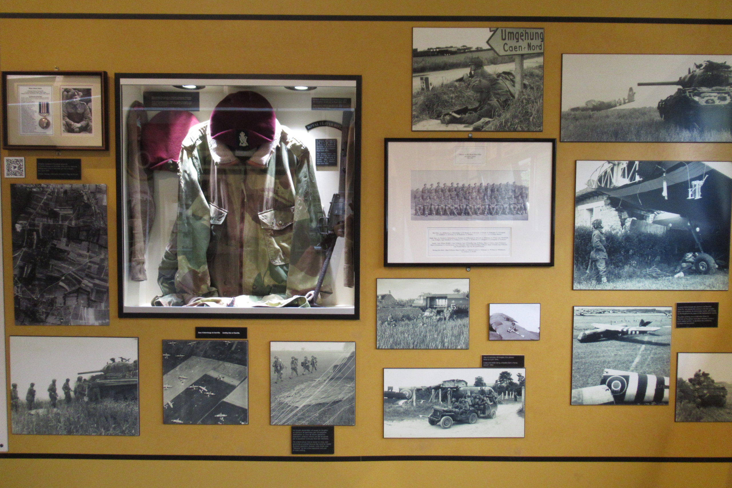 • Quelques heures avant le débarquement (du 6 juin 1944) la 6ème division aéroportée Britannique à réussi à poser 3 énormes planeurs et 90 soldats + matériel à proximité du pont et à s’en emparer intact pour avoir le contrôle de l’axe routier Caen/Ouistreham. C’est cette épopée qui est évoquée dans ce beau musée avec maquettes, photos, matériel, film.