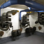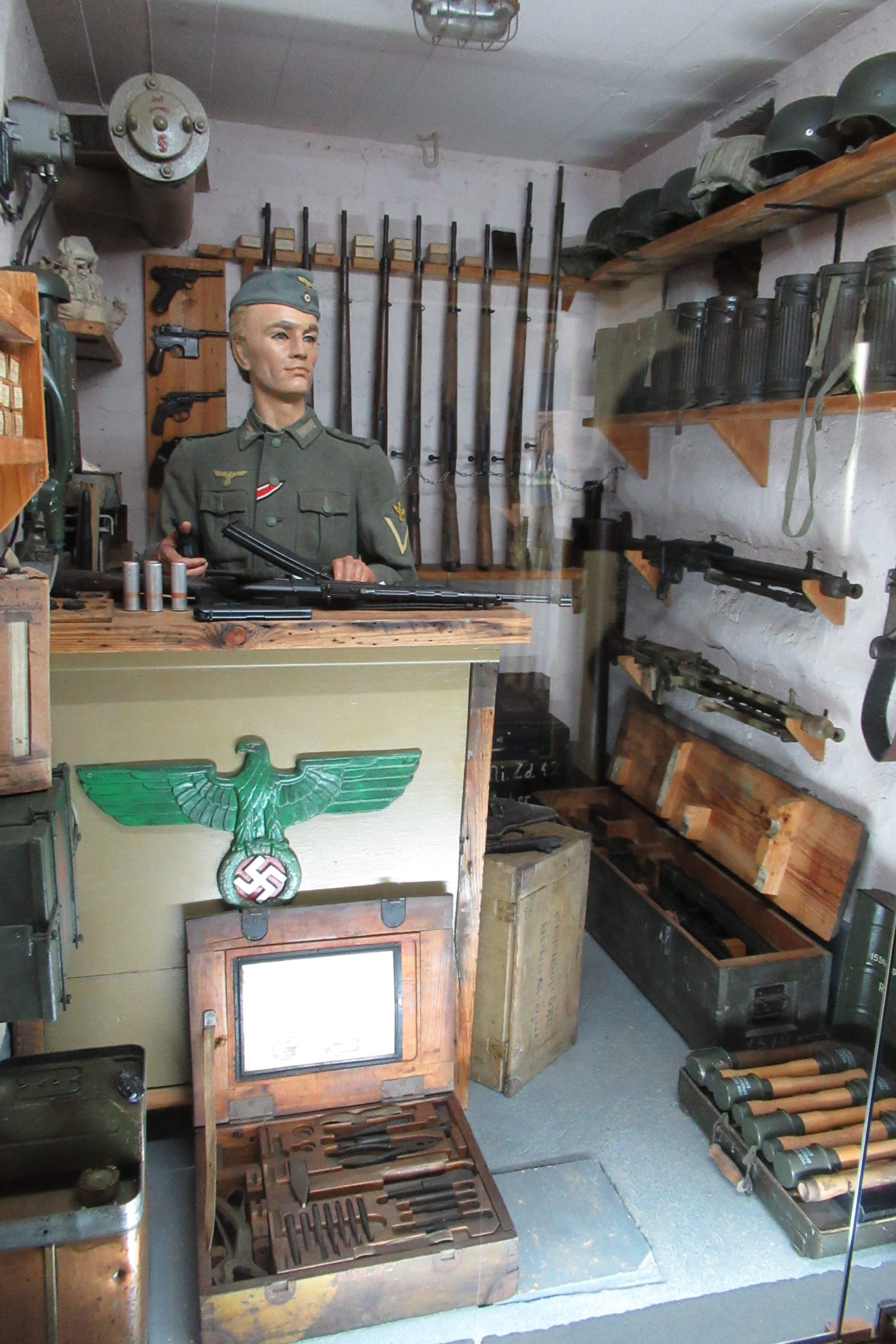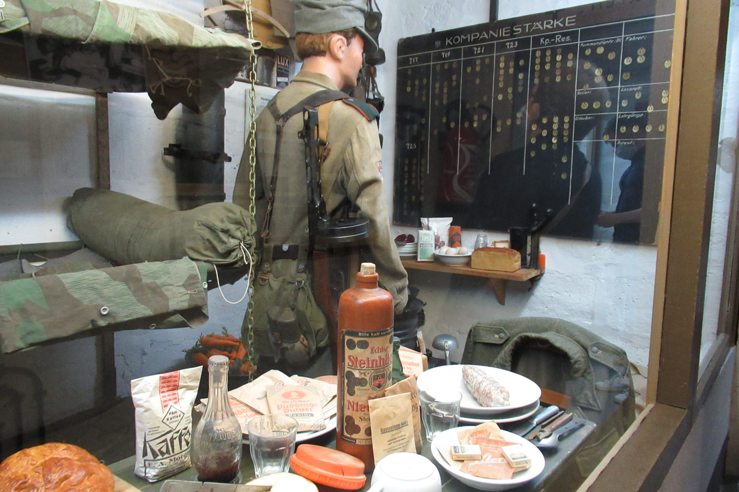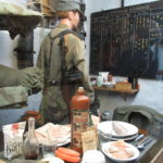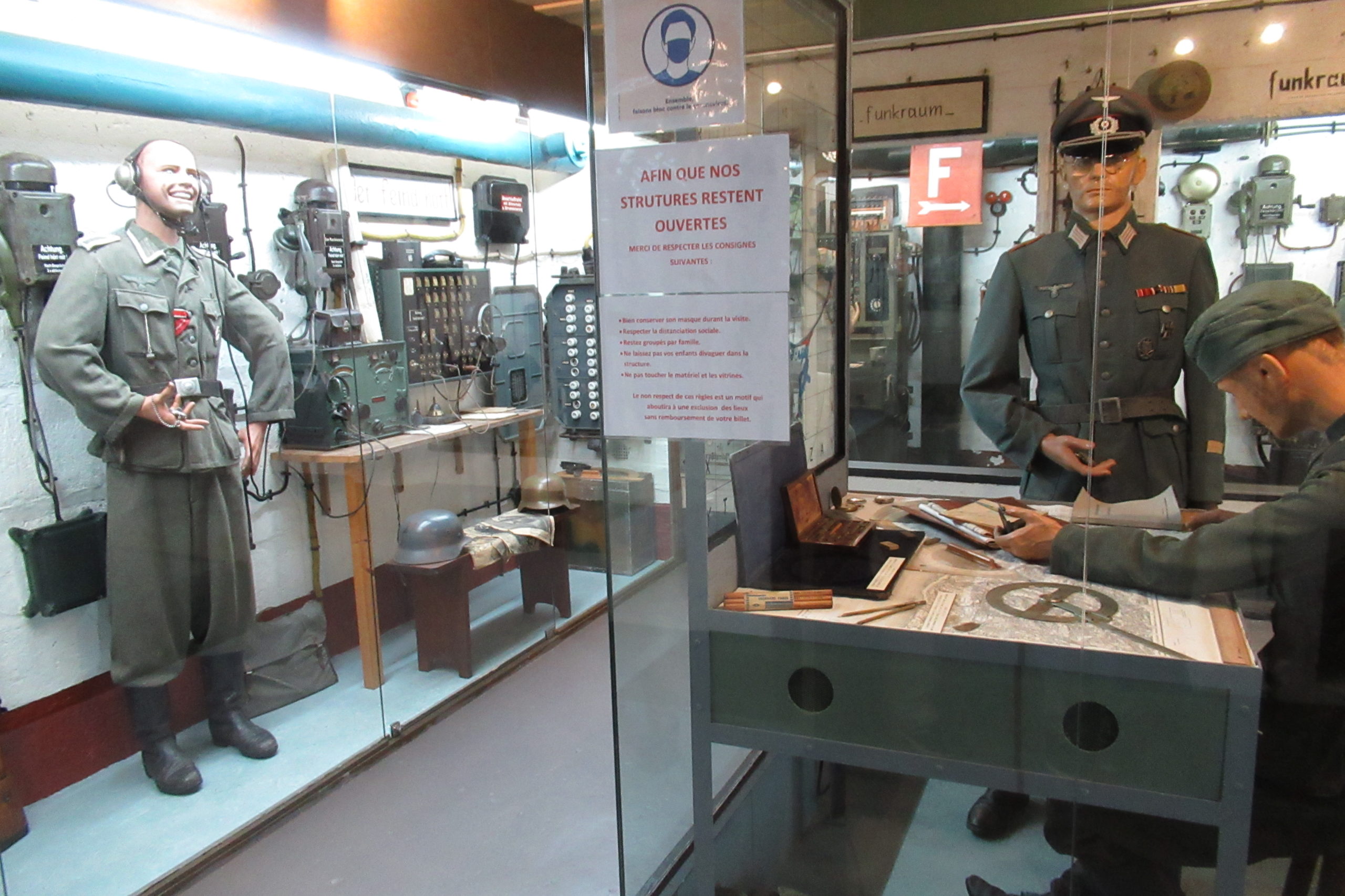• Vers 13h30 nous commençons la visite de cet ouvrage unique*** intitulé Musée du mur de l’Atlantique, c’est une tour en béton de 17m et 5 étages/80 marches. Poste d’observation Allemand tenu par 50 hommes environ. Toutes les salles sont reconstituées dans les moindres détails : machines, chambres, infirmerie, radio/téléphone, observation par télémètre. Compter 1h00/8€ par pers. Voir aussi le matériel dans la cour dont la Vraie barge d’assaut* vue dans « il faut sauver le soldat Ryan » de Spielberg.