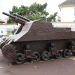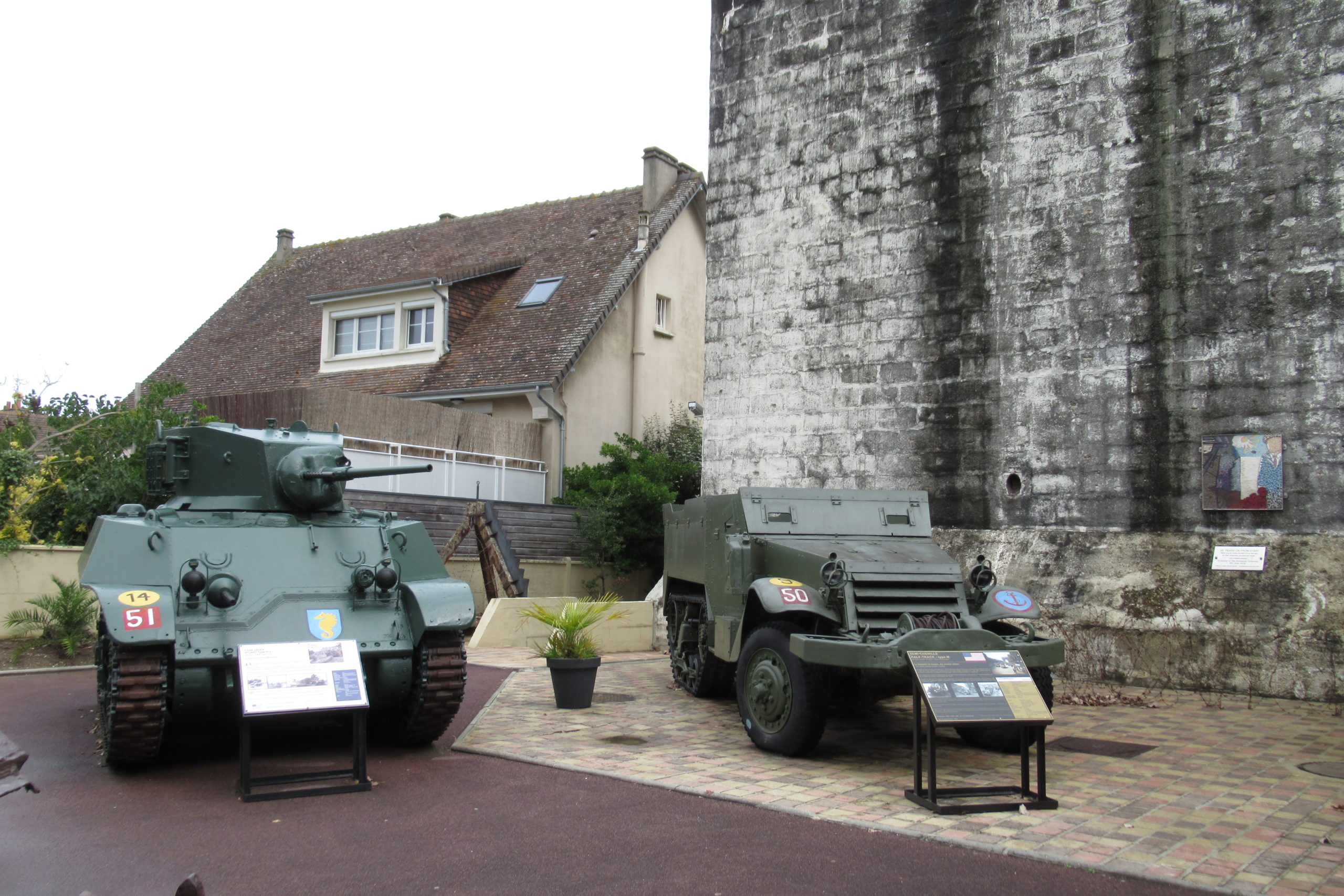 • Suivent 7 petits km/10mn pour pique-niquer à Ouistreham près de la gare maritime et du Grand Bunker. Le soleil est revenu et nous voyons passer divers engins improbables (motos, autos des années 30 à 50…) encore fringants. Ce sont les prémices d’un grand rassemblement sur la plage.