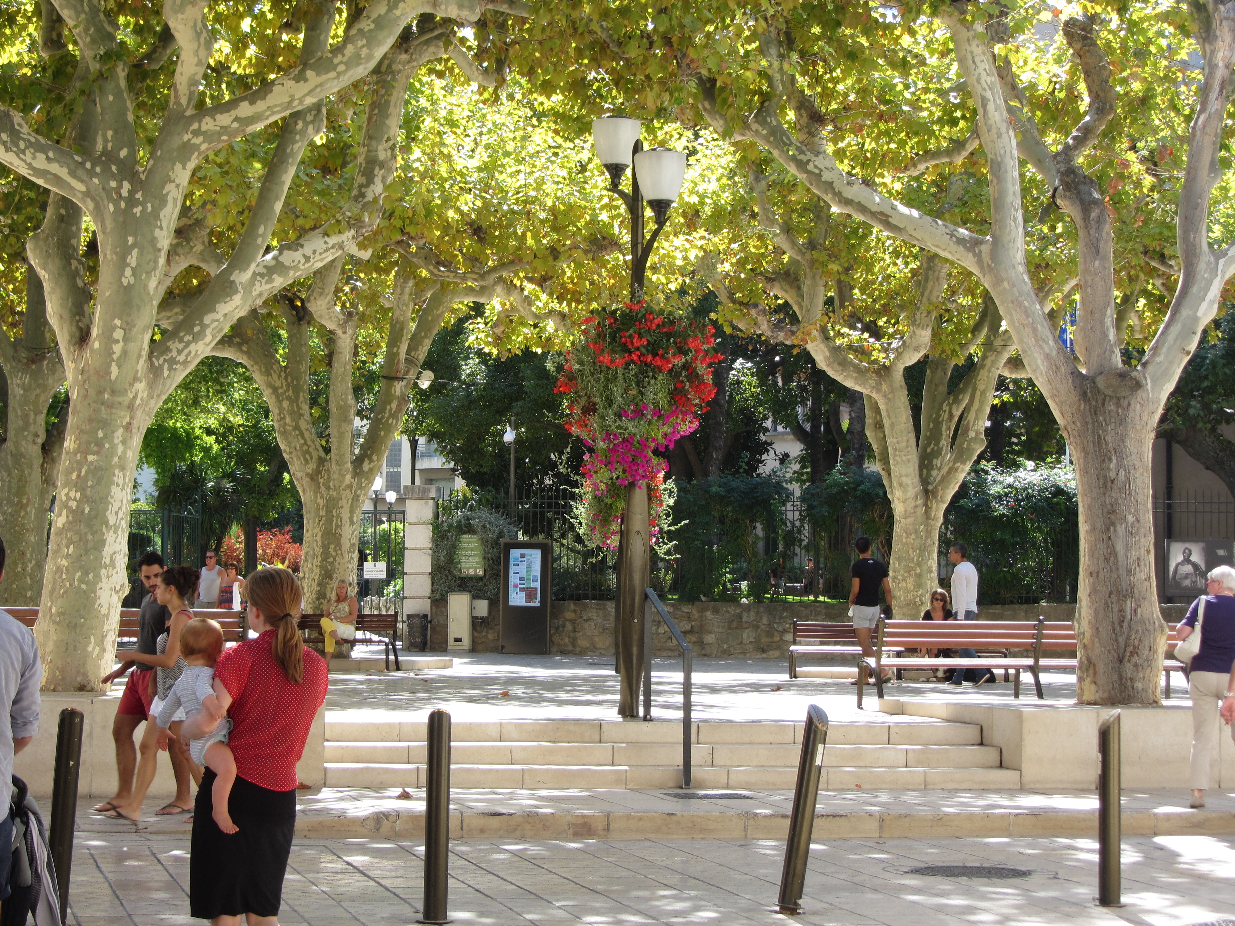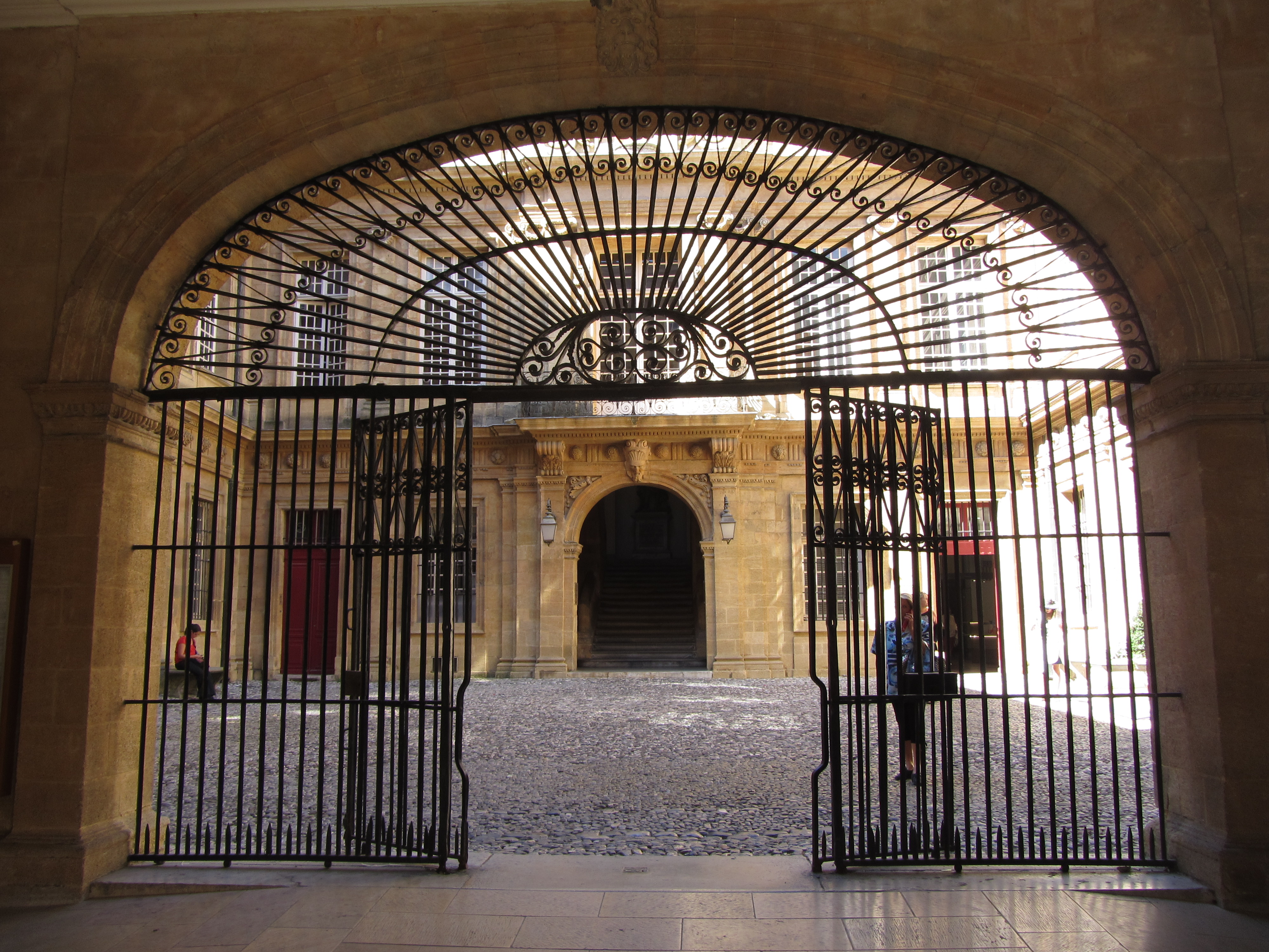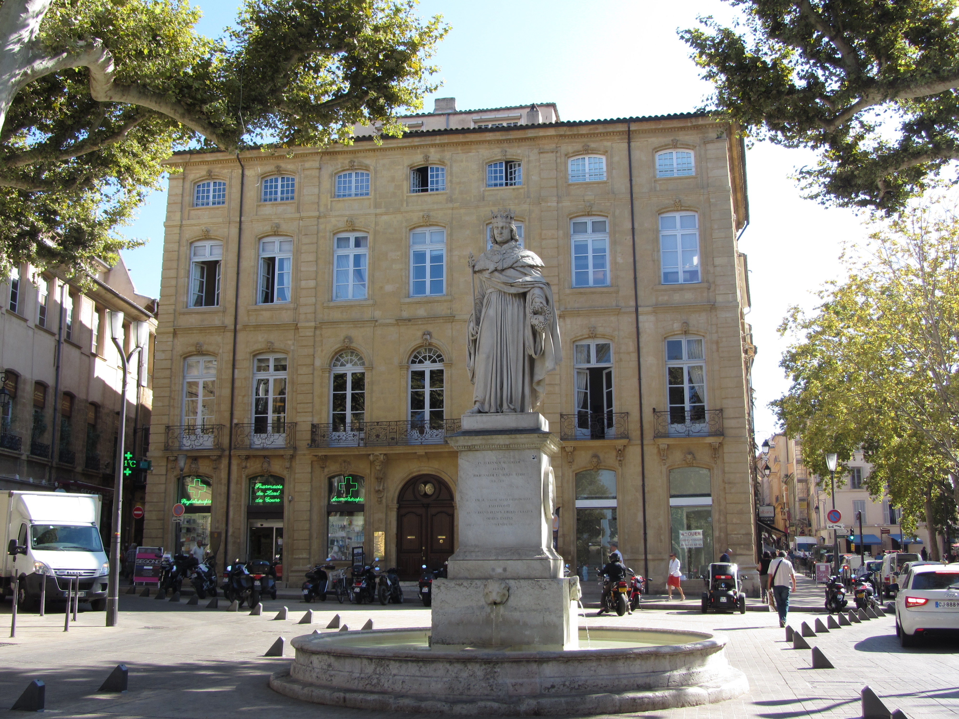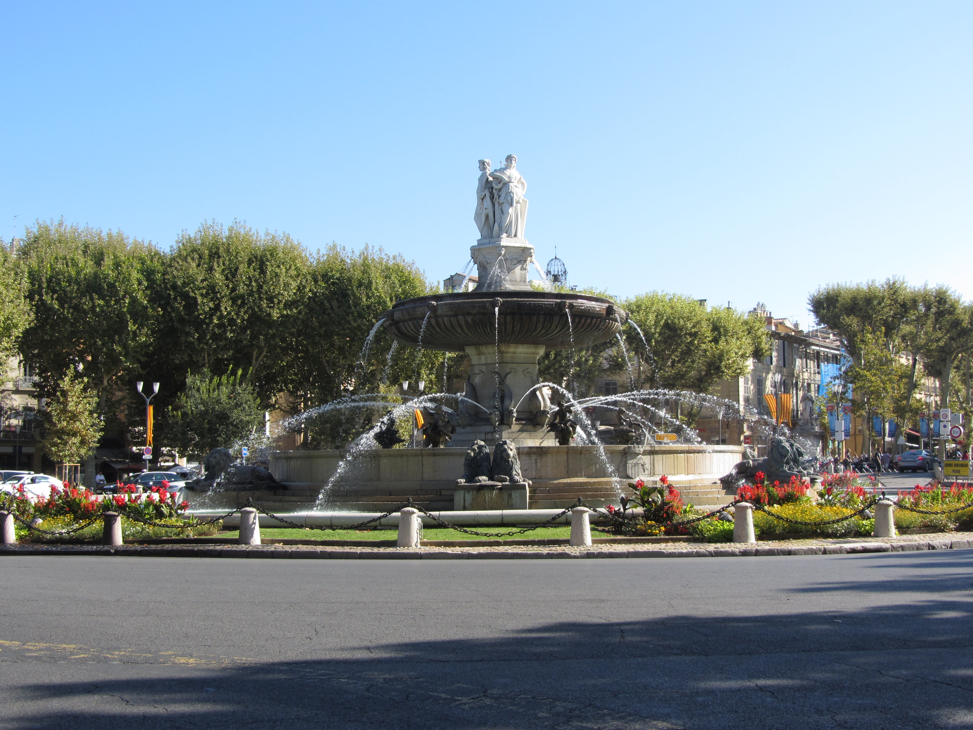 • Vendredi 12/09: Journée à Aix en Provence à 50km, où dès 10h30 nous entrons à l’office du tourisme (sympa, petite expo), près de la fontaine de la Rotonde. S’en suit, la remontée du cours Mirabeau avec ses autres fontaines et hôtels particuliers, puis l’hôtel de ville et les vieux quartiers (piétons…) où les calissons et vrais santons nous font craquer. Repas au Beffroi (53€/3pers. très moyen…). Pour finir par la cathédrale et le cloître St Sauveur (magnifiques). Très belle journée dans cette ville animée et accueillante.