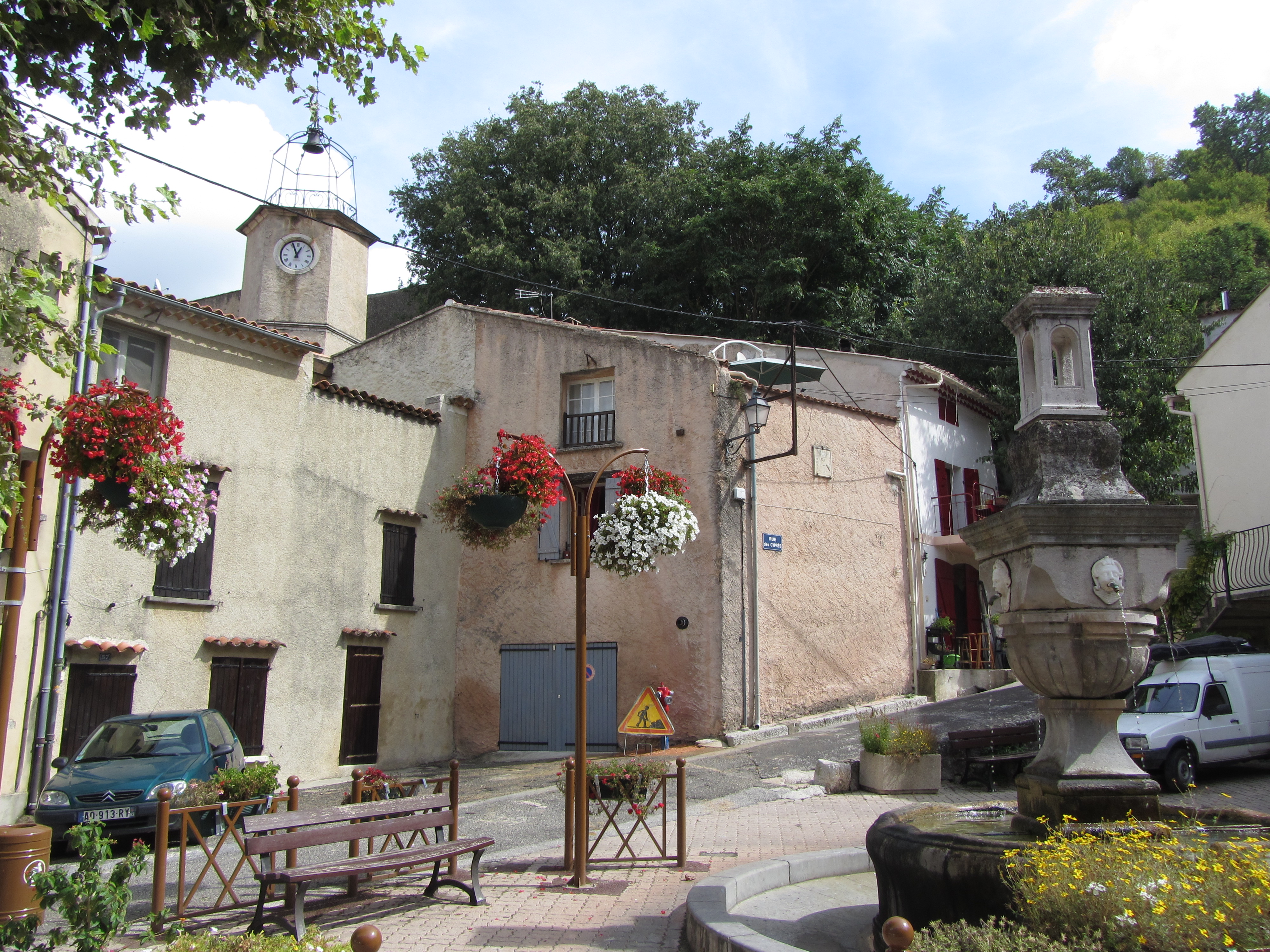 • Mercredi 17/09: matinée relax avec la visite de St Maximin, le centre historique, le marché, la Basilique (intérieur un peu fatigué, crypte intéressante). Et l’après-midi, petite escapade vers St Zacharie à 18km, petit bourg désert avec sa Maison du Peuple et ses 16 fontaines, ex « capitale de la céramique ». Dîner au gîte en Table d’hôtes (130€/3pers. prix excessif, qualité moyenne).
