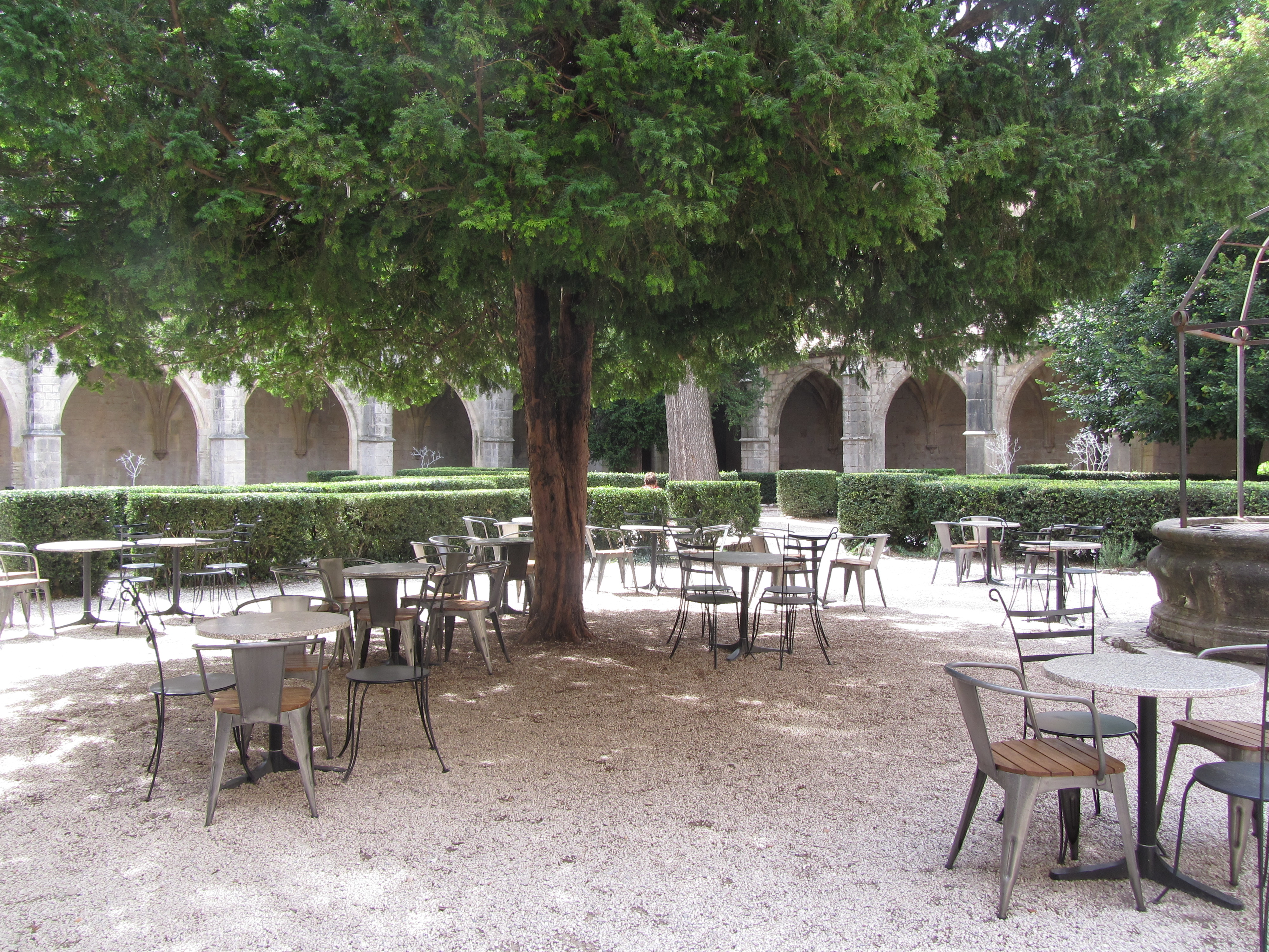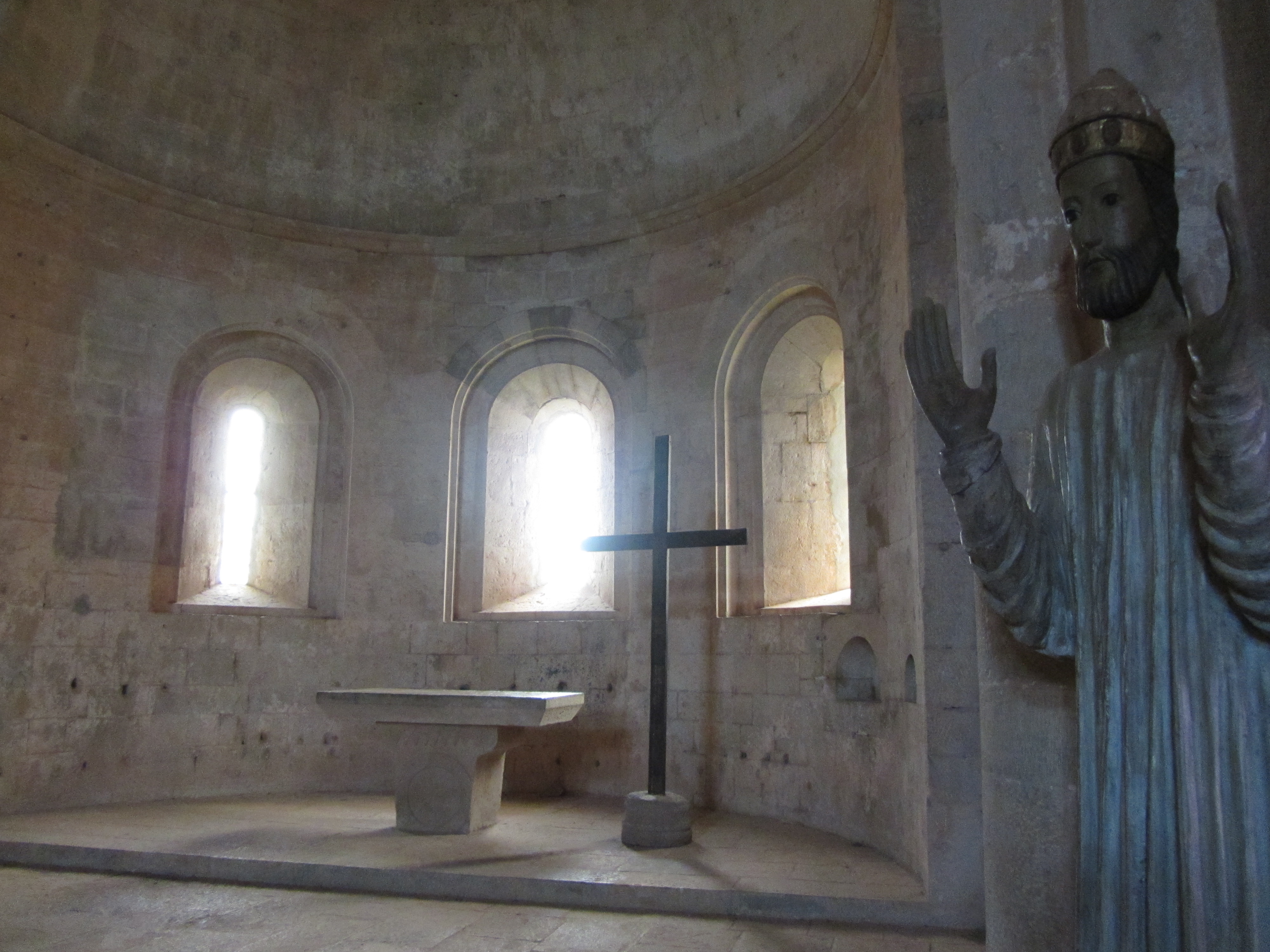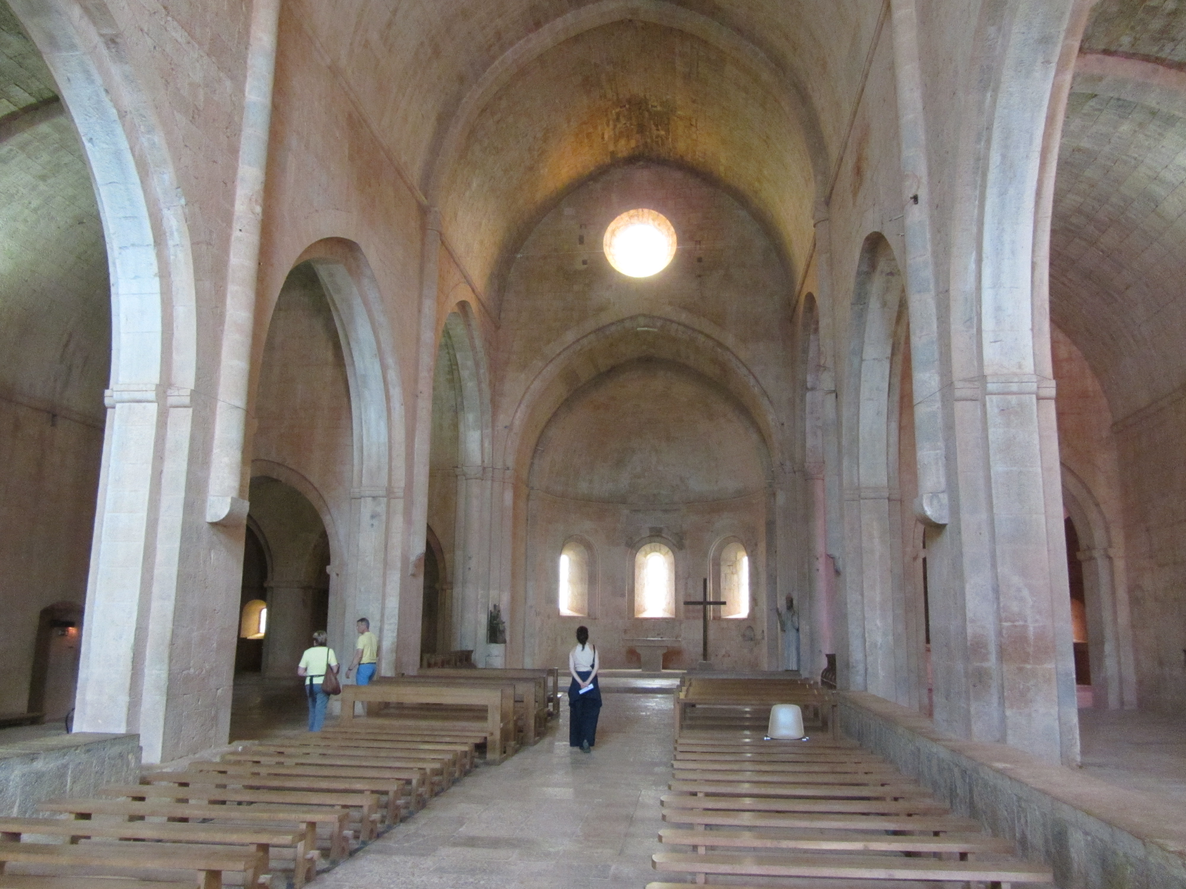 • Vendredi 19/09: Cap au Nord/Est pour visite des villages de Bras, Barjols et Cotignac (églises, fontaines, vieilles rues), c’est joli et toujours très calme. Bon repas à la crèperie Sarrazine de Cotignac (61€/3pers.). Encore un peu de route Sud/Est pour atteindre le but du jour: la visite de l’abbaye du Thoronet (compter 1h15 en visite libre, 10h00/18h30-8€), beaux bâtiments mais nombreux groupes bruyants (touristes/étudiants) qui cassent le recueillement de l’endroit, et cloître négligé avec ses herbes folles. Signalétique nulle ! décevant. Retour direct au gîte.