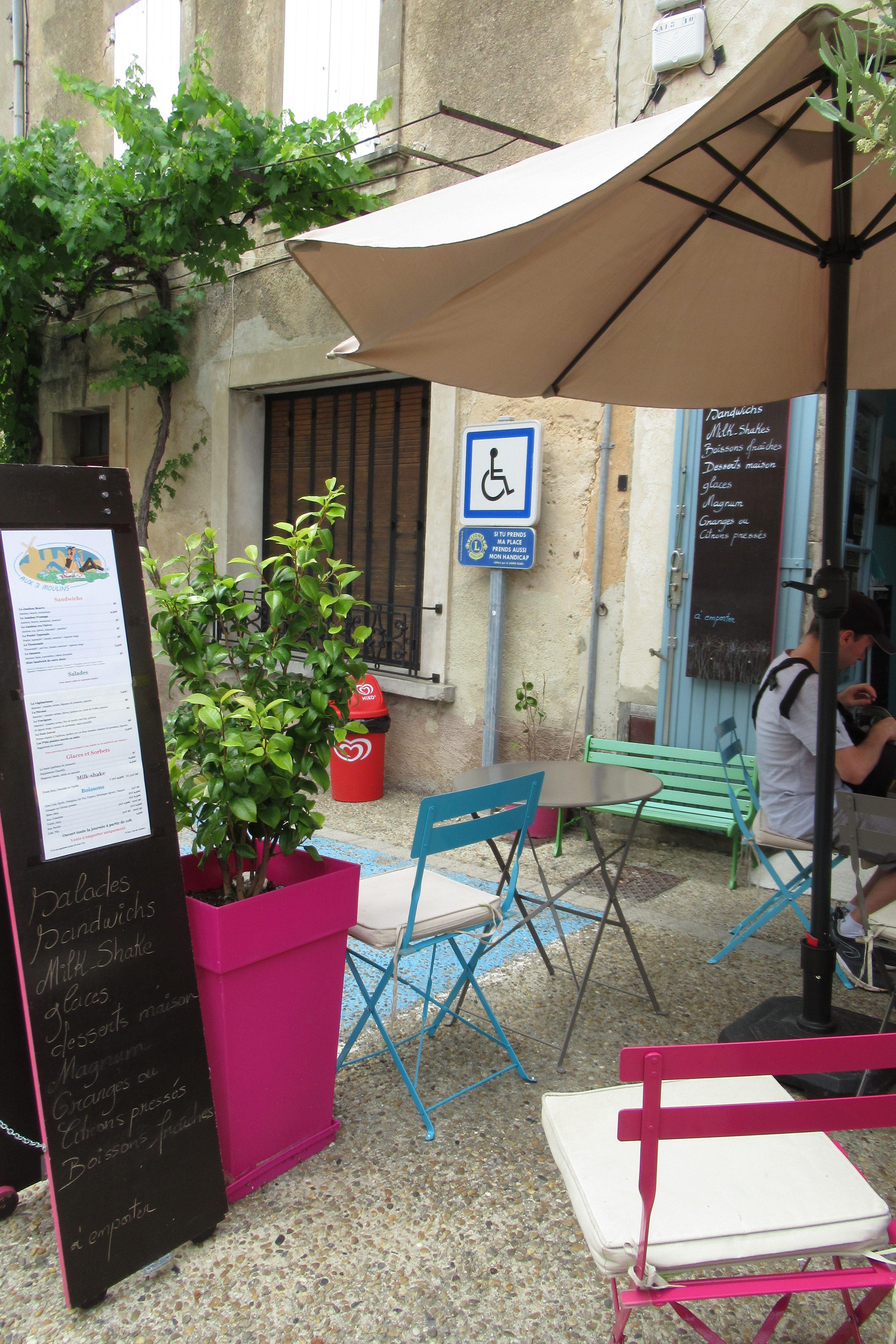 - Saut de puce de 11km/15mn pour le très joli village de St Saturnin les Apt***, calme et soigné, un peu plus animé vers l’entrée où nous nous posons Aux 3 Moulins, terrasse accueillante et sandwichs confectionnés à la demande, du frais avec le sourire, super ! nous ne pousserons pas jusqu’au château atteignable par un chemin fort caillouteux.