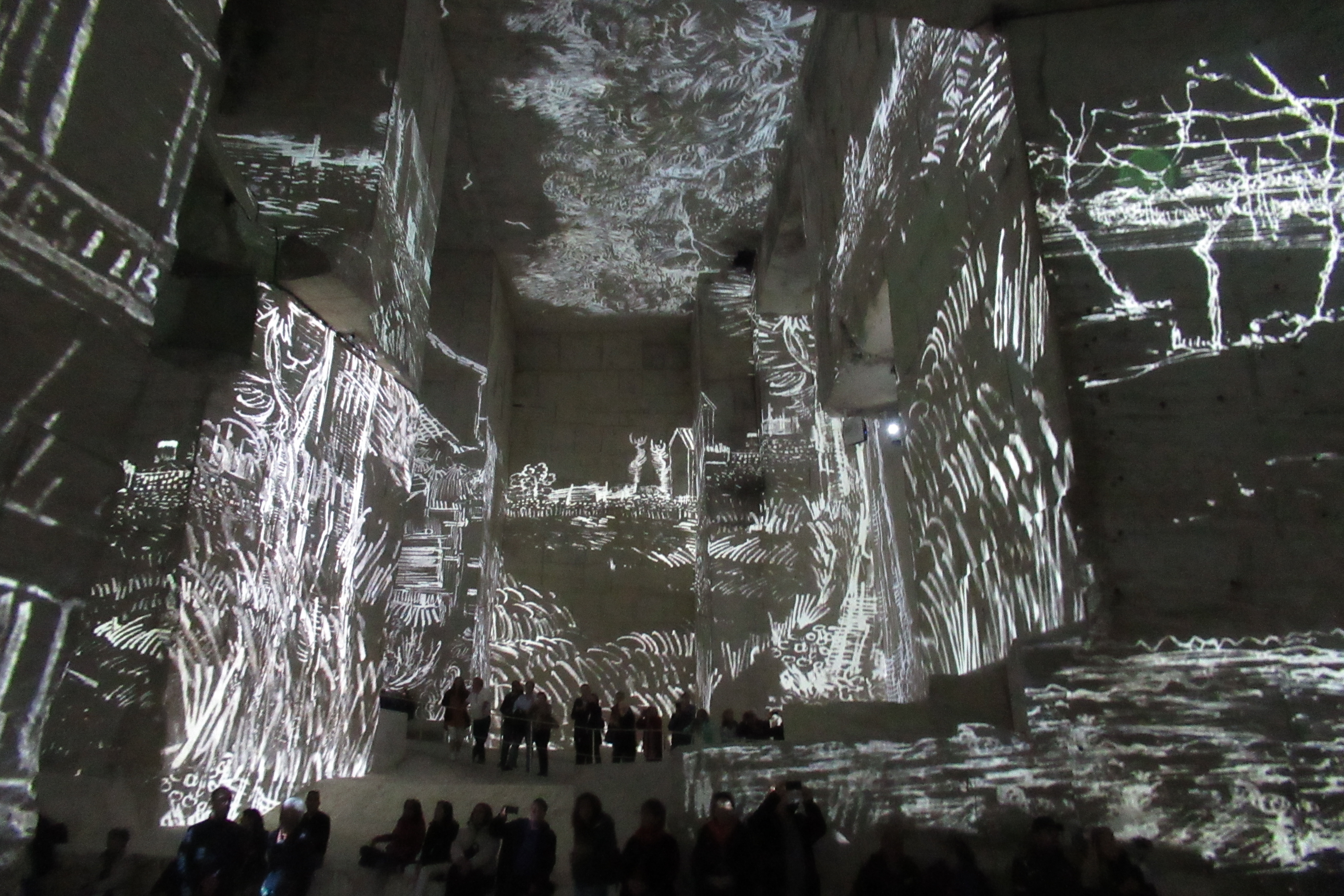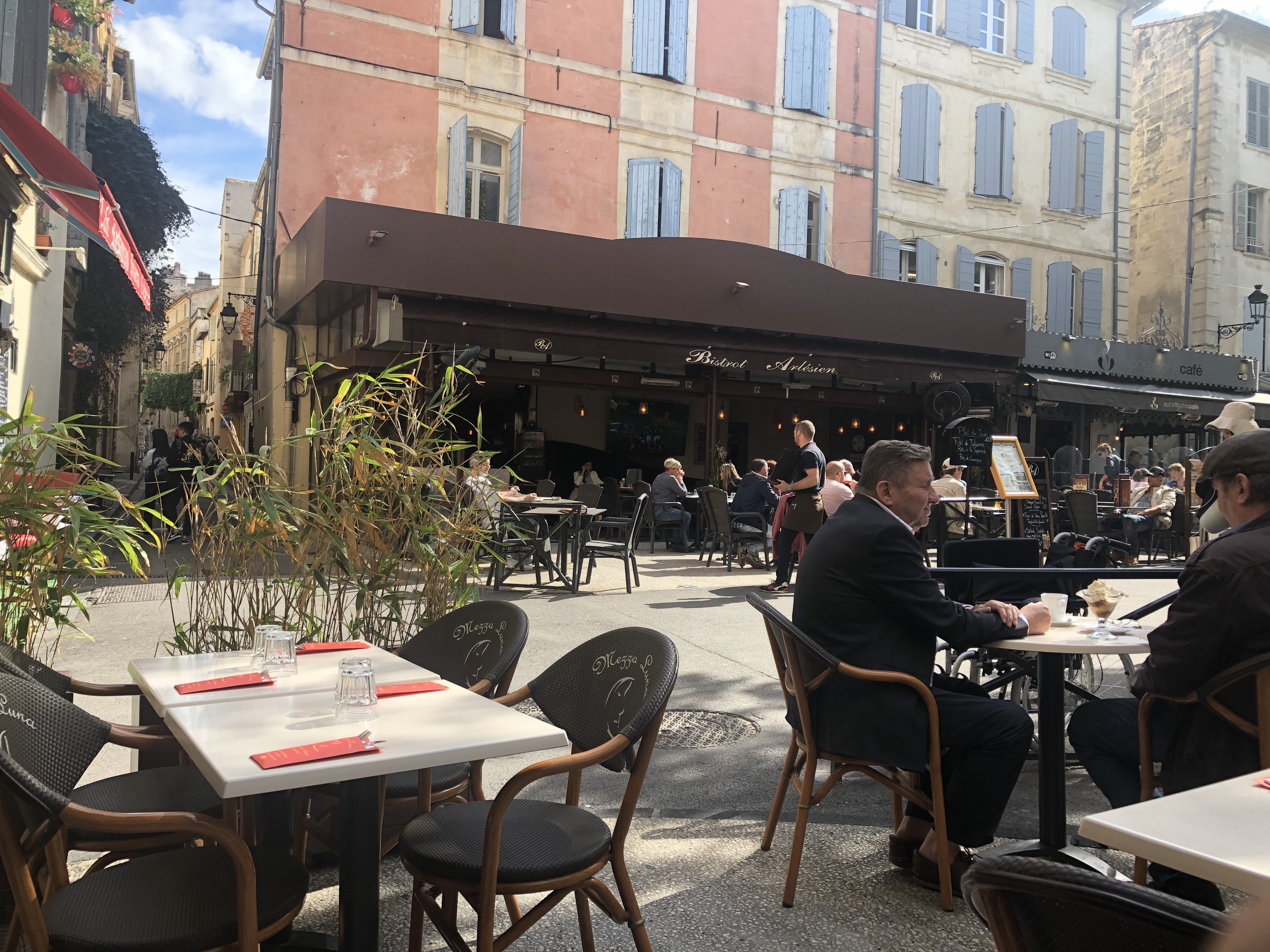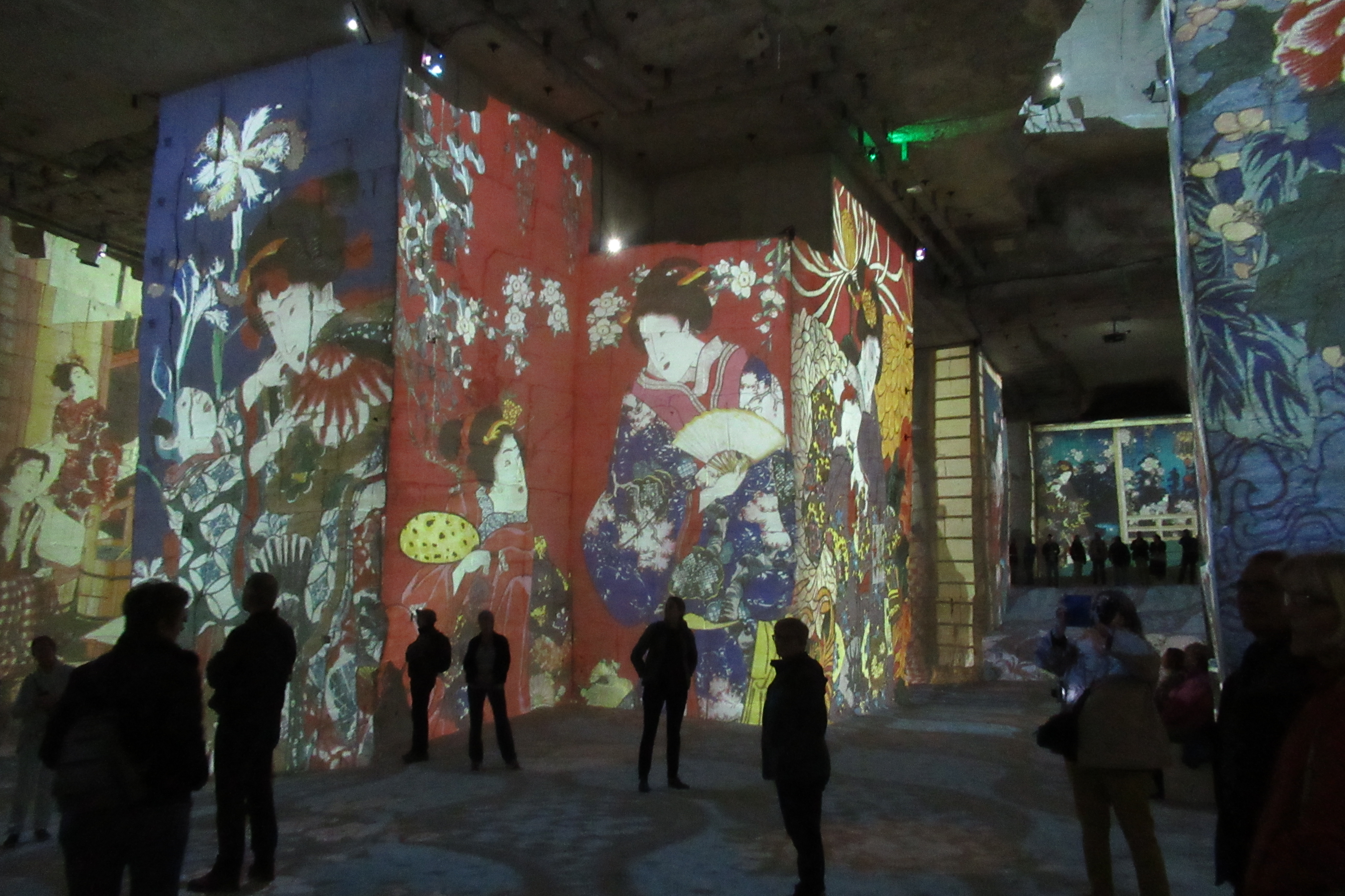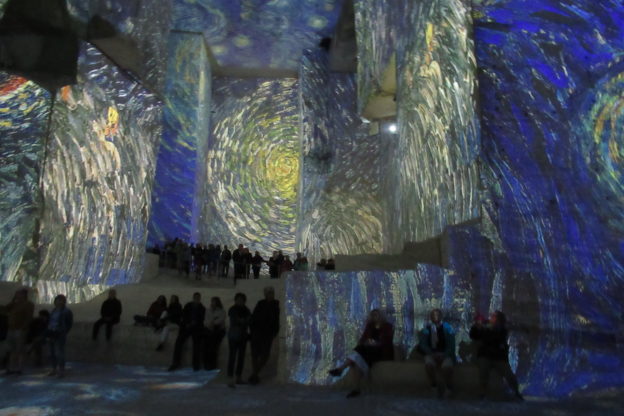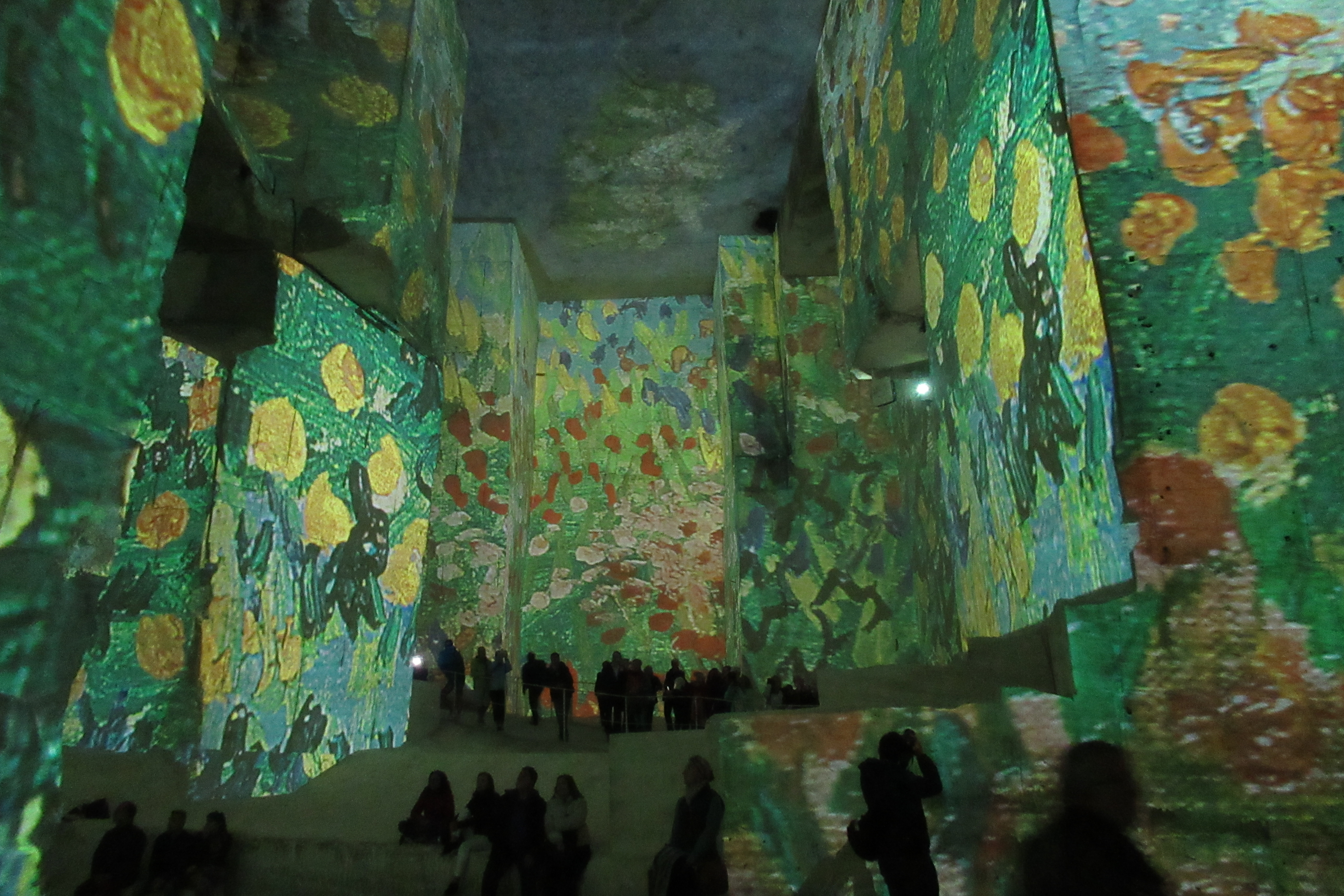 • Lundi 07/10: Vers les Baux de Provence à 10km/15mn, par le Val d’Enfer, pour Les Carrières de Lumières (parking facile cette fois-ci, et entrée réservée à 10h00-12€/pers. pas de file), pour un spectacle son et lumières inoubliable, encore plus magnifique avec Van Gogh (que Picasso en 2018), autre partie très jolie sur le Japon (nous les avons regardé 2 fois=2h00). Il y a encore la projection sur Jean Cocteau dans une salle annexe. Retour à St Remy pour un pique-nique en chambre, sieste, puis visite du centre historique: église/Collégiale St Martin, maison (!) de Nostradamus, ruelles et places désertes ce lundi. Dîner (pas terrible) à la Brasserie du Commerce… Nuit 2/2 au chalet Fleuri. Bilan 5km à pieds.