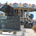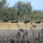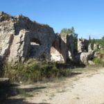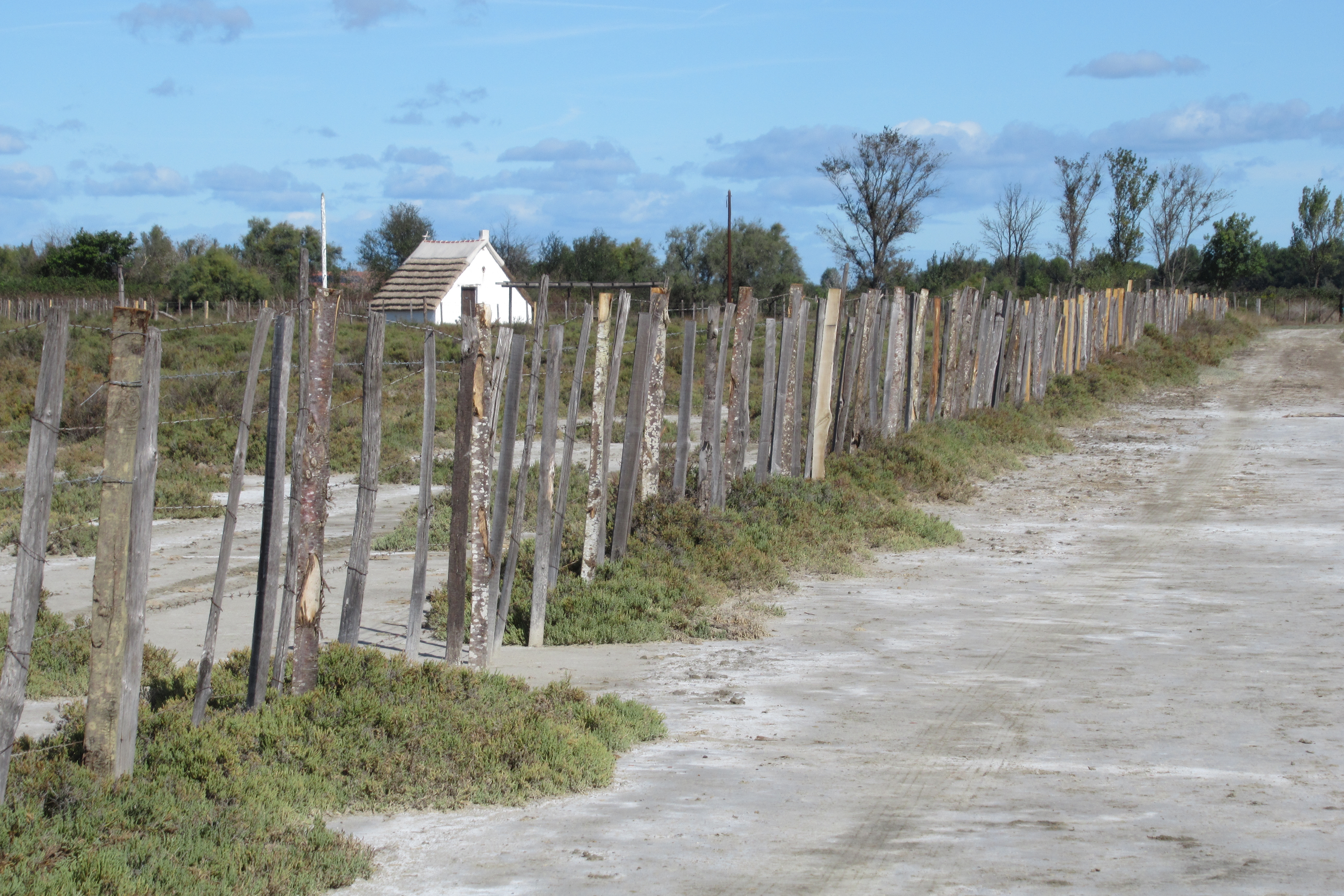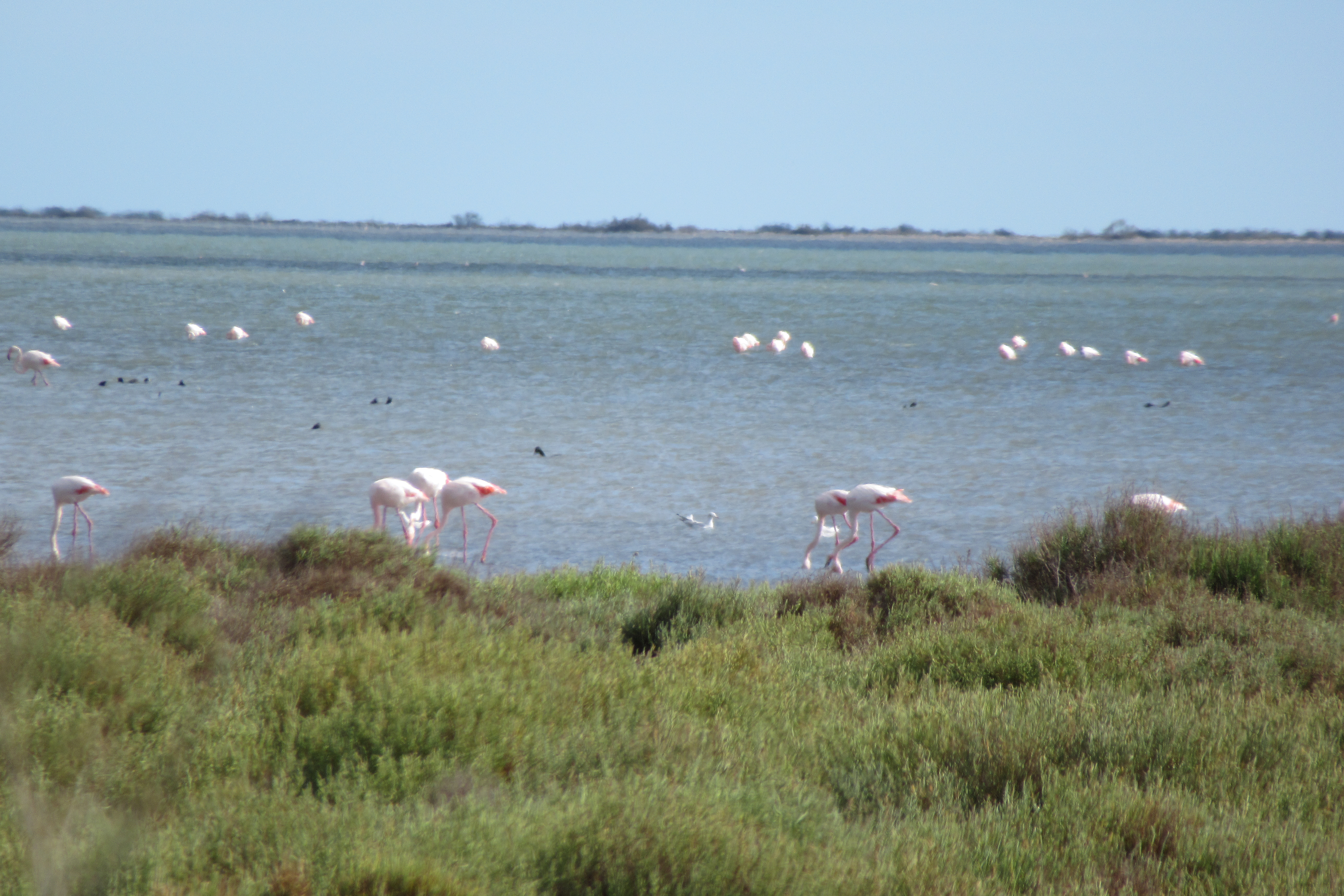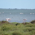 • Samedi 05/10: journée Camargue et Saintes Maries de la Mer… d’abord 30km/35mn vers l’Ouest pour atteindre le Musée de la Camargue** (5€/pers. présentation moderne et très intéressant), puis balade de 1h30 dans la nature mais rien observé ! encore 22km/20mn pour le parc ornithologique du Pont de Gau (que nous zappons vu l’heure, dommage !), et 5km pour se poser aux Stes Maries de la Mer. Joli centre ville animé, pique-nique sur place, belle église avec les Maries (Salomé/Jacobé) et Ste Sarah. Retour par un chemin caillouteux longeant l’étang du Vaccarès au niveau bien bas (flamants roses à l’horizon…). Tout proche de Fontvieille nous allons voir les ruines imposantes de l’aqueduc de Barbegal. Bilan 8km à pieds. Resto chez Adam à Fontvieille. Nuit 3/3 au Madaleno.
