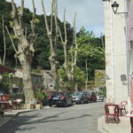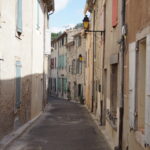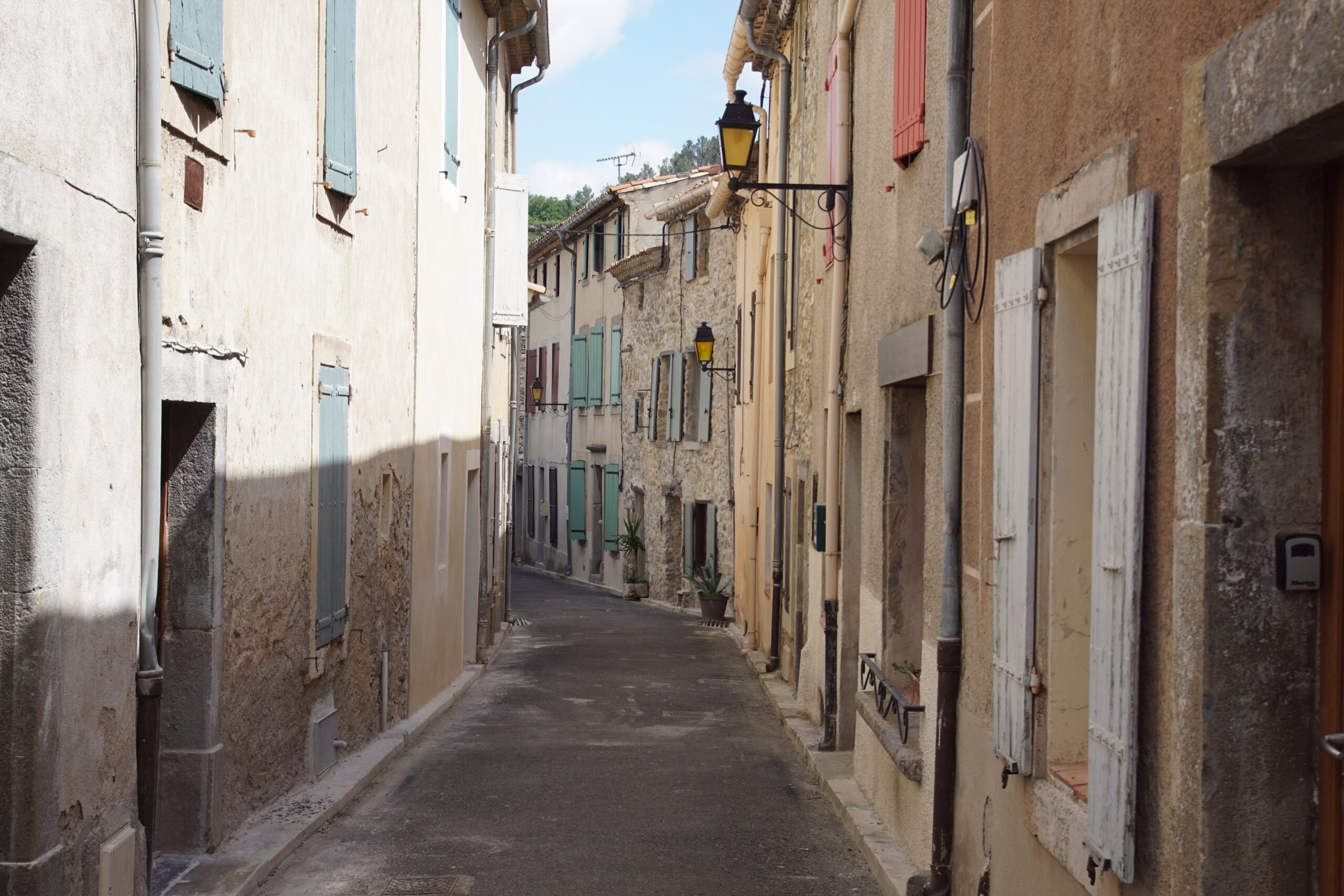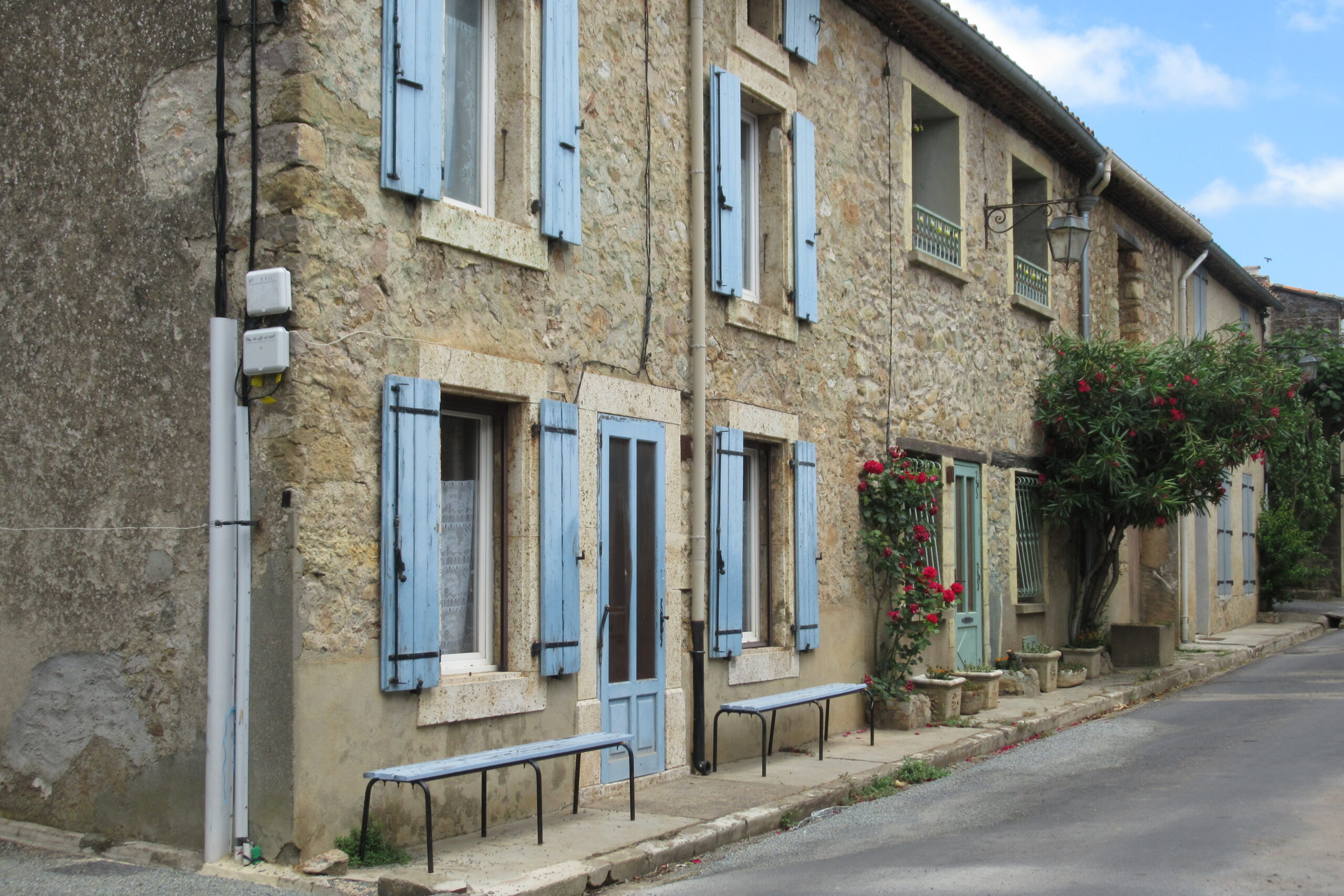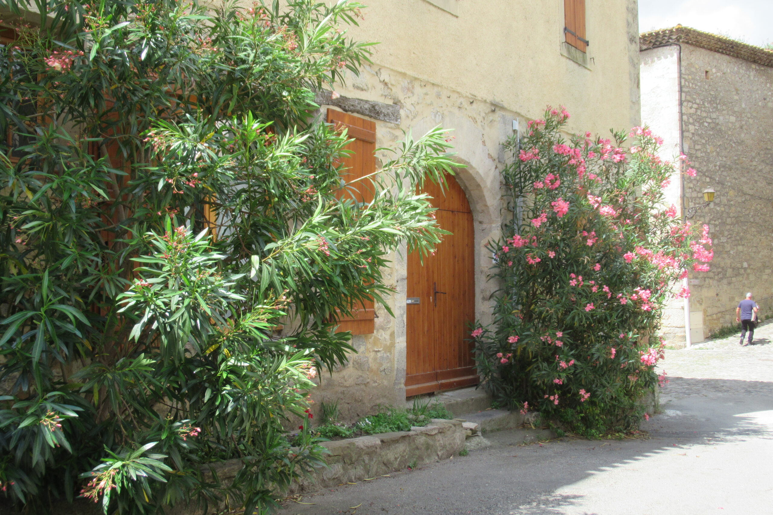 • Mais il y a là comme un défaut (et pourtant j’ai bien scruté Google Street View…). Il faut se garer au village, puis route interdite et fort étroite sur 400m, puis chemin empierré 450m à 10% puis visite, et retour idem ! c’est trop pour nous, on le verra de loin. Et l’on suit ensuite la D212 belle et tortueuse sur 21km/30mn qui nous emmène près de Lagrasse*** (village classé), nous inversons donc les visites prévues. C’est très joli, médiéval et festif après une cérémonie du dimanche (sortie de messe à l’Abbaye Ste Marie d’Orbieu), mais le village est calme, peu de touristes.