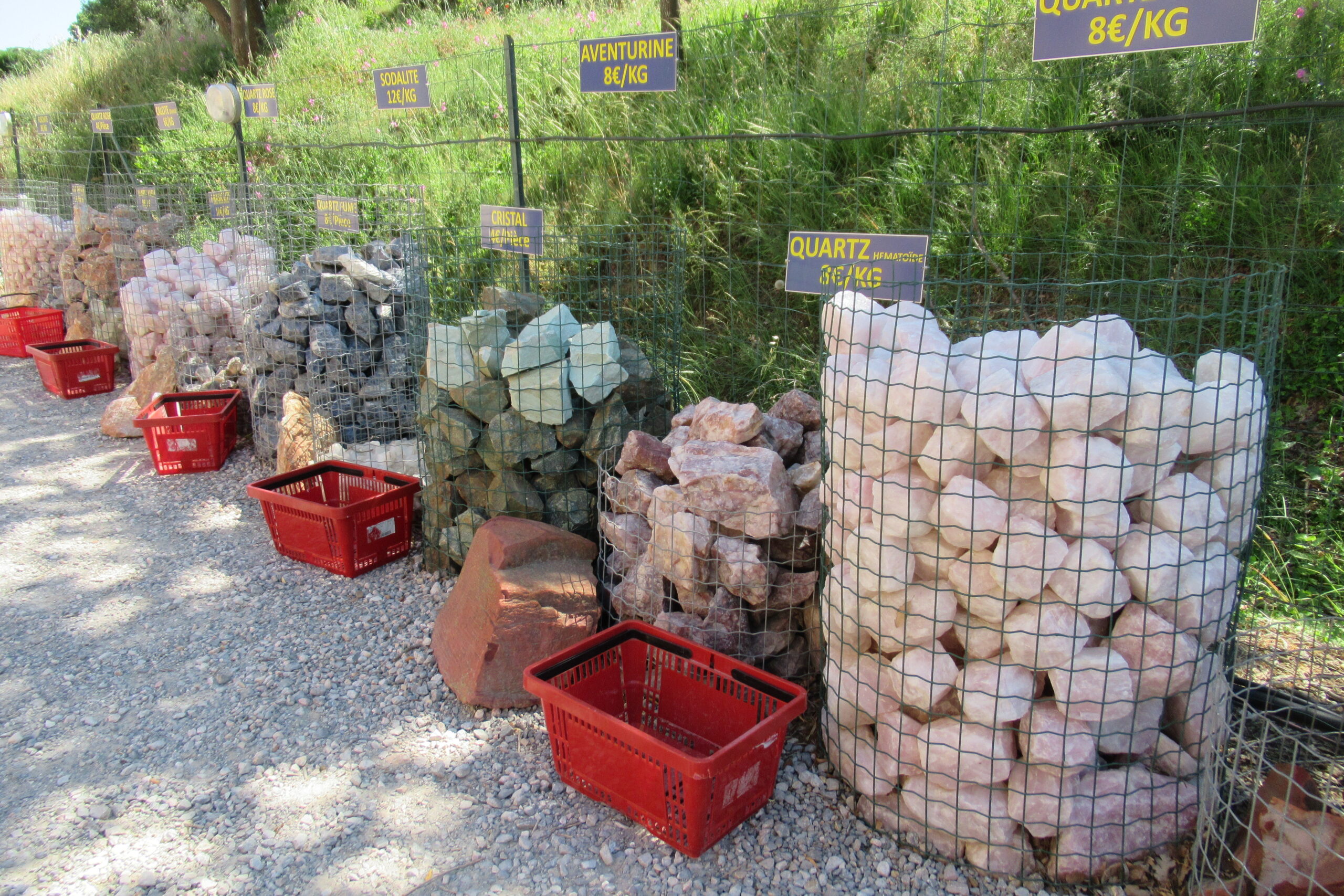 • De là, suivre la D613 (vers Narbonne…) nous atteignons le Domaine de la Source* (juste après le château privé de St Martin de Toques, photo !) après 30km/40mn. C’est un jardin et un magasin de minéraux de grande variété et tailles, certains vendus au kg…