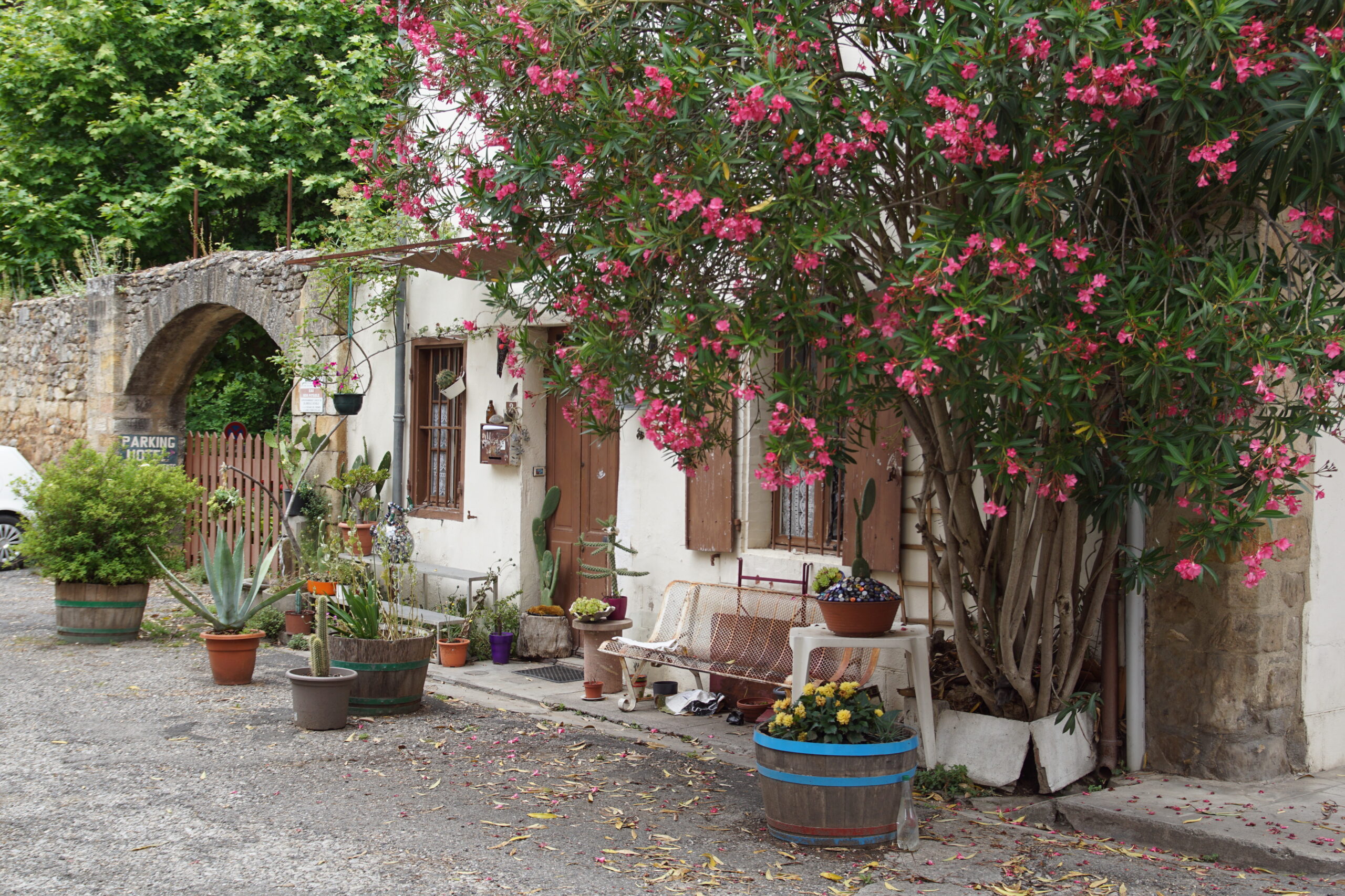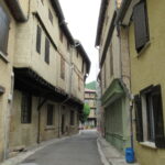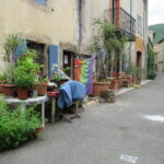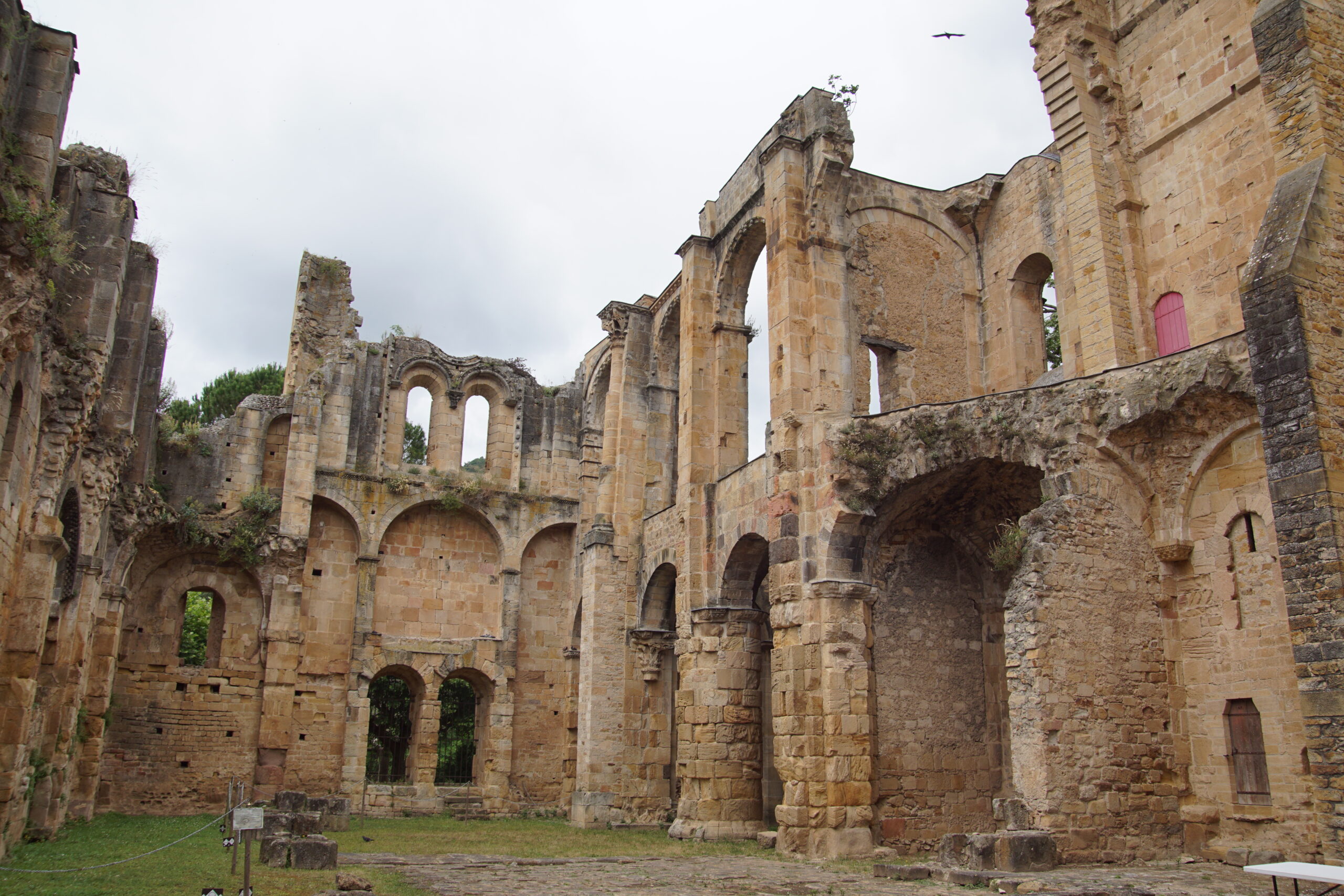 - Continuons 11km/15mn pour Alet les bains**, joli village médiéval qui comporte une très belle abbaye** (ce ne sont pas des ruines… mais des vestiges). Il est 11h30 et nous avons 30mn pour en faire le tour (4€/pers en CB, accueil sympa, dépliant bien détaillé). Après un pique-nique à côté nous entamons un tour de ville avec de typiques maisons photogéniques.