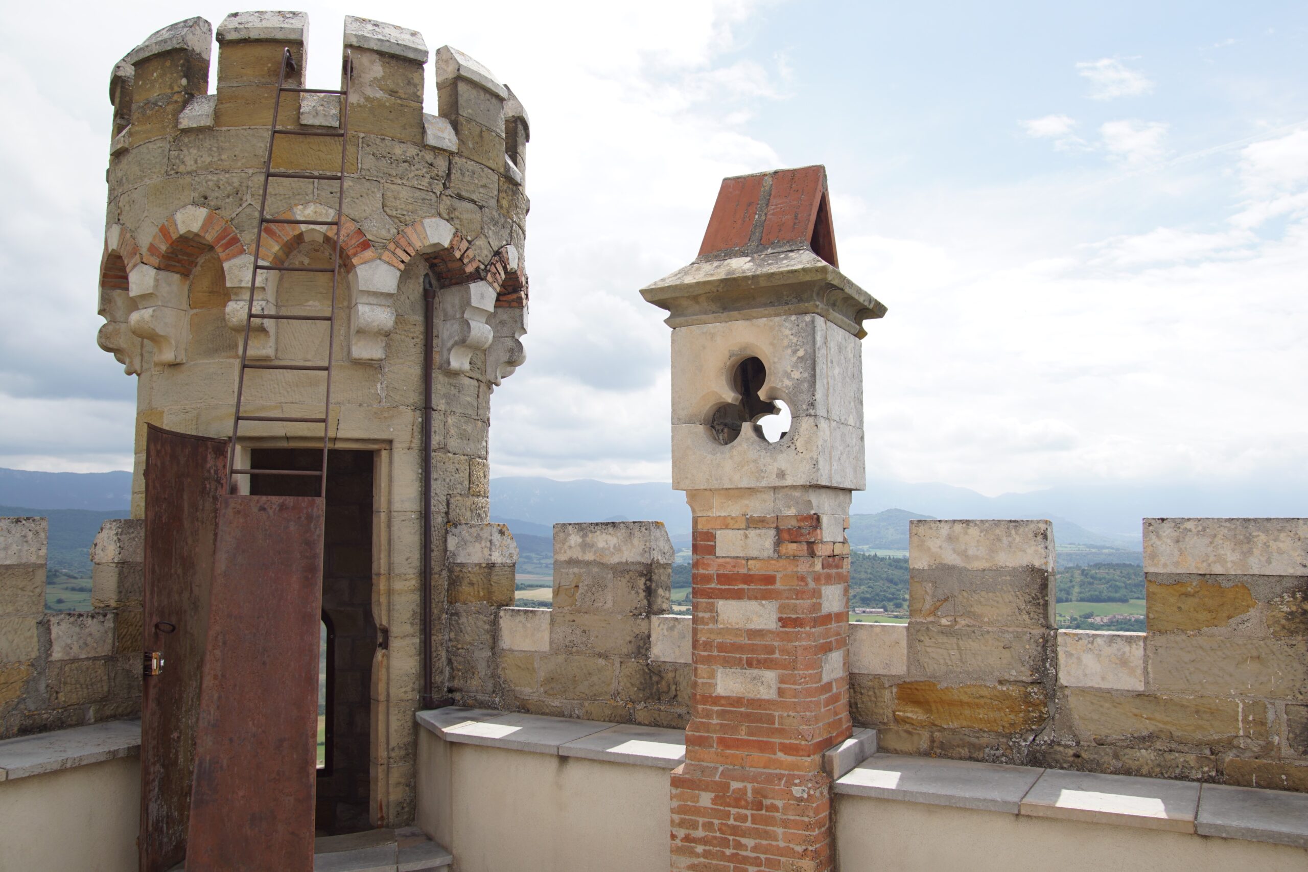 - 18km/20mn vers le Sud/Est pour le château d’Arques* (photo ci-dessus) dont le grand parking est situé en bord de route, puis chemin plat de 100m à peine. Il comporte un gros donjon carré à 3 étages et une tour-logis, un peu vides mais refuges de chauve-souris (6€/pers en CB) intéressant …