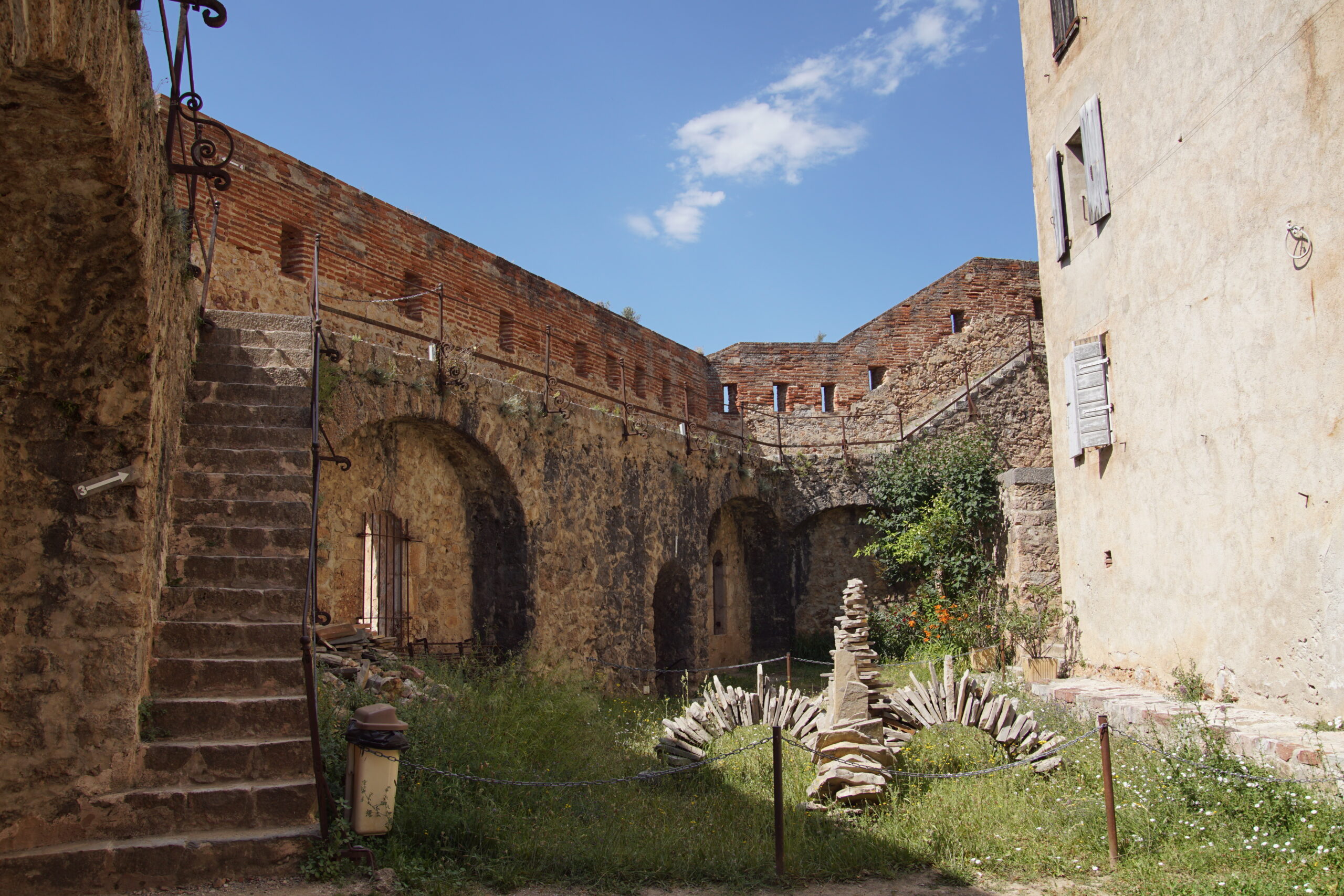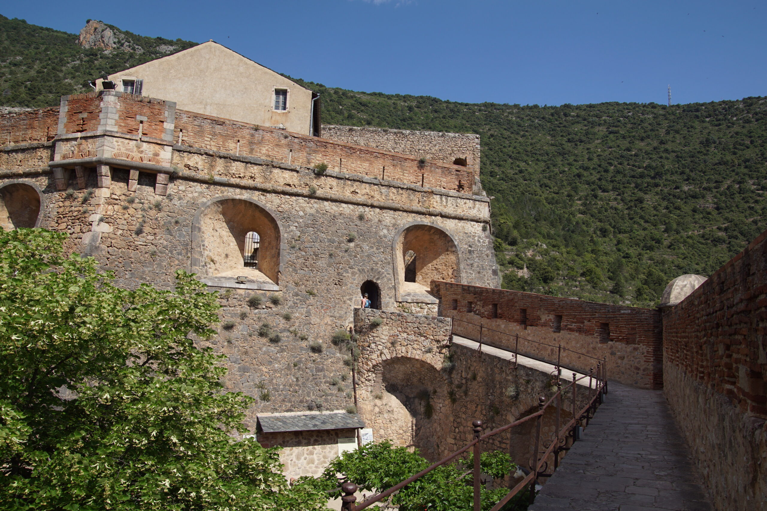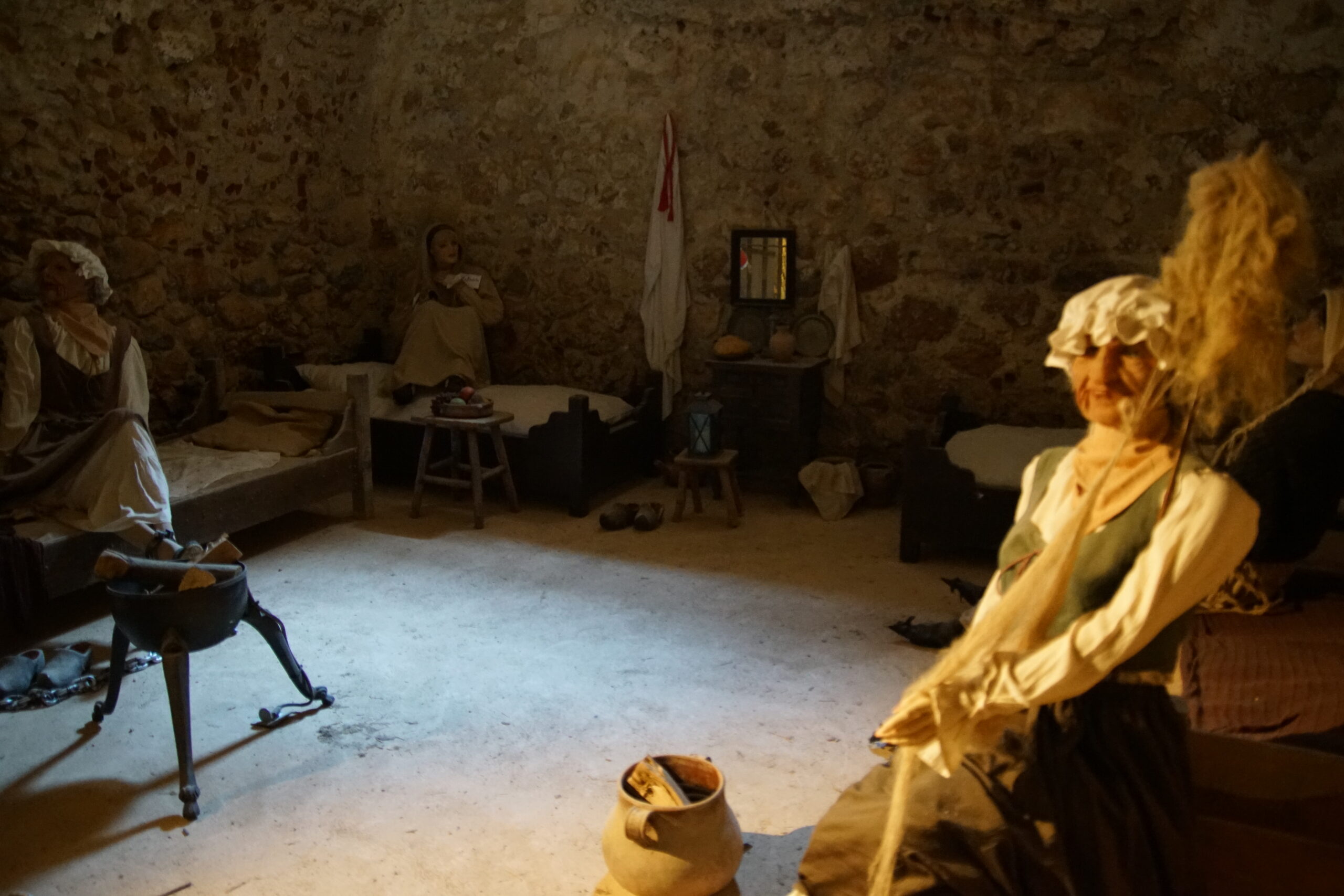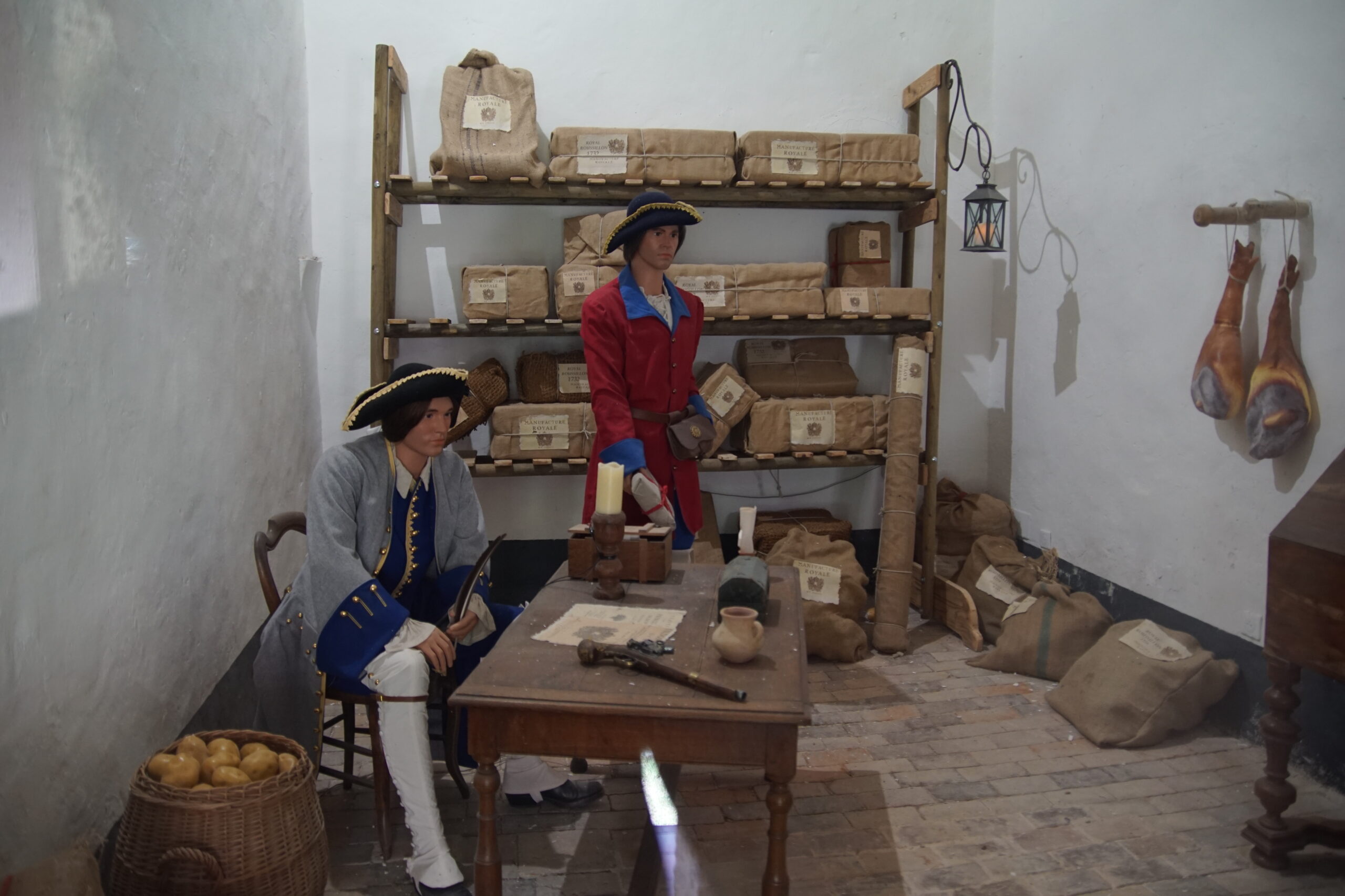 - Donc nous nous rabattons sur le chemin raide qui y monte (longueur 2,5km, dénivelé +165m) et sous le soleil qui tape déjà, c’est un bon échauffement. L’accueil y est sympa (7€/pers en CB) et le dépliant permet de le visiter tranquillement. En ce dimanche matin c’est assez calme. Vauban y est passé par là et on y retrouve ses classiques. Reconstitutions de scènes d’époque bien faites. Visite agréable avec un super point de vue.
