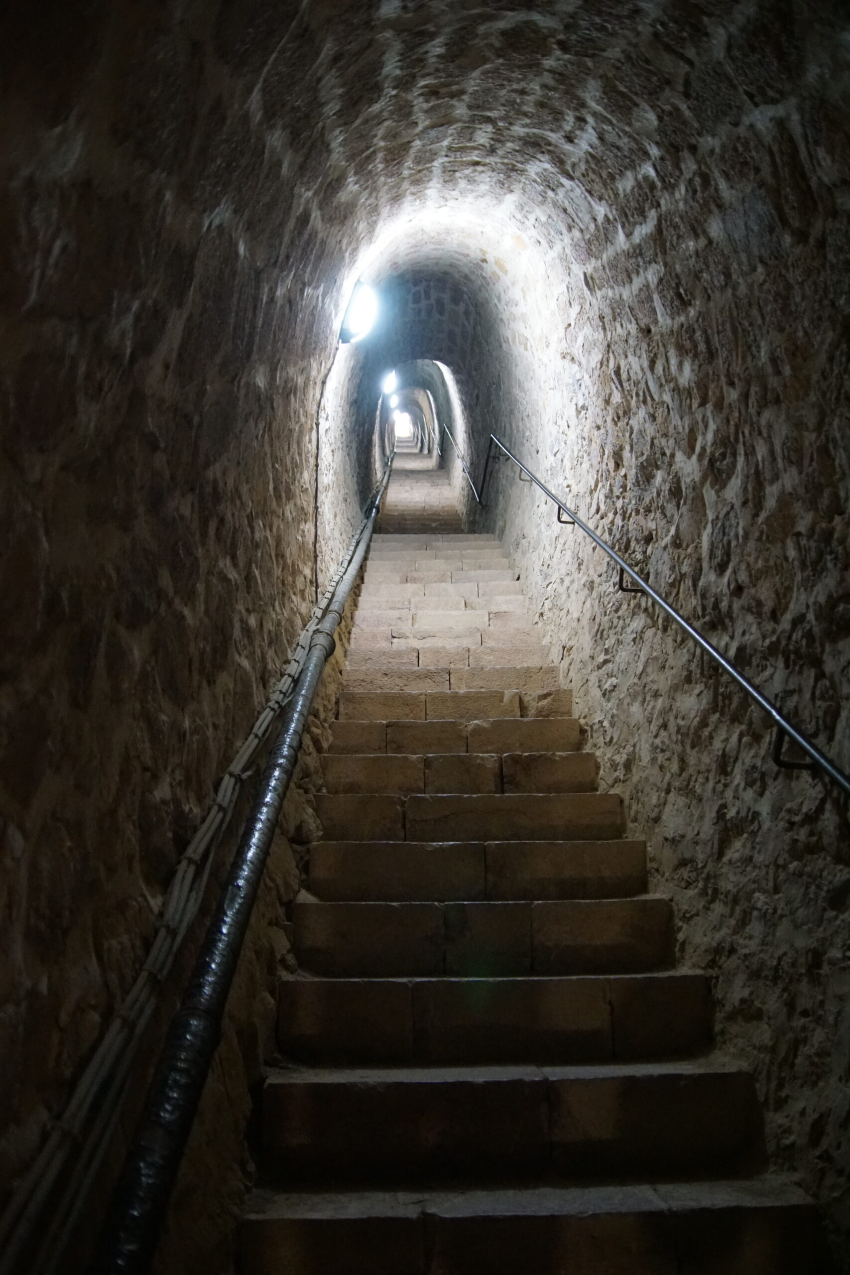 - Pour descendre vers la très belle ville fortifiée de Villefranche de Conflent, il « suffit » d’emprunter le souterrain*** le plus long du monde (!) et ses 735 marches. C’est original et assez facile.