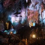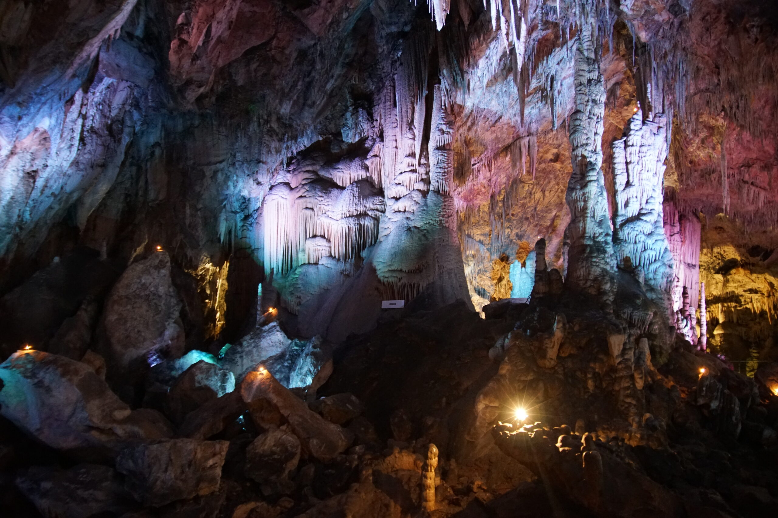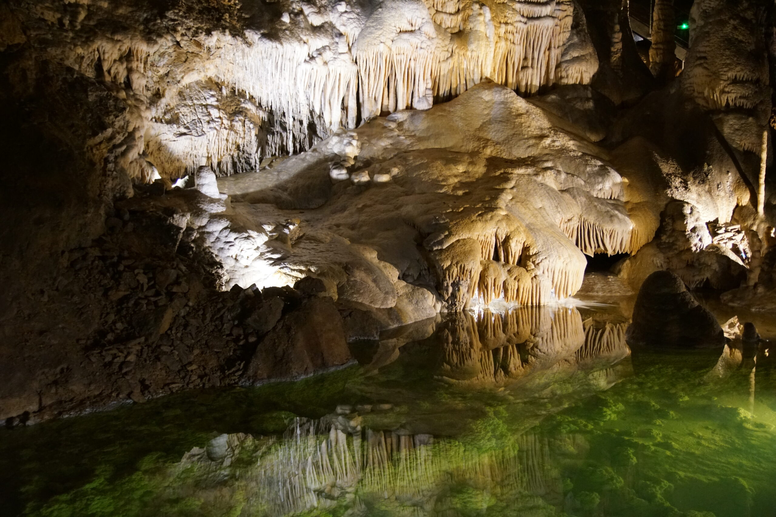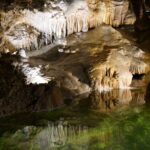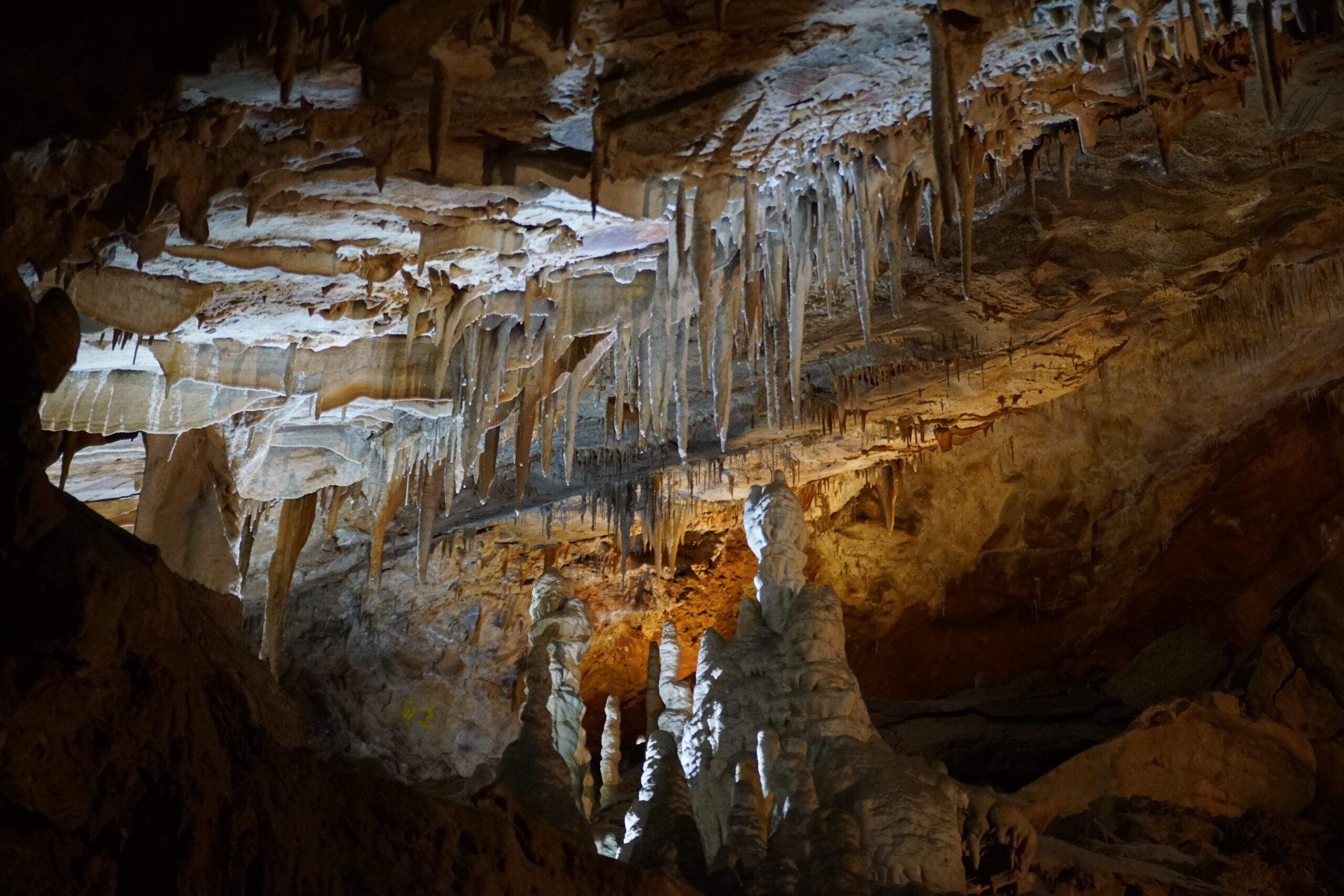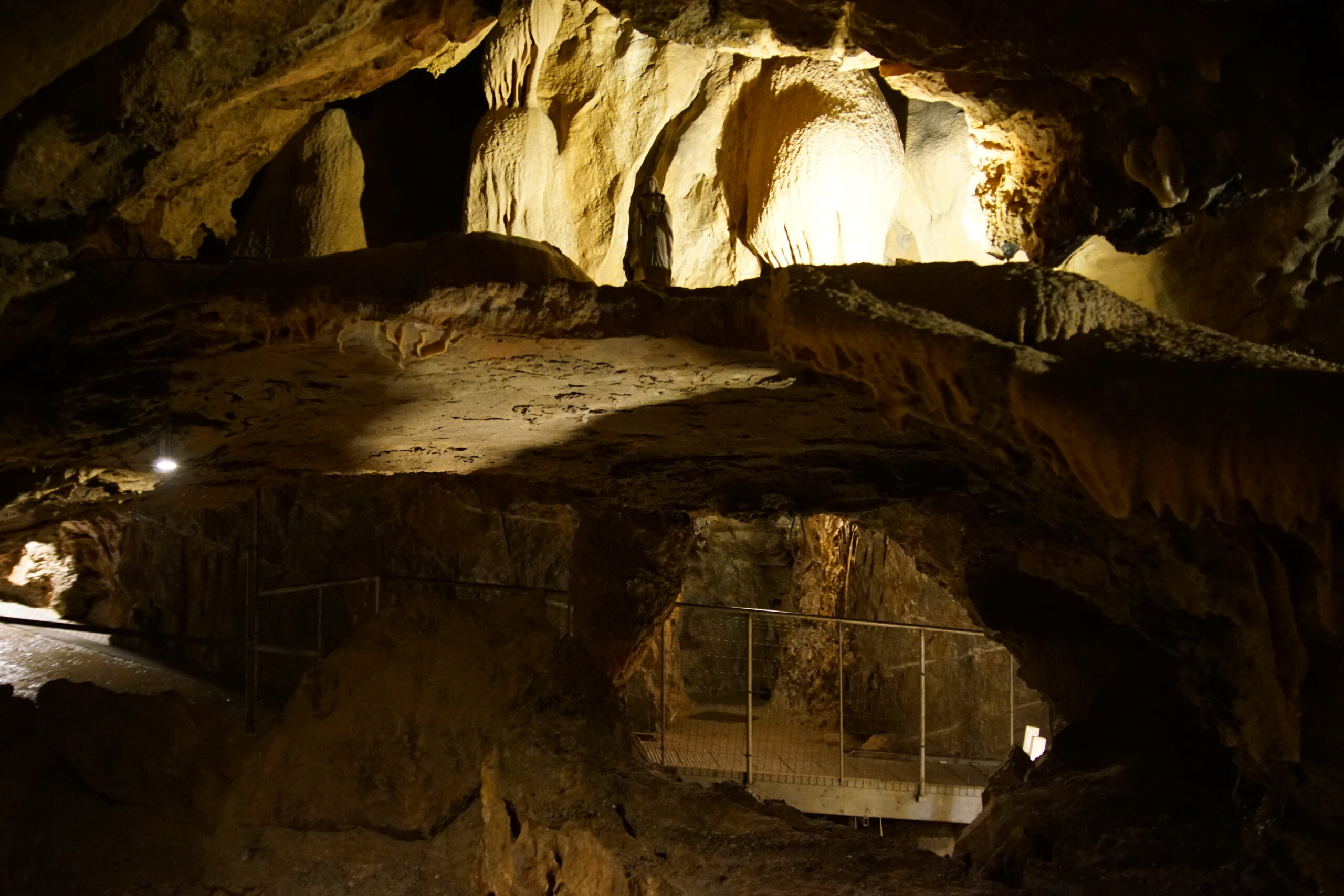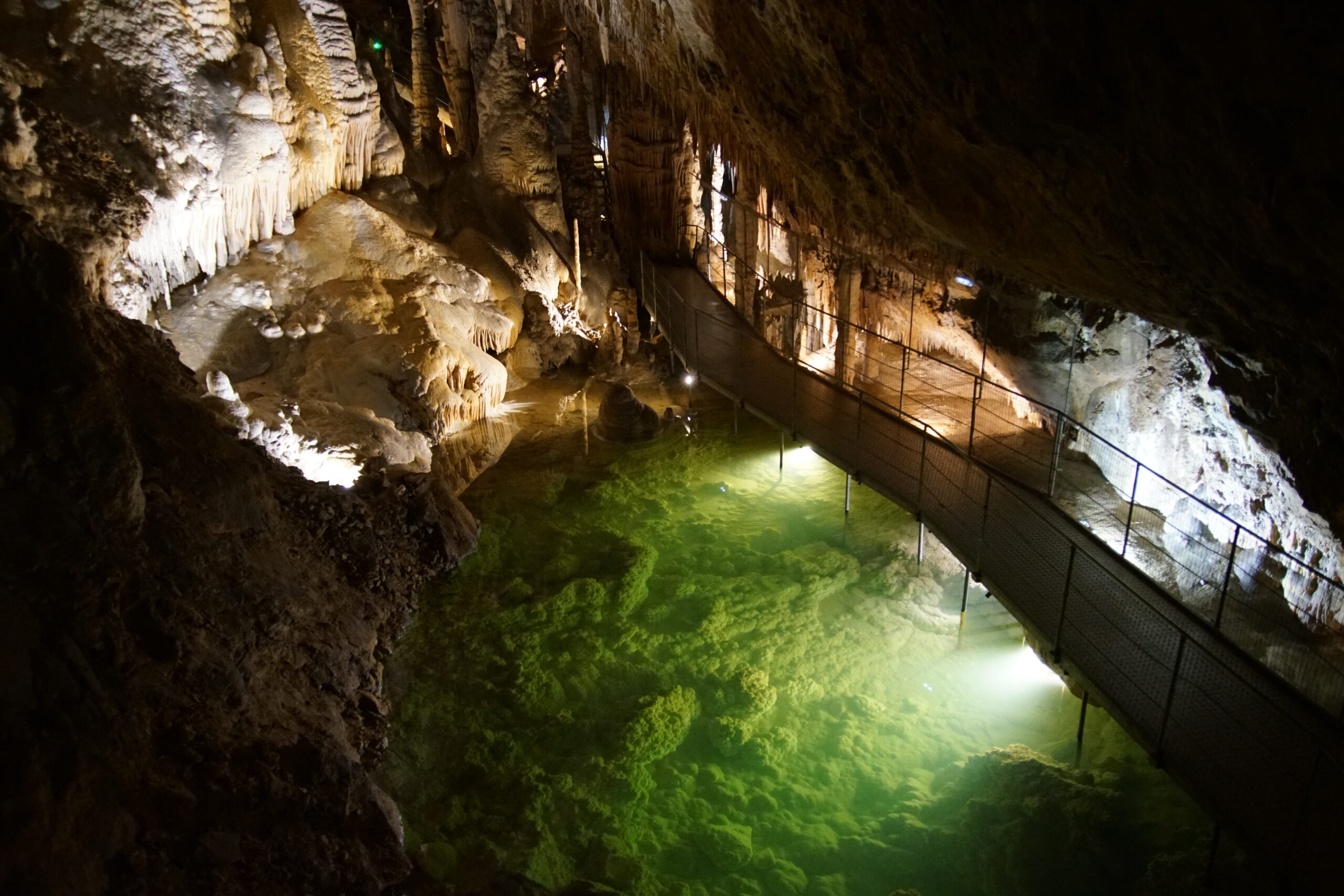- L’après-midi il fait très chaud et un orage semble possible, nous prenons la voiture pour… 1,5km (!) et le parking de la grotte des Grandes Canalettes*** (direction Vernet les Bains). Très peu de monde et il fait 14° là en bas (11€/pers. en CB). Circuit très bien balisé et escaliers faciles, petit son/lumières tout au bout. Chouette activité conseillée aux familles et aux autres, compter 1h00 AR, et il y a une petite boutique expo avant la sortie.