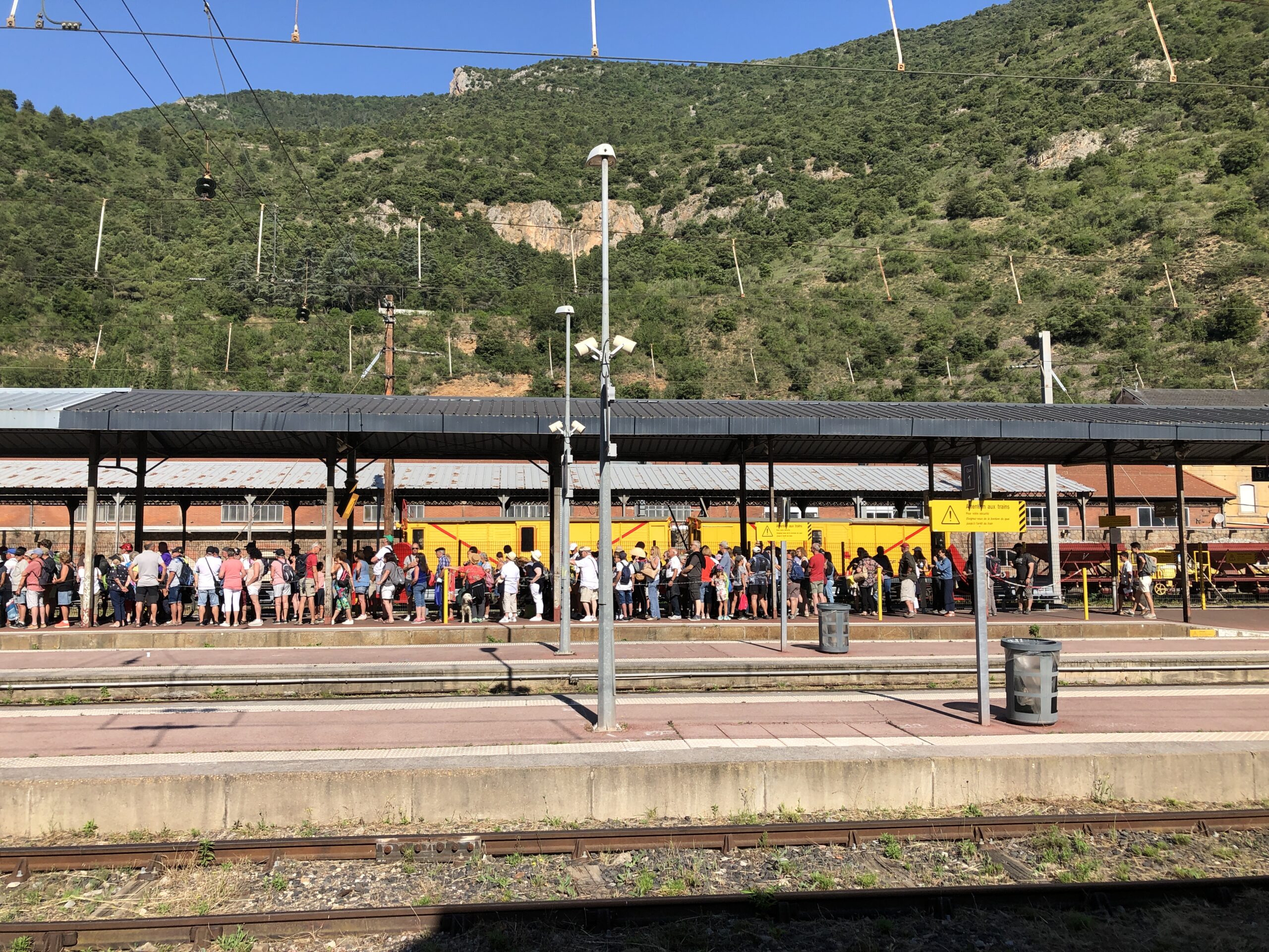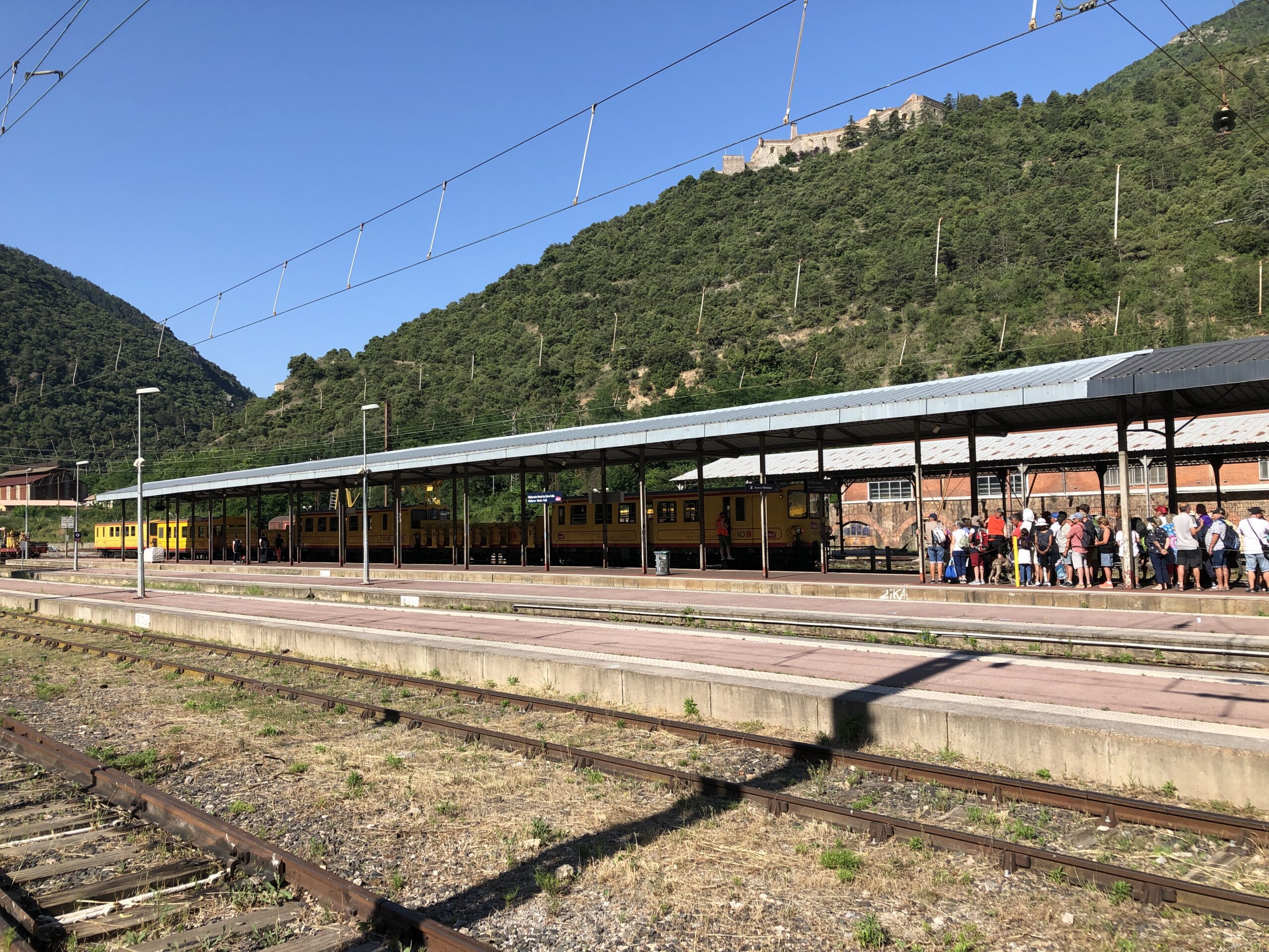 J09 journée à Villefranche de Conflent : dimanche 12 Juin 2022, Madame reste à profiter du gîte et « les hommes » ont pour objectif de monter au Fort Libéria*** (photo ci-dessus) qui domine la vallée. La gare du « train jaune » n’est qu’à 200m et, normalement…. une navette 4×4 pour le fort y démarre à 10h00, mais rien vu de tout ça !