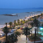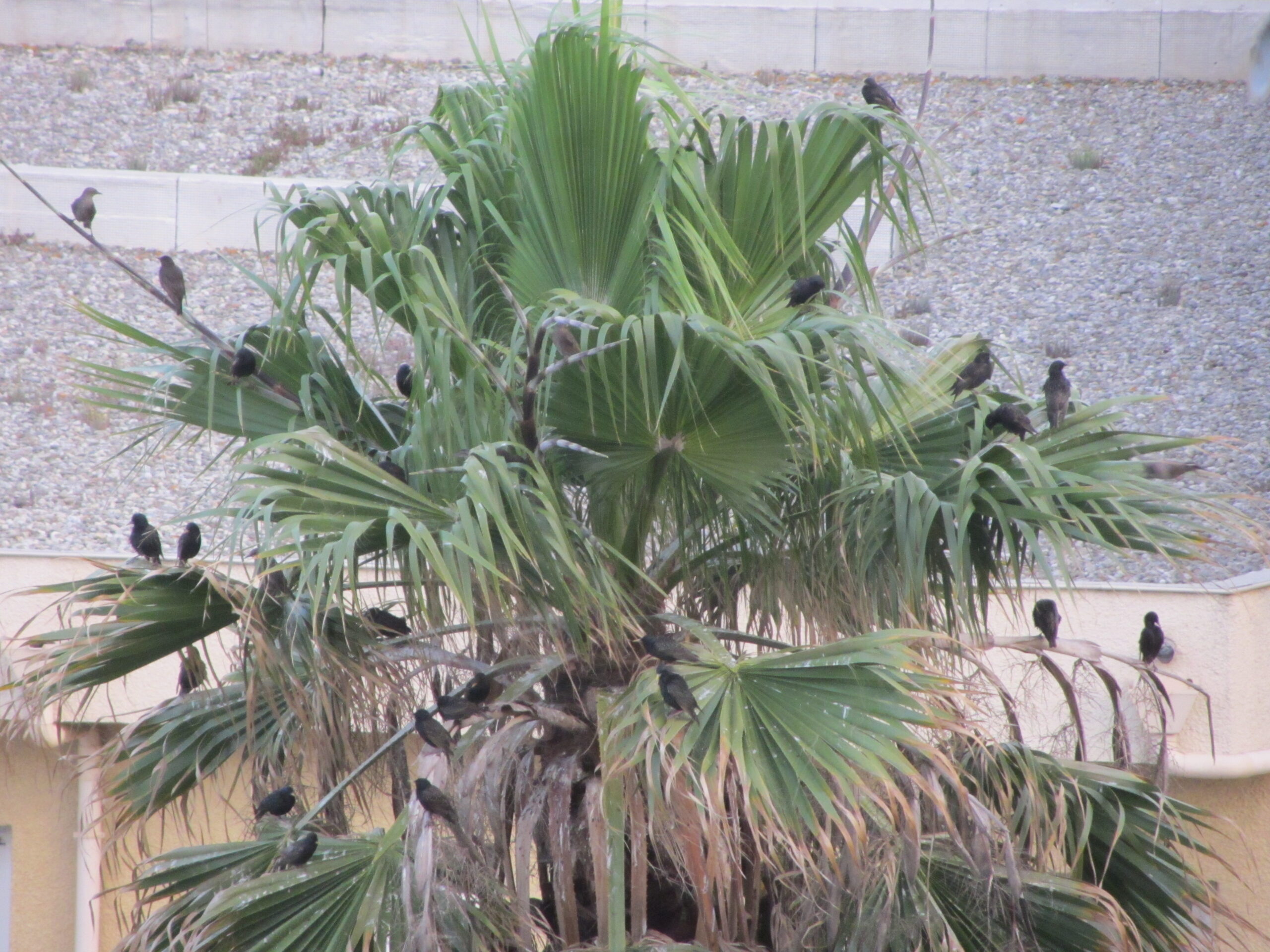 • La tombée du jour voit réapparaître les goélands bruyants, et les nuées de piafs noirs qui s’installent pour la nuit sur les palmiers de la promenade.