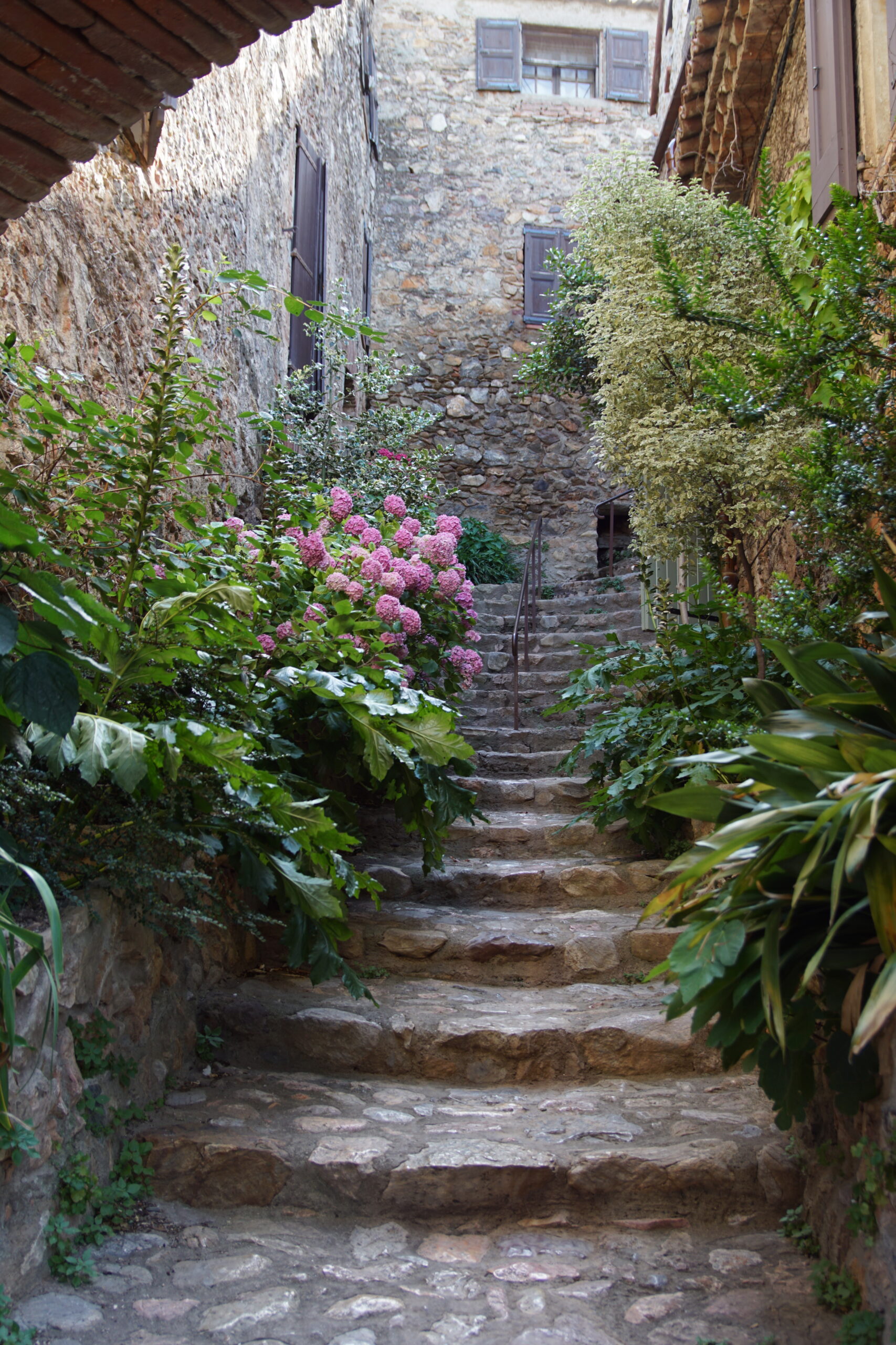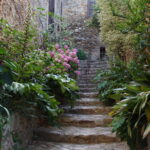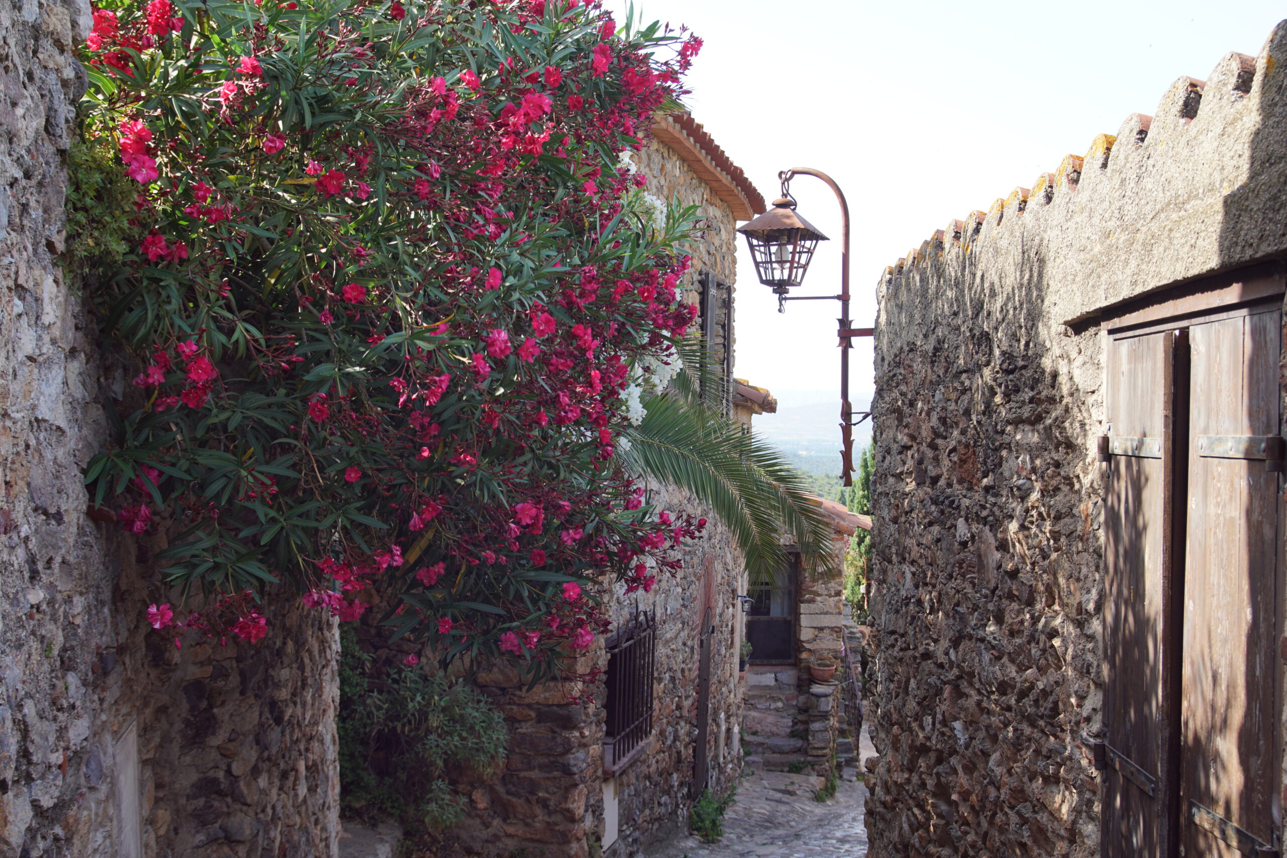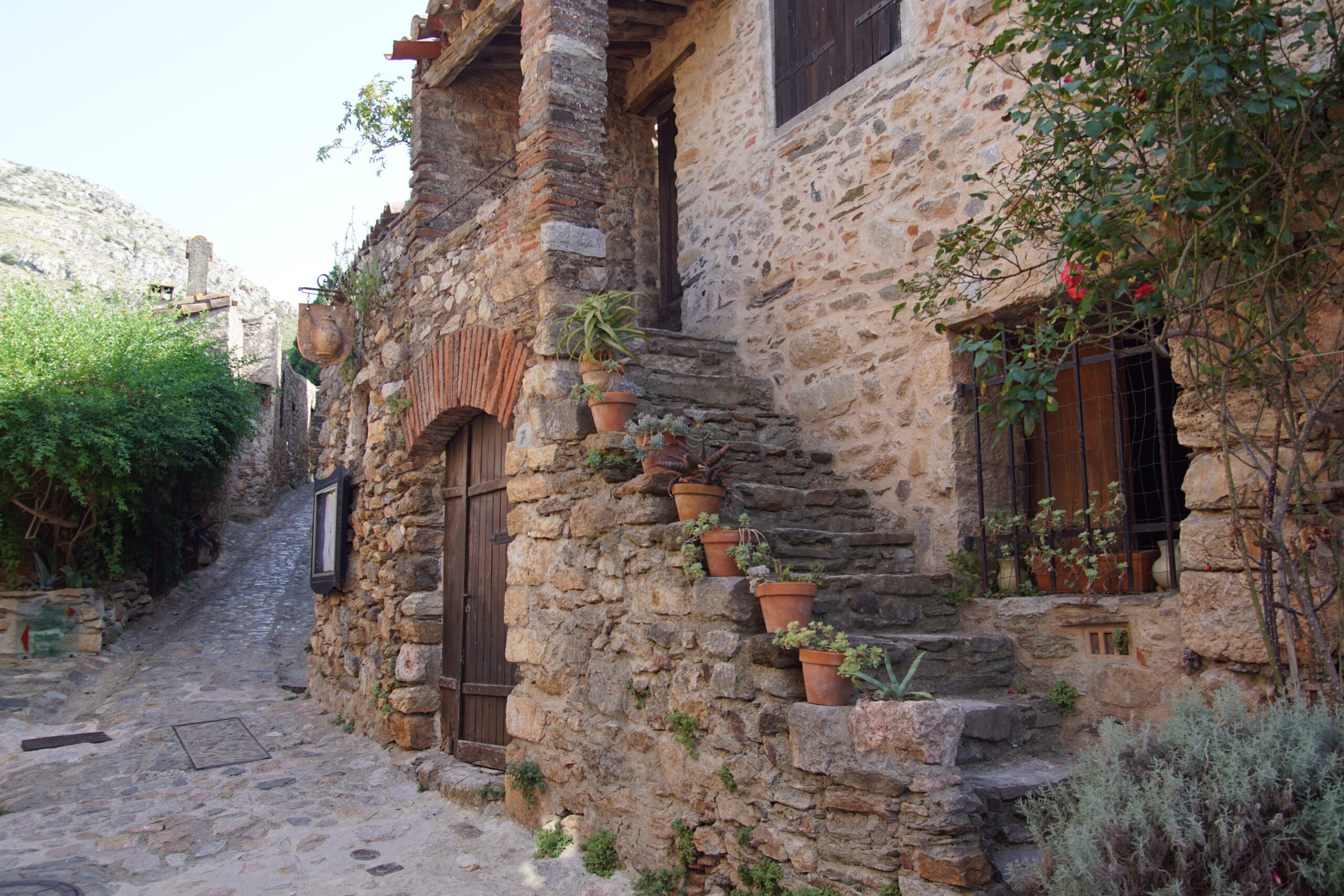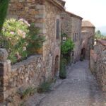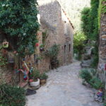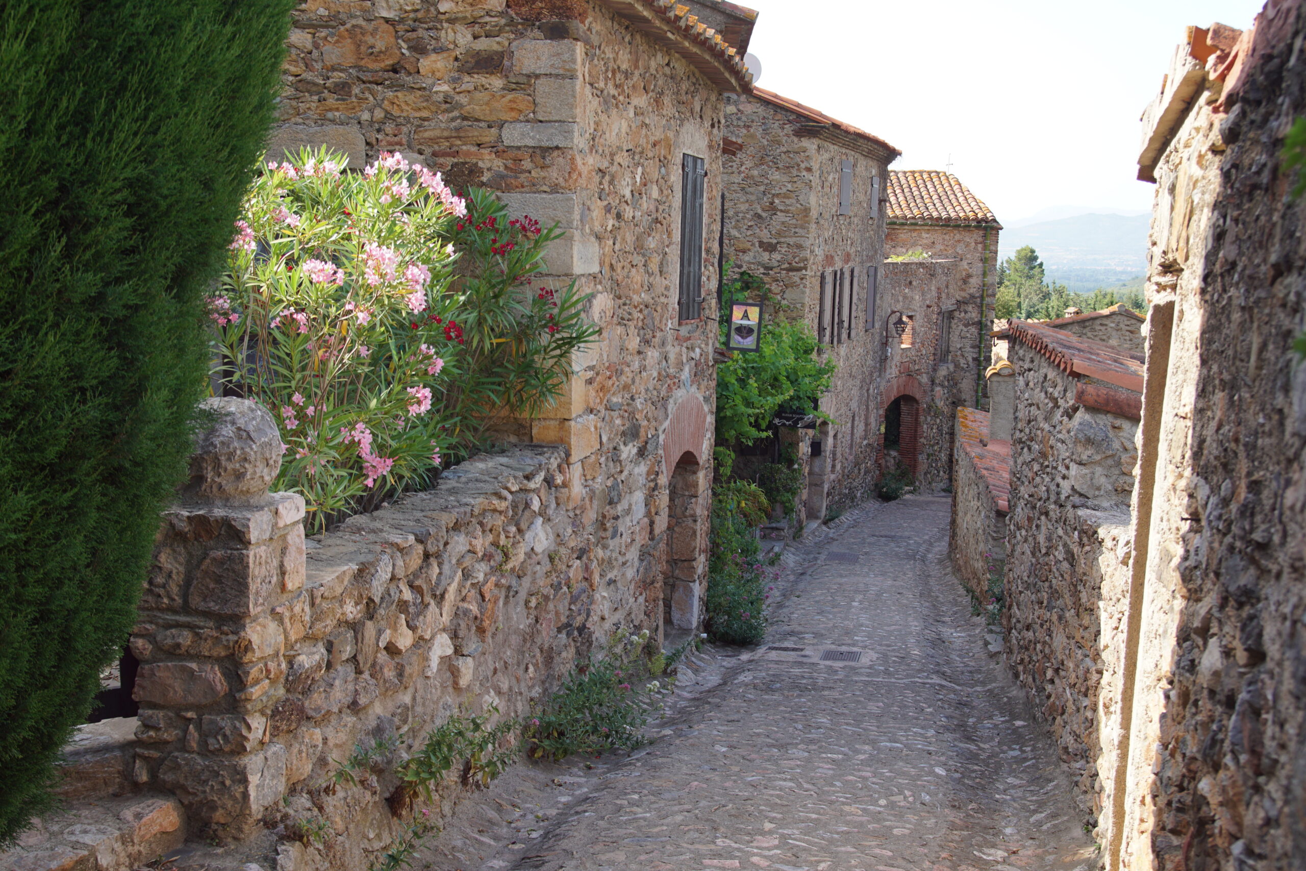 • L’autre but du jour est à 15km/20mn : le village perché de Castelnou*** (parking à l’entrée). Bonnes chaussures pour arpenter les ruelles pentues. Nombreux artisans et expos malgré l’heure tardive. Papotages avec une des 8 habitants permanents (!). Village authentique méritant d’y passer un peu de bon temps.