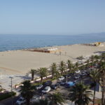 • Il fait encore très beau, et vers 10h30 nous arpentons la « promenade » vers le port. C’est calme et sympa côté mer avec les palmiers, le mini golf, le manège. Côté architecture des immeubles de diverses époques depuis 1970 c’est « bof » voire laid avec quelques maisons d’irréductibles entre deux… Ah voilà le port « de plaisance » car il ne reste que quelques rares barques de pêcheurs pour la carte postale. Déjà 2,5km de fait et je suggère de pousser jusqu’au magasin d’optique pour réparer mes lunettes de soleil ! sur Google ce n’est pas loin (+1km et le soleil tape déjà). Et il faut en revenir maintenant… Total 6km/10.000 pas et 2h plus tard nous sommes enfin à l’appart. Repas.
