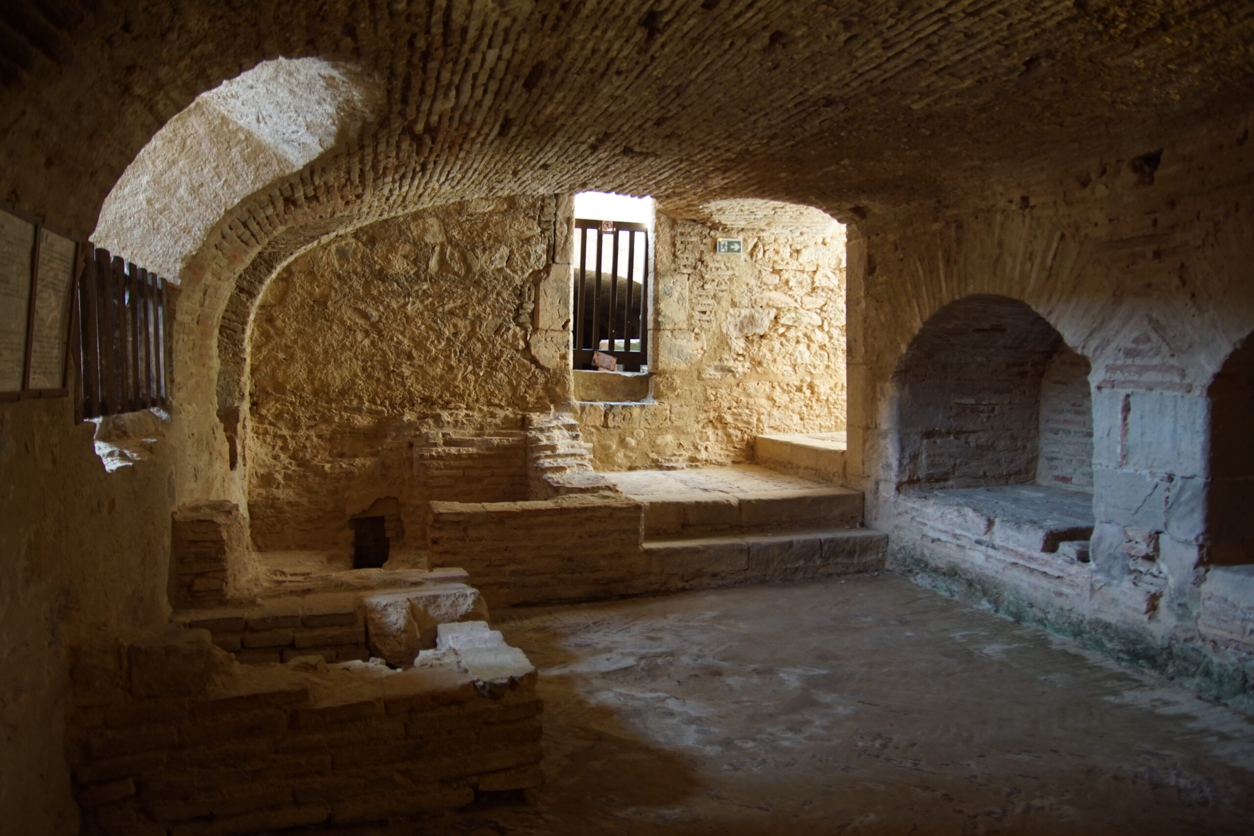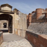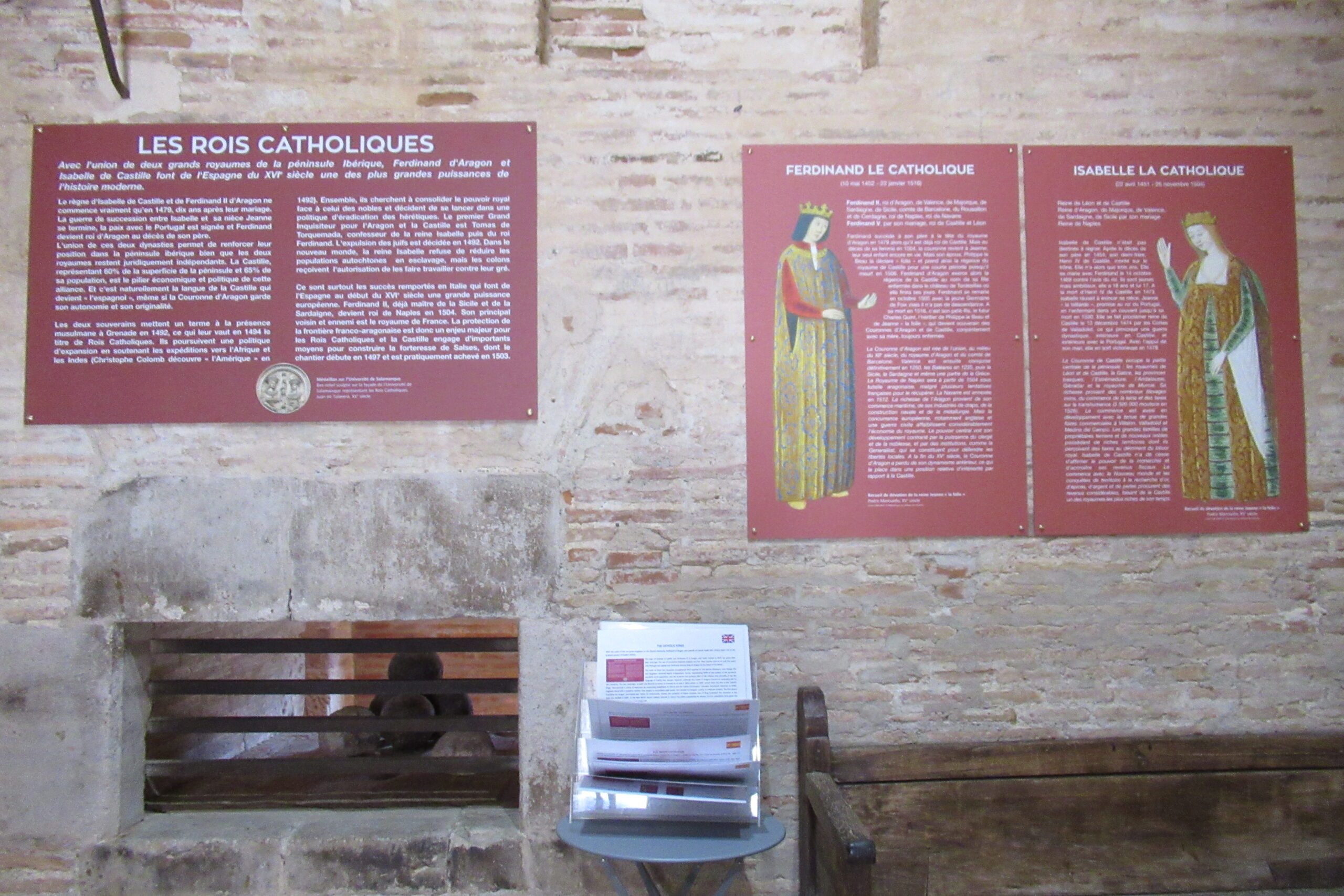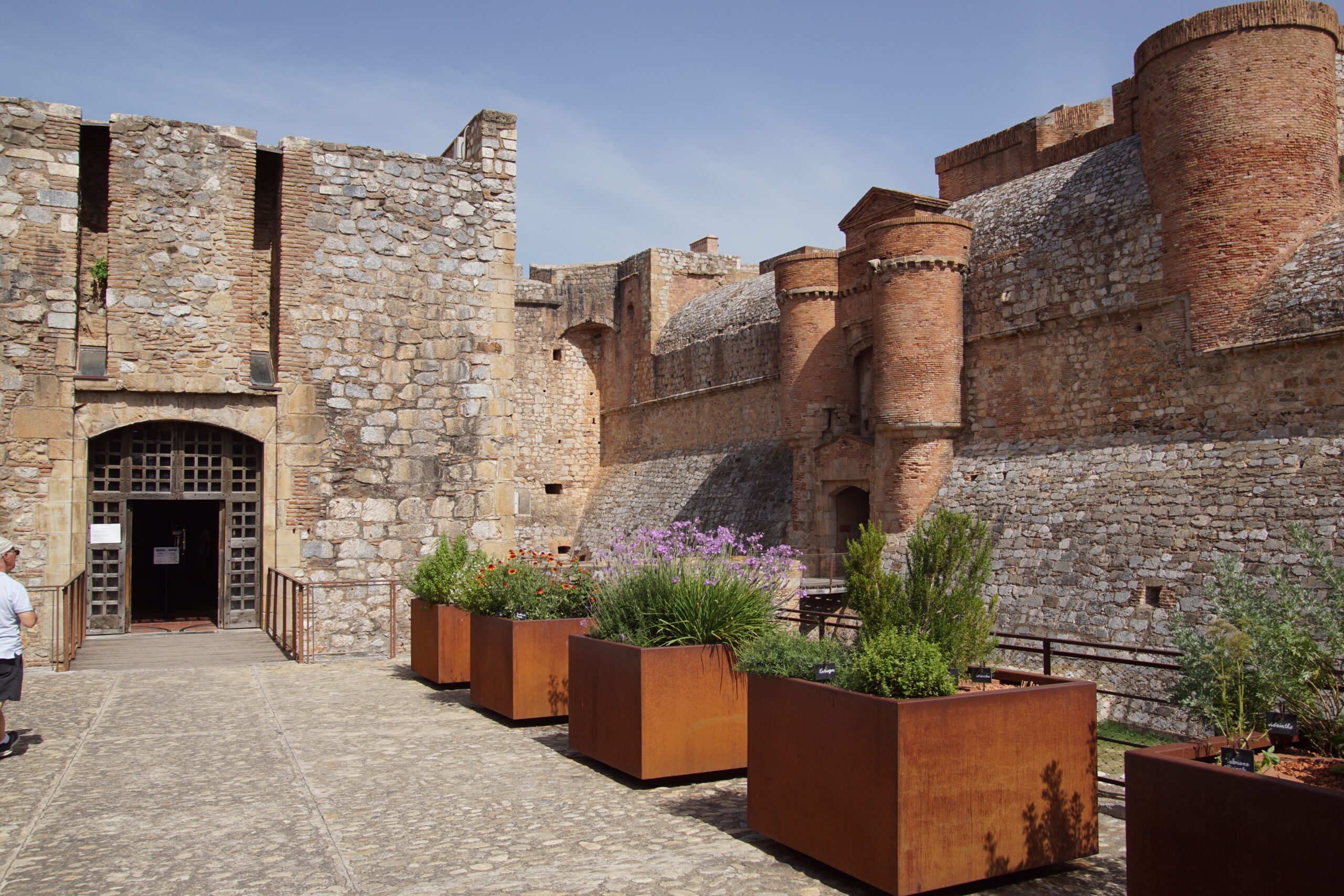 • Quelques photos depuis l’extérieur de cet imposant ensemble semi-enterré (photo ci-dessus). Ce « château des Rois catholiques Espagnols » a été construit vers l’an 1500. L’architecte Ramiro Lopez en fut l’artisan (après avoir rénové l’Alhambra de Grenade…), mandaté par le roi Ferdinand. Il est à ce jour, dans un état remarquable. Notre Vauban s’en est largement inspiré… Nous y entrons pour 8€ en CB/pers. et l’on nous propose de suite de suivre la visite guidée (sans supplément) à 11h00.