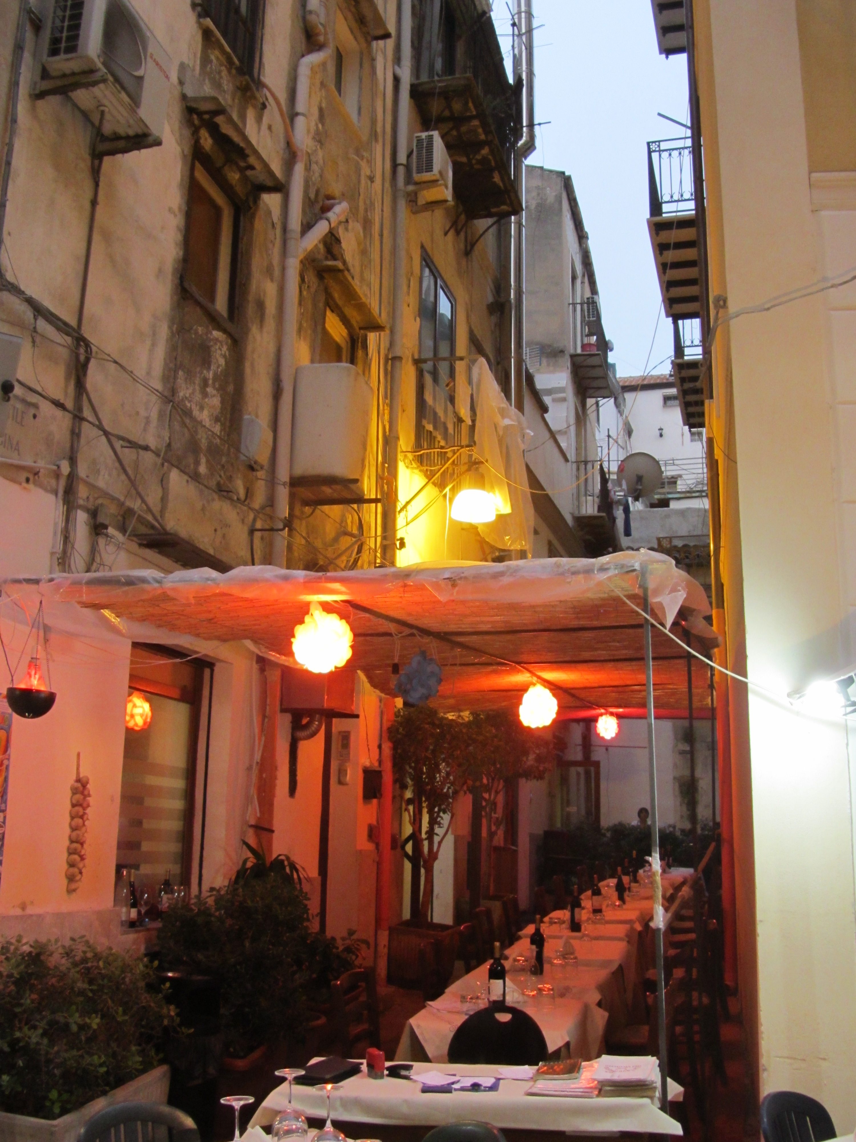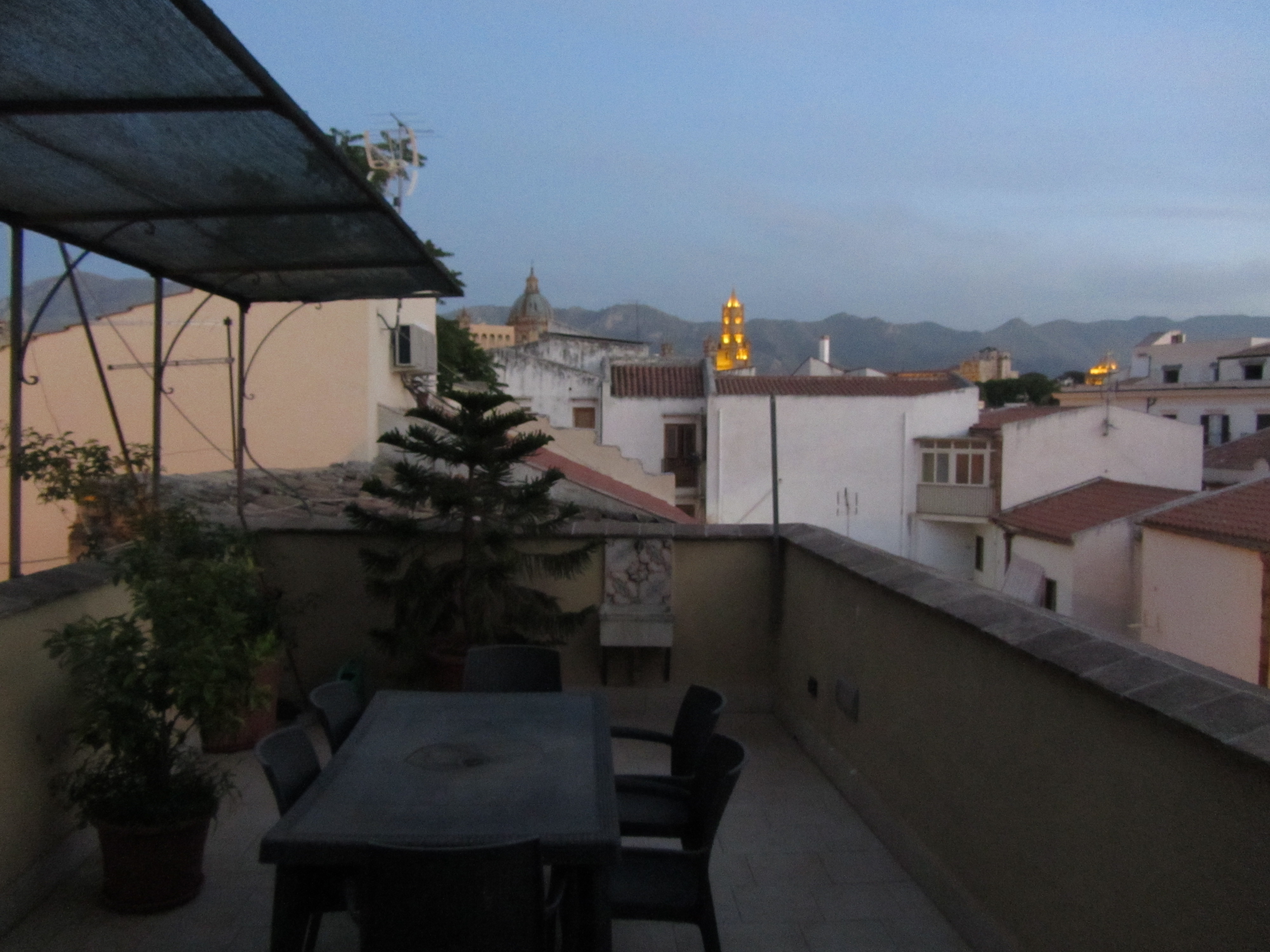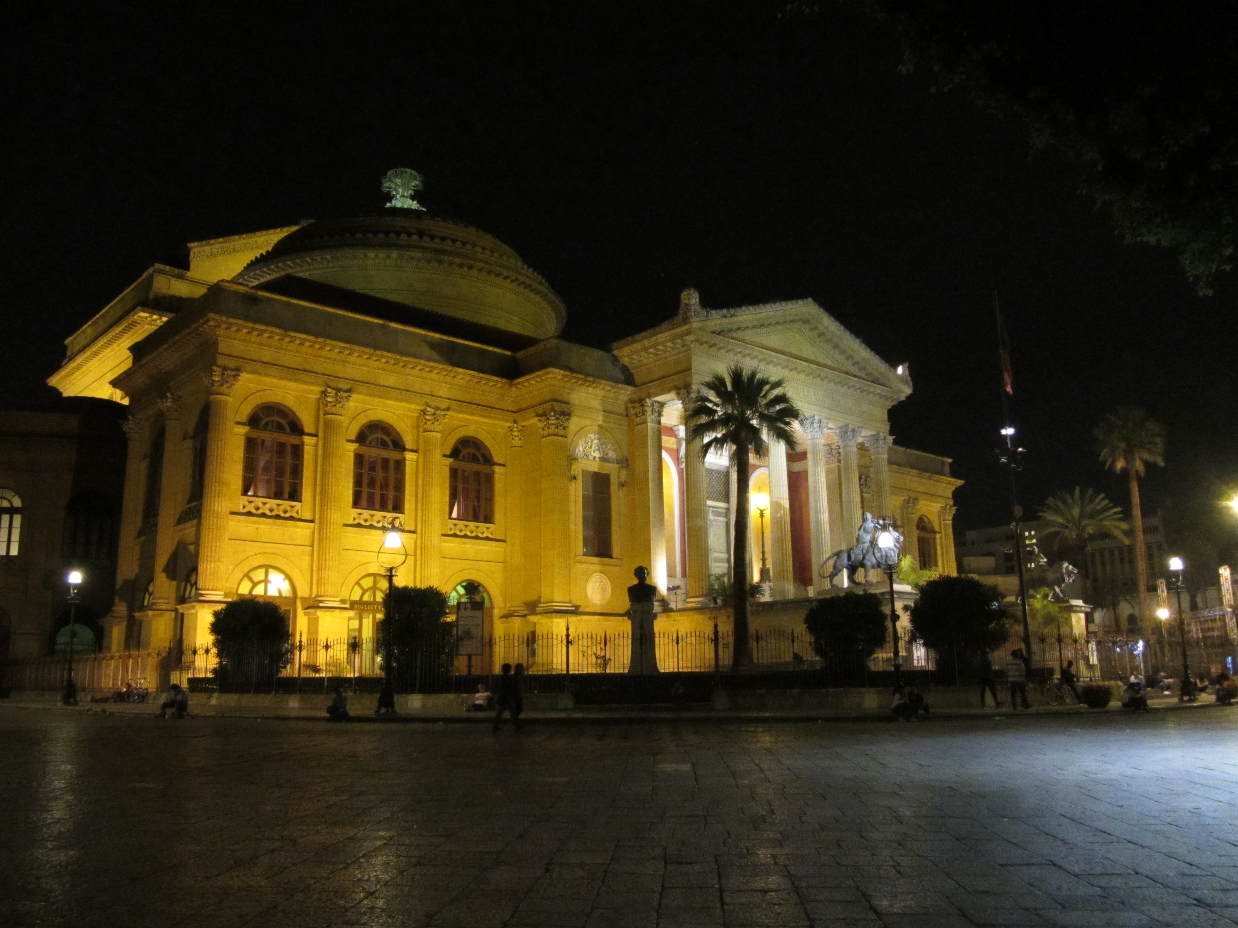 - Puis taxi vers la Piazza Verdi/Teatro Massimo (ci-dessus), et encore 300m à pieds pour l’appartement Sant’Agostino, dans la rue du marché du Capo. Situé dans un ancien palais complètement rénové, l’accueil de Gigliola est très sympa, et l’appartement de 87m2 superbe. Découverte du quartier avec ses contrastes et repas à la Pizzeria Italia via Orologio (piétonne) près du Teatro Massimo.