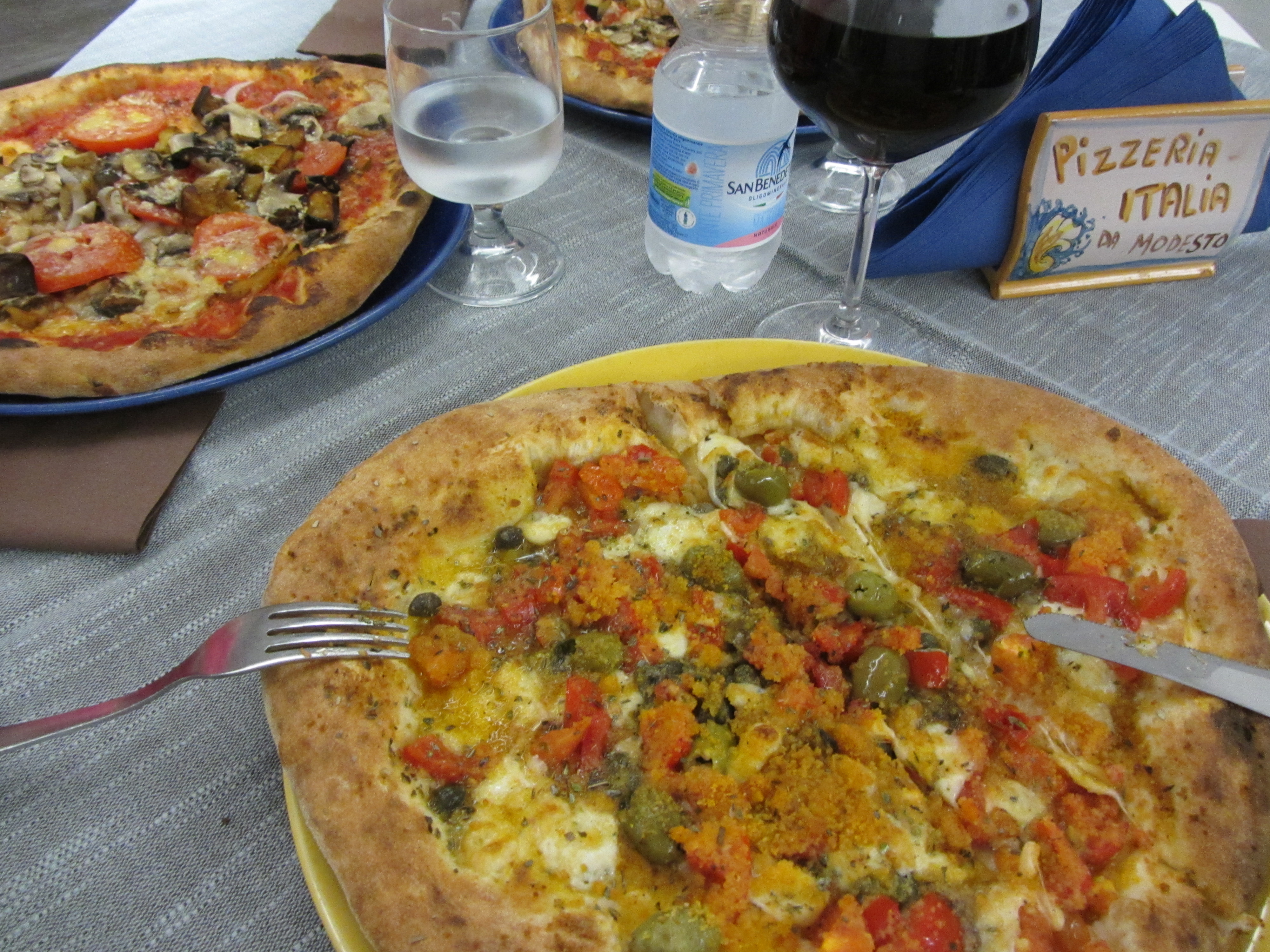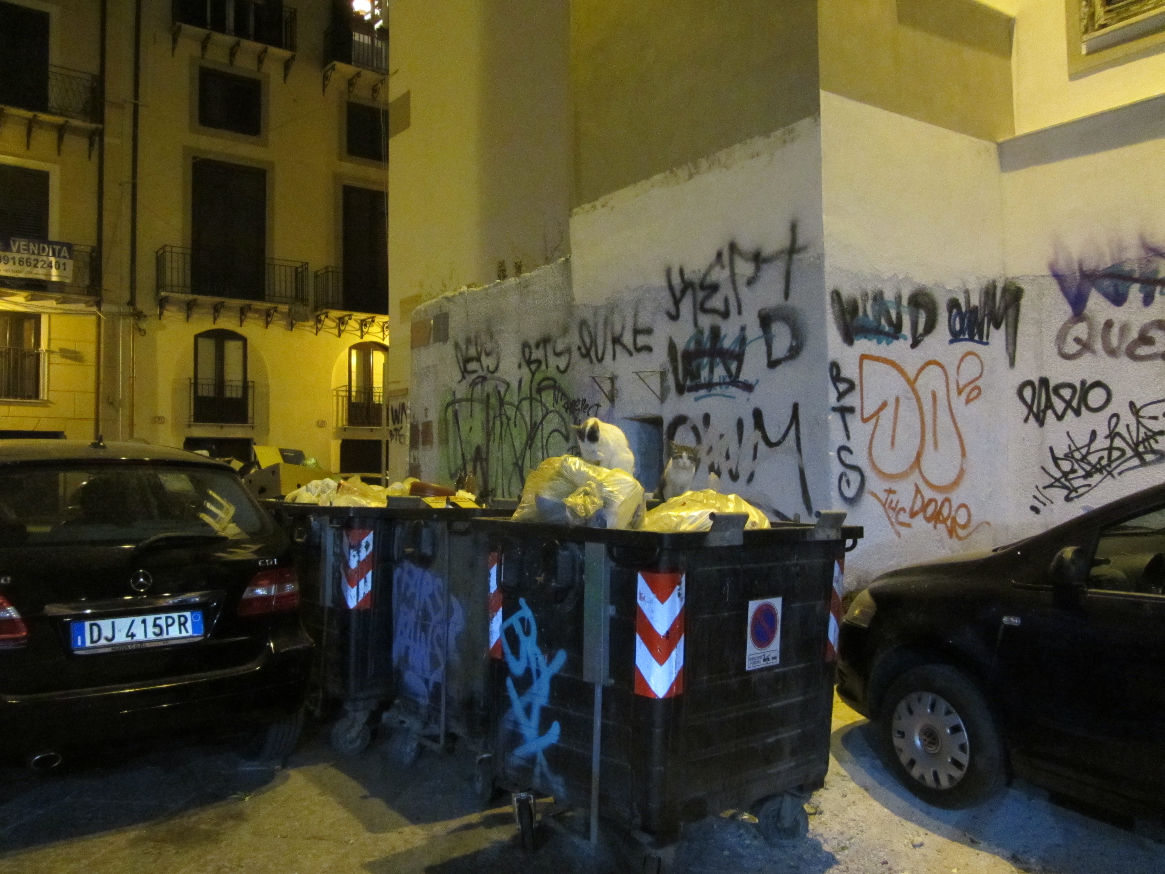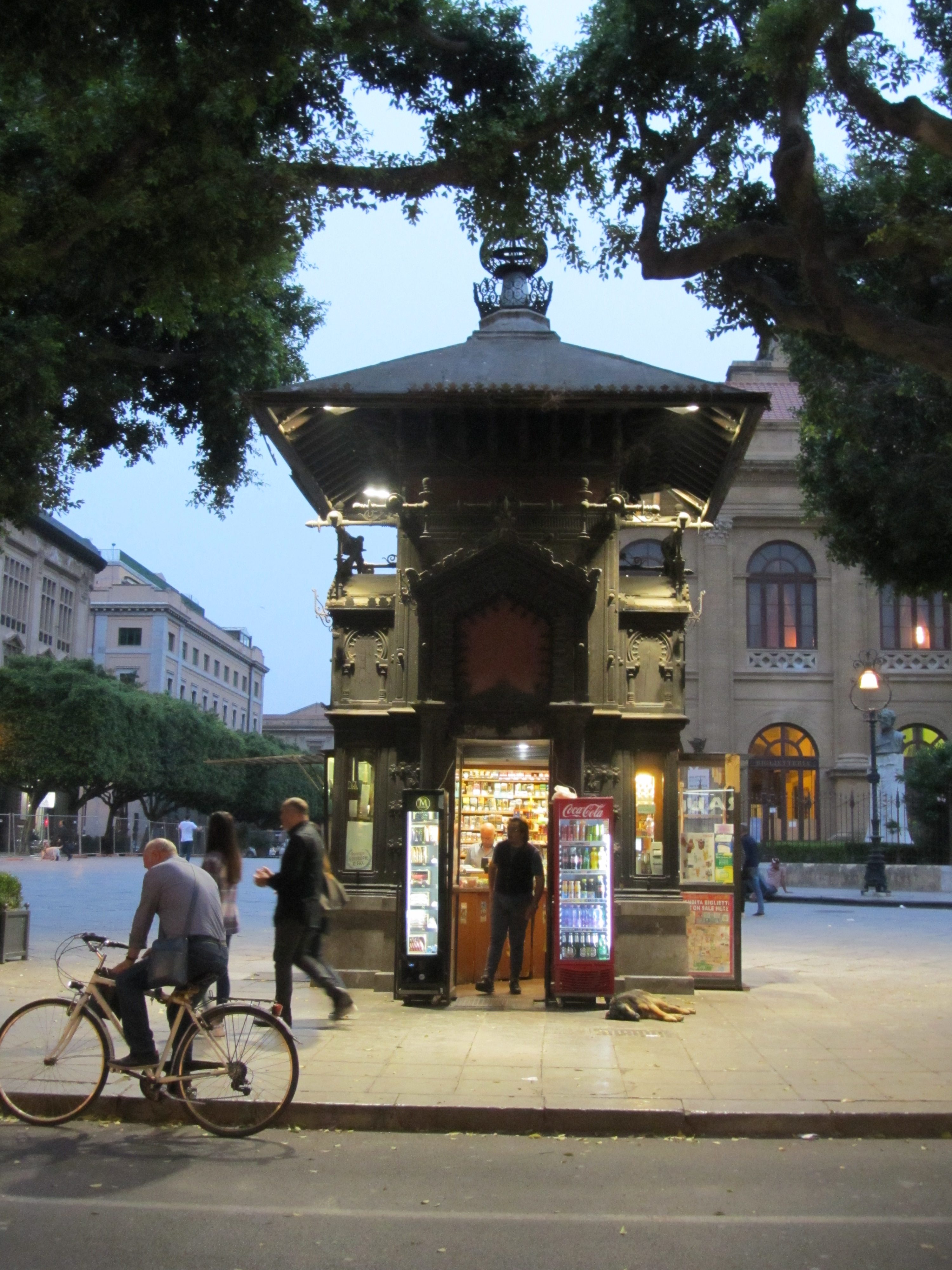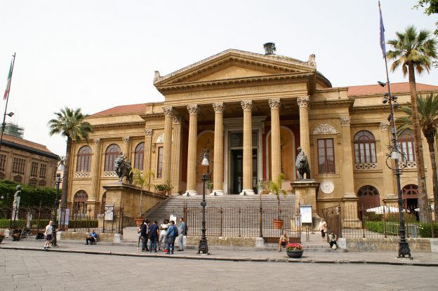 - Puis taxi vers la Piazza Verdi/Teatro Massimo (ci-dessus), et encore 300m à pieds pour l’appartement Sant’Agostino, dans la rue du marché du Capo. Situé dans un ancien palais complètement rénové, l’accueil de Gigliola est très sympa, et l’appartement de 87m2 superbe. Découverte du quartier avec ses contrastes et repas à la Pizzeria Italia via Orologio (piétonne) près du Teatro Massimo.