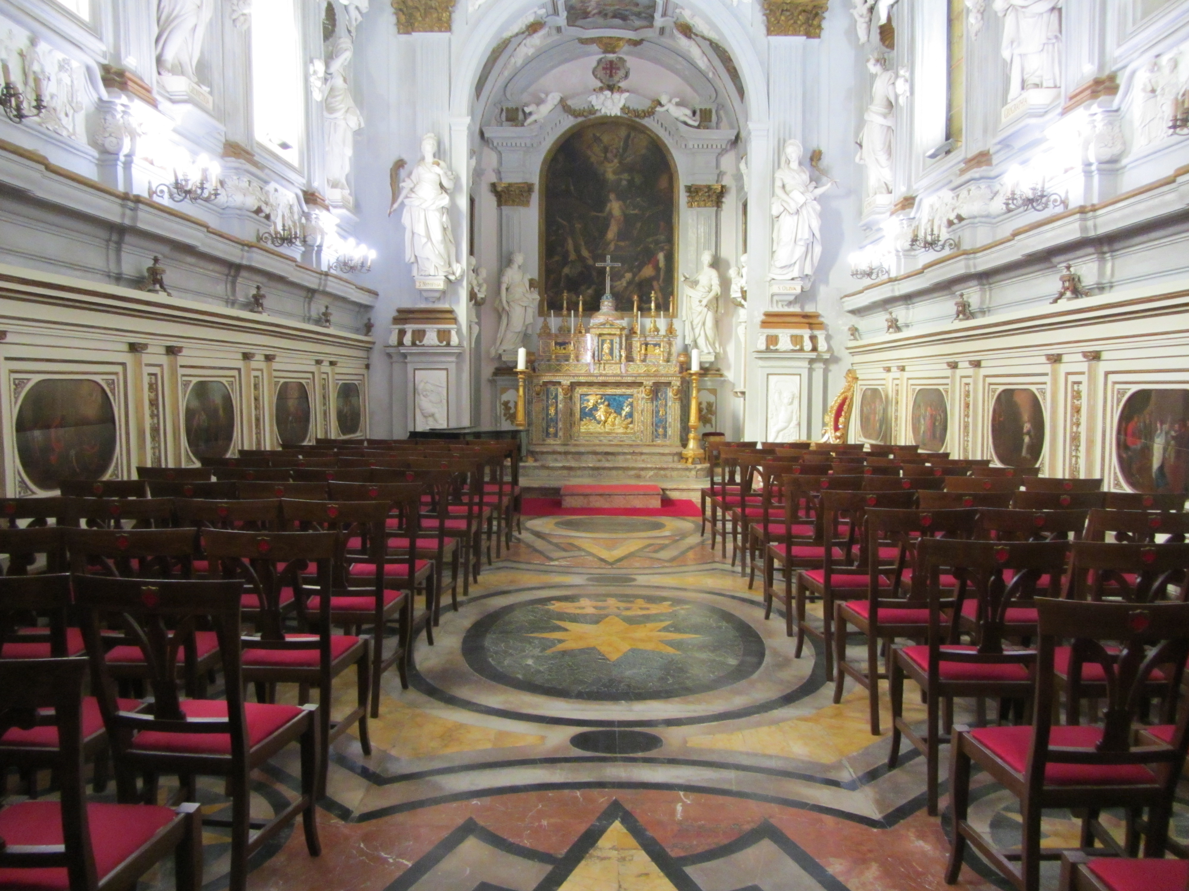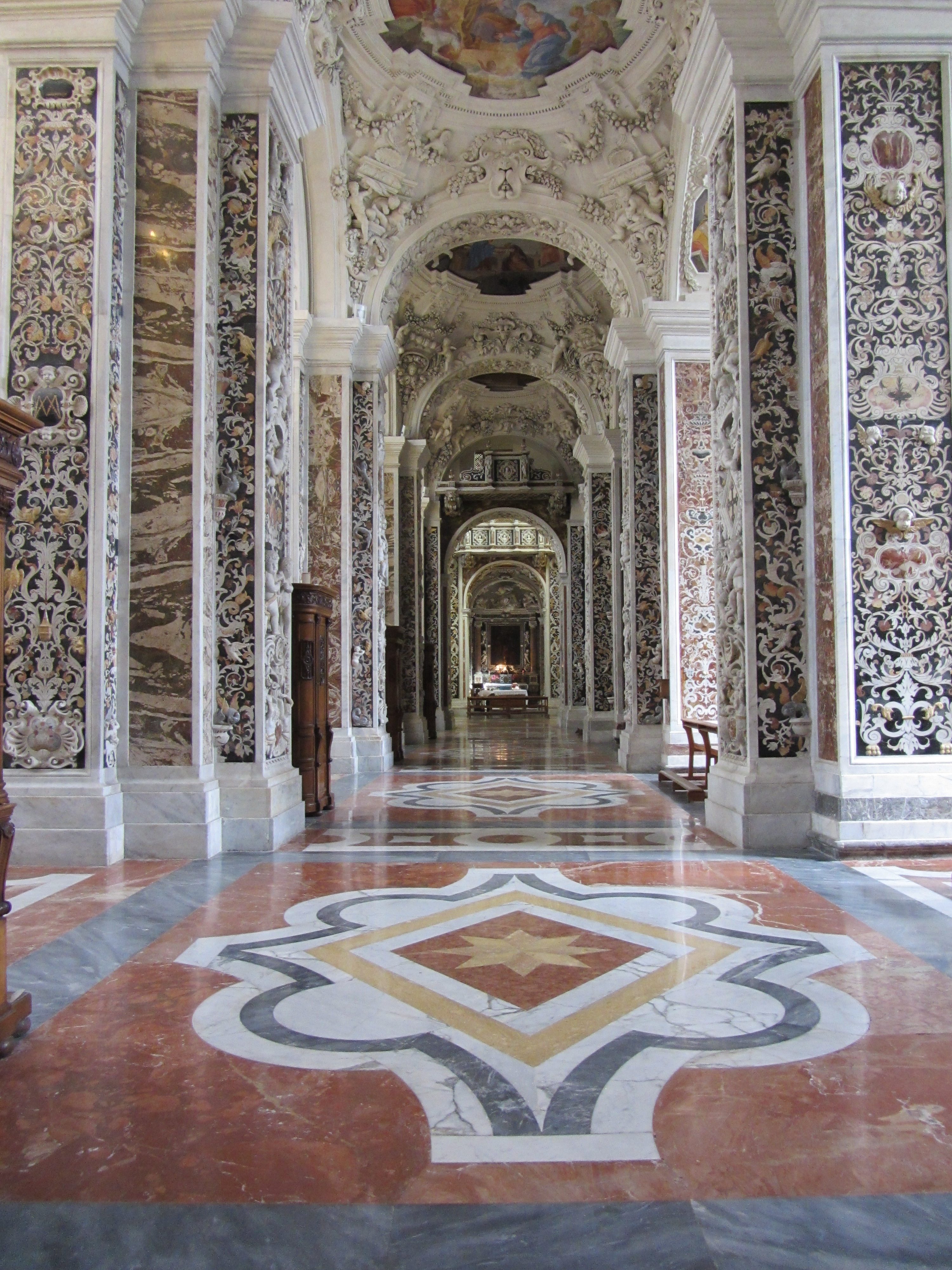 - J02 à Palerme: vendredi 12, journée de découvertes à pieds soit 17430 pas, pour 11km pistés par cette application smartphone: on commence par l’Oratorio di San Filipo Neri attenant à l’église Sant’Ignazio*, hé bien il est fermé (sans explication du préposé peu aimable) et à côté, l’Oratorio di San Caterina d’Alessandria* idem, mais ce dernier sera visible après 15h00 (bien noté, 2,5€/pers. sobre avec une petite cour attenante).