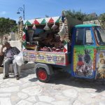 • La SP16 va au bout du bout, tout au Nord à San Vito lo Capo** à 44km/55mn. Pique-nique à l’ombre avant de découvrir une belle plage à touristes avec transats/parasols et boutiques. Petite station très balnéaire ! sur cette route, le village de Castellozo* présente ses maisons avec toits en adobe style Nouveau Mexique..dépaysant.
