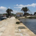 • Nous remontons vers le Nord 9km jusque l’embarcadère (parking gratuit) de l’île de San Pantaleo/Mozia**, où voyant les bus scolaires/touristes nous préférons pique-niquer d’abord. Bonne idée, car nous embarquons ensuite vers 13h15 à moins de 10 touristes pour une très courte traversée. *Attention* le coût du bateau est de 15€/AR en CB pour 3 adultes mais ne vous donne QUE le droit de poser le pied sur le débarcadère opposé ! pour visiter l’île ET le musée il faut s’acquitter de 9€ en cash/pers. au péage qui vous tend les bras… le musée est petit mais intéressant (compter 15/20mn et il est fermé de 12h45 à 14h00) et la balade (boucle 1,7km) vers les ruines Phéniciennes de la Porte Nord (700 ans avant JC) assez jolie à cette période. Compter 1h30 AR en tout.