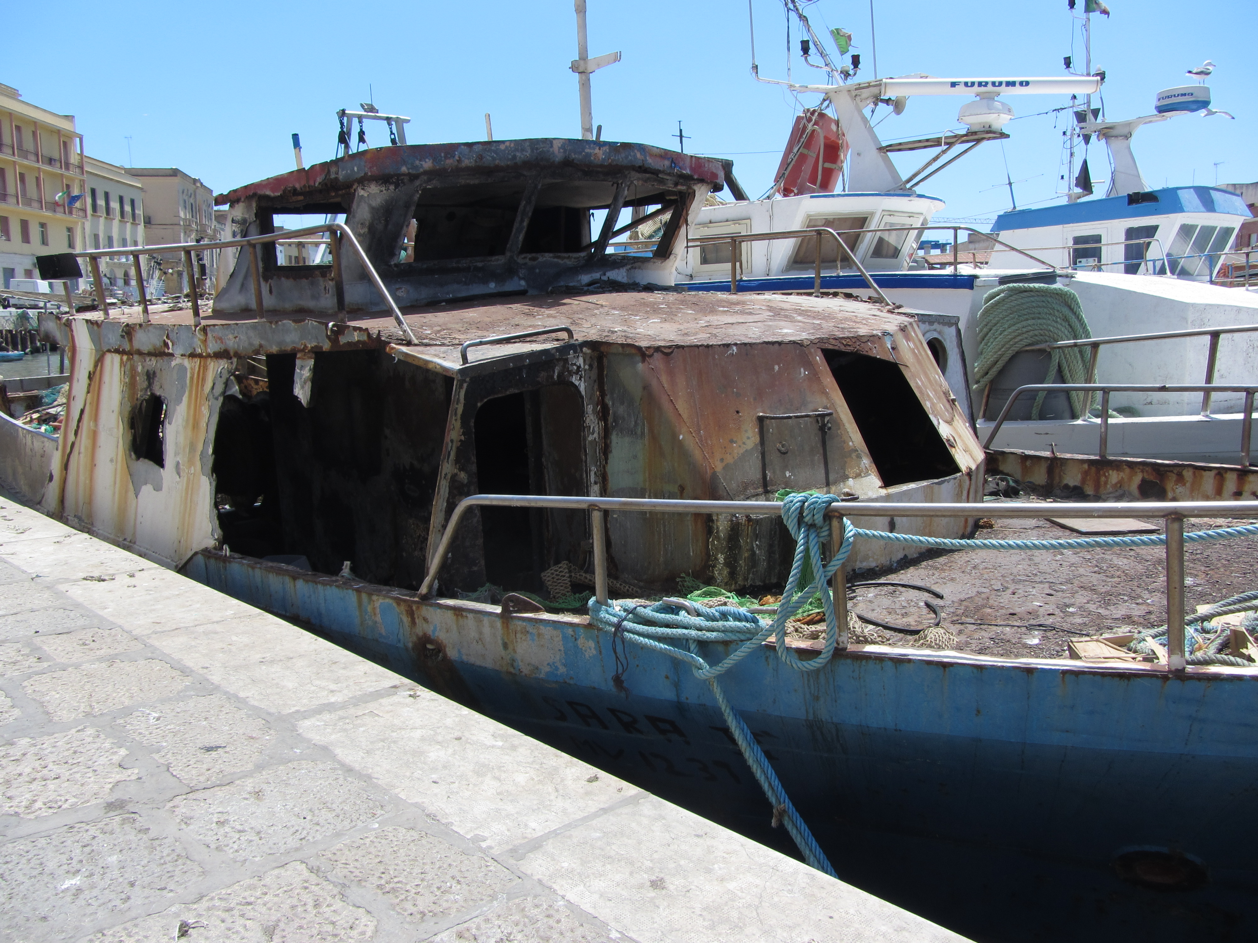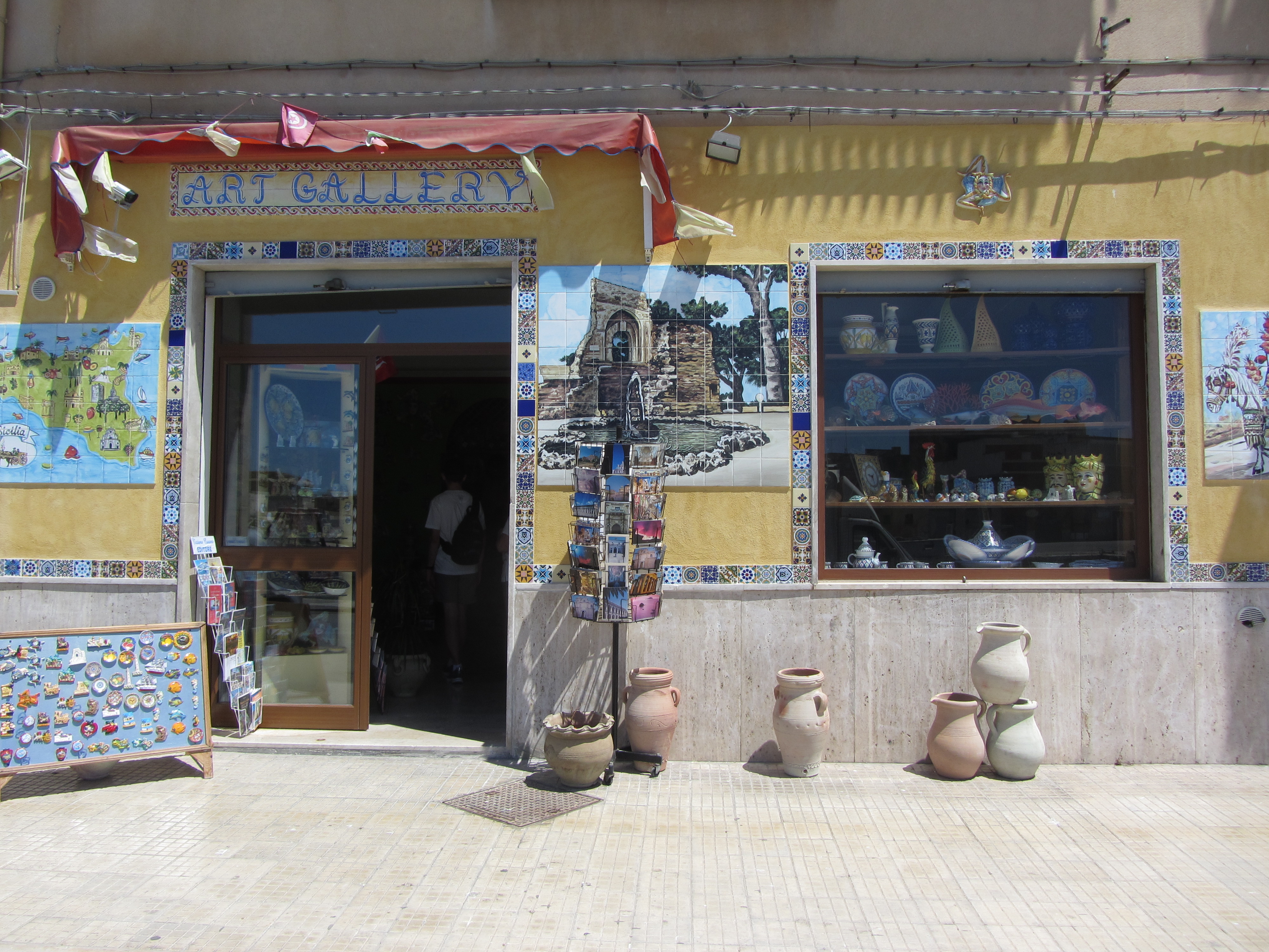 • Visite déprimante du port et ses chalutiers rouillés, du collège des Jésuites en ruines, des piazza Plebiscito et Republica sympa mais désertes, le musée du Satyre Grec est fermé tout comme le Teatro Garibaldi, les boutiques des rues « commerçantes » … sont closes, et à part 2/3 touristes perdus, il n’y a personne dans les rues !!! Ha si, la boutique de souvenirs près du port (merci à ce monsieur sympa).