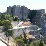 • J14 à Erice et Trapani: mercredi 24, la voiture ne bouge pas mais nous si… (global 12500 pas, pour 8,3km pistés par cette application smartphone): direction Erice, petit bourg perché à 700m au dessus de Trapani.