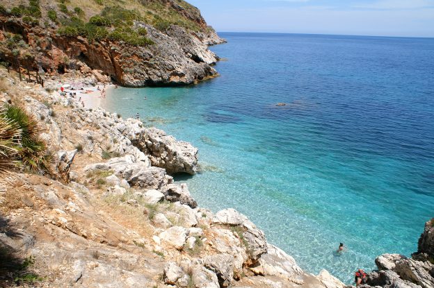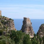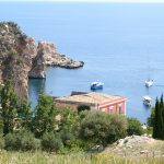• Retour vers la route du bas qui longe la côte pour apercevoir le petit port** du même village et ses 2 tours (accès à pieds uniquement). En continuant 2km vers le Nord, un chemin cahoteux mène au parking gratuit de la réserve naturelle du Zingaro*** (5€ en cash) où après le passage du tunnel (ouf, un peu d’ombre) un chemin assez escarpé par moment mène au Visitor Center (450m/10mn) où un Ranger présente faune et flore* du site. Plus bas à droite le chemin mène à la plage de la Capreria** (encore 450m en descente sur pierres et cailloux… à 10%… qu’il faudra remonter), magnifiques points de vue, mais rappelons le, ce n’est pas plat !!! bilan 2km AR en 1h00 (nombreuses photos) pour un dénivelé global de 100m. Pour les sportifs, le chemin du haut emmène bien plus loin dans la réserve.