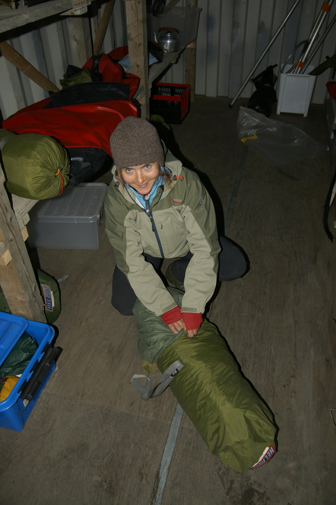 Vient ensuite la distribution du matériel de kayak, grand moment ! Nous essayons successivement nos salopettes en polaire (vite surnommées « les babygros »), les chaussons en feutre et les combinaisons imperméables. Joli look de pingouin ou de cosmonaute, selon les avis ! La vérification minutieuse des combinaisons et les petites réparations occupent la fin de la matinée.