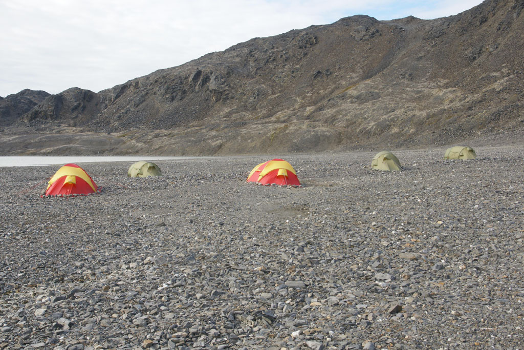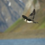 Les guillemots et les fulmars sont partout et passent souvent très près des kayaks. Un gros phoque barbu nous observe de loin, sortant juste la tête de l’eau. Le soleil est radieux et nous avons presque trop chaud dans nos combinaisons ! Nous revenons au camp après environ 5 heures de navigation, très heureux de cette première expérience. Le premier Macareux moine du voyage nous accueille, ainsi qu’un vol de 5 Plongeons catmarins.