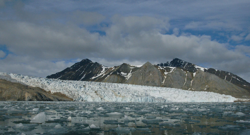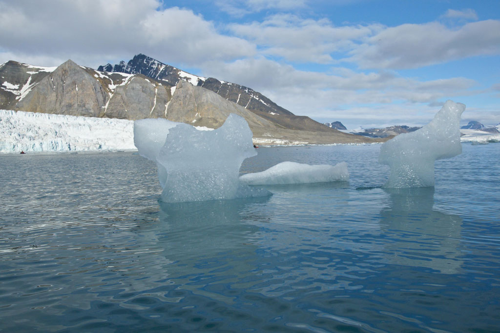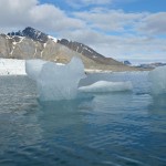 Nous arrivons bientôt près de la rive nord de l’île « Blomstrandhalvøya » et au pied du glacier « Blomstrandbreen ». La quantité de glaçons générée par le glacier est énorme, il y en a partout ! Pierre nous raconte que dans les années 80, le glacier arrivait jusqu’à l’île et on ne pouvait pas faire le tour de celle-ci. Ce n’est plus du tout le cas maintenant. Nous slalomons entre des glaçons aux formes toutes plus étonnantes les unes que les autres, sous un soleil radieux, c’est vraiment superbe.