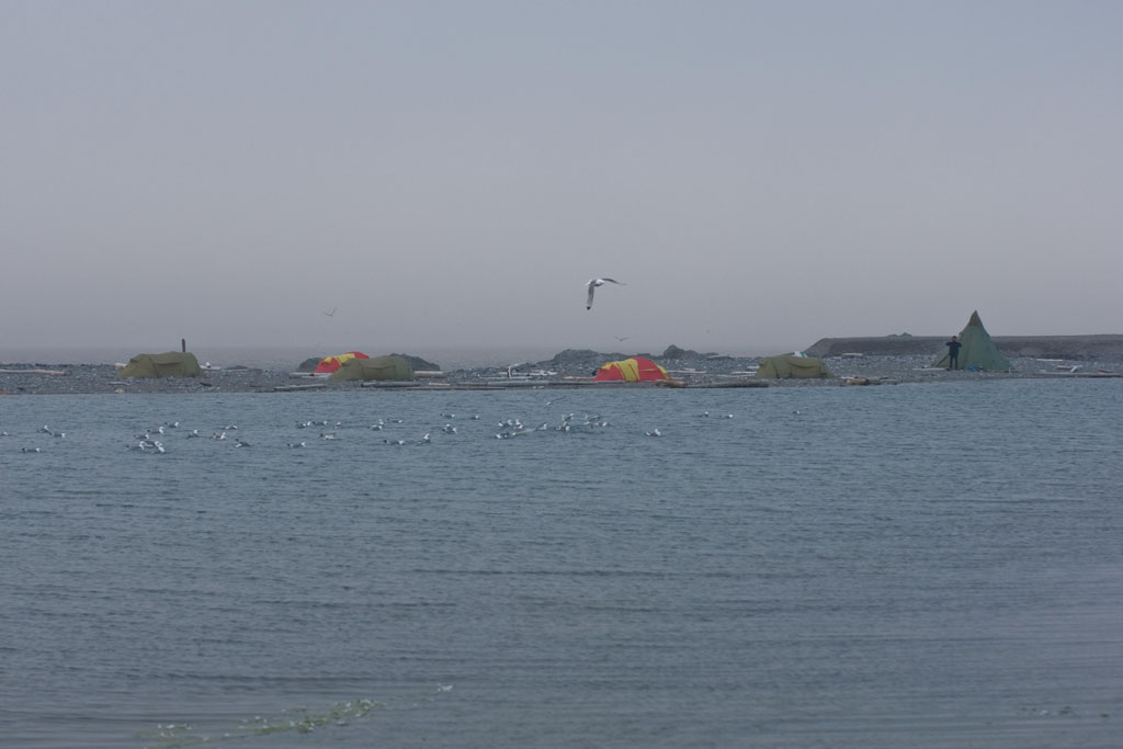 Un escalier en bois de construction très récente permet d’accéder à la ville depuis le port, mais c’est bien le seul élément en bon état que nous y verrons. On a un peu l’impression de changer d’époque et de pays. Outre le fait que tout soit écrit en russe, la ville comprend de nombreux bâtiment immenses, mais tous ou presque paraissent vides et beaucoup sont délabrés. Il en est de même pour les installations agricoles et les routes.