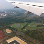 Nous voilà partis ! Première chose à signaler au lecteur : l’ouest Américain, c’est loin… il faut compter en moyenne 24h entre le réveil et le coucher quelques 9000 km plus loin. L’aéroport de Washington Dulles a été fermé ponctuellement à cause d’un orage – une bonne nouvelle car notre avion a été dans les premiers (le premier ?) à atterrir, donc les officiers de l’immigration nous attendaient pour un passage express, pour une fois. A l’origine le temps de transit était de 3 heures, ce qui est raisonnable, mais au fur et à mesure des changements de la compagnie aérienne il s’est transformé en 5h14. C’est long, mais cela nous a permis de manger tranquillement.