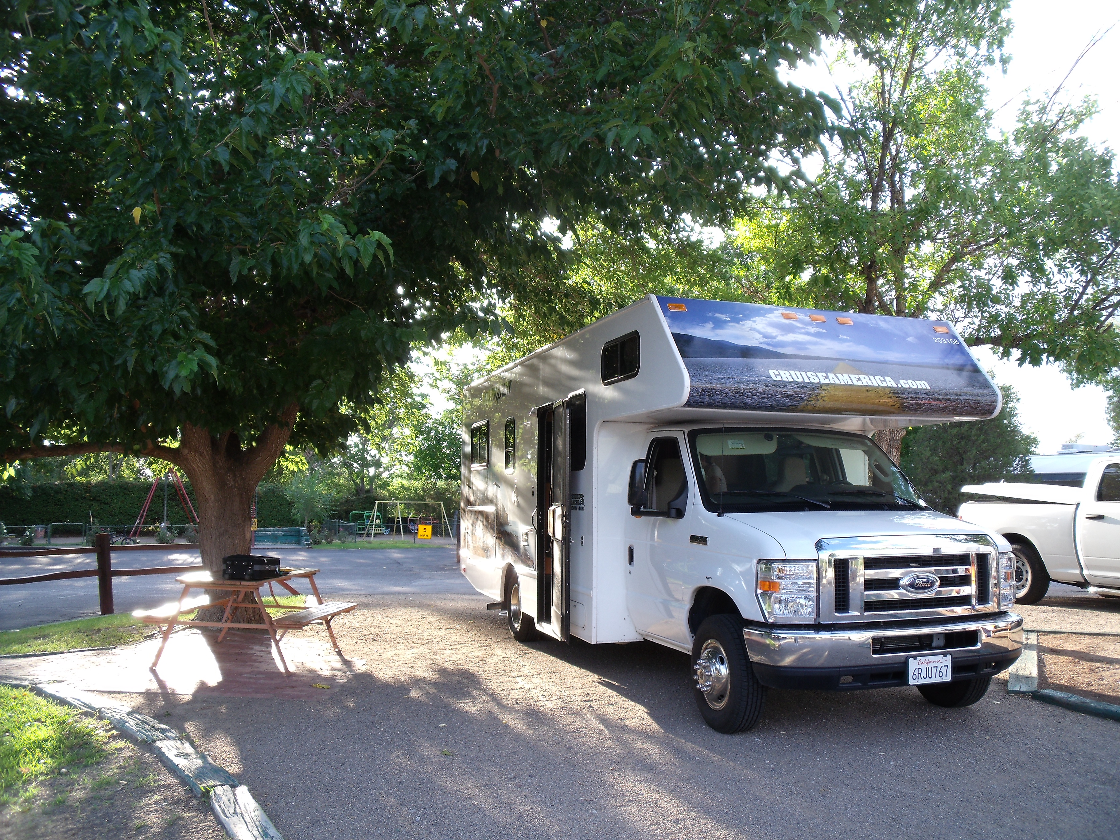 L’agence Cruise America où nous avons récupéré le camping-car est située dans l’enceinte du KOA d’Albuquerque (où nous resterons pour une nuit un peu plus tard dans ce voyage). Le personnel est sympathique bien qu’un peu débordé. Notre C25 est heureusement assez récent (11000 miles soit environ 18000 km) et plus moderne que celui que nous avions eu en 2009. S’en suivent les évidentes courses alimentaires au Walmart du coin.
