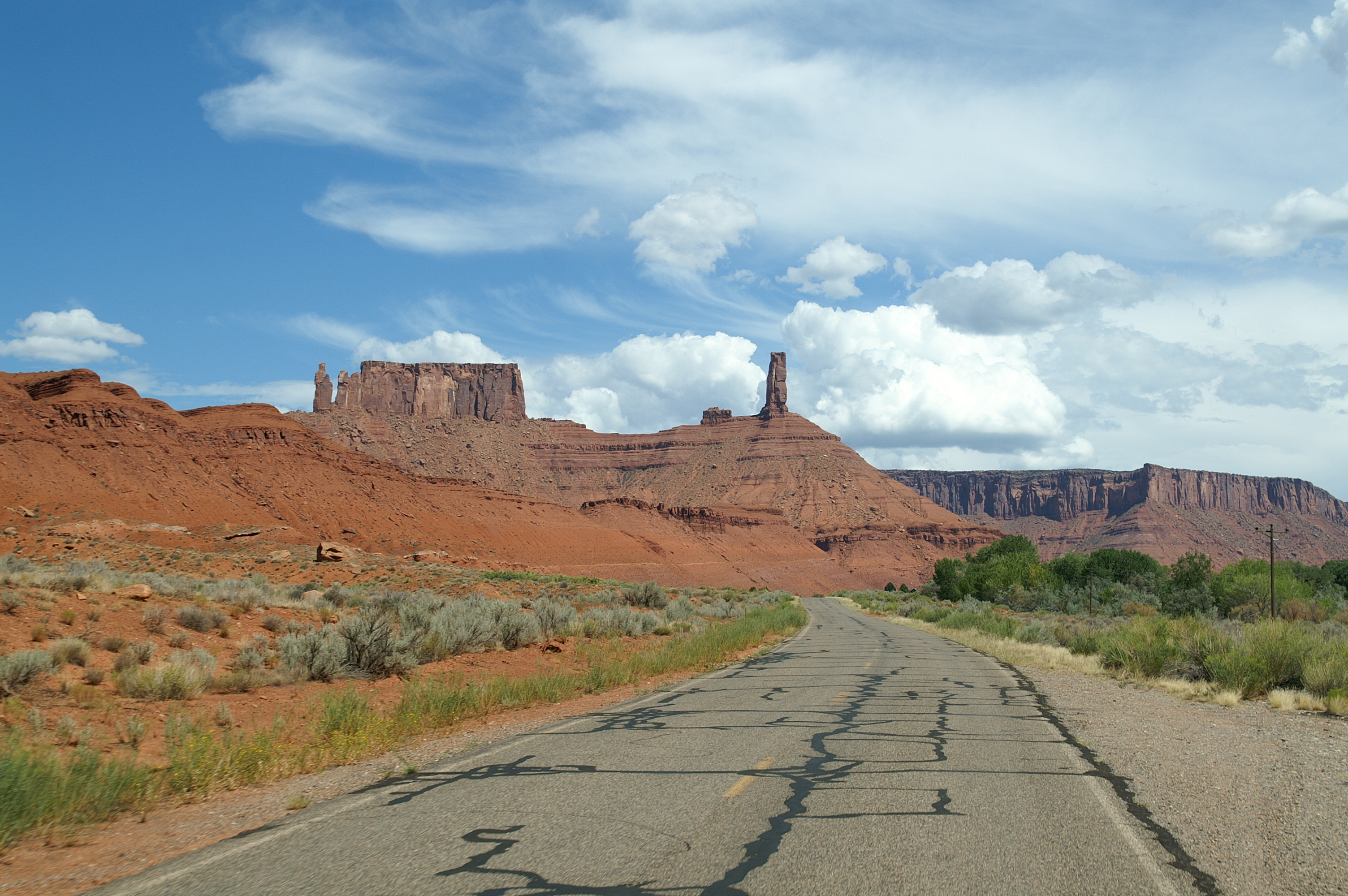 Après avoir changé d’état et un rapide passage à Cisco en Utah – une ville maintenant isolée, abandonnée et lugubre – nous commençons la route 128, une des plus belles routes scéniques de l’Utah le long du Colorado. Un aller-retour du côté de Castle Valley nous permet de déjà rêver à Monument Valley dont beaucoup de formations rocheuses sont ressemblantes.