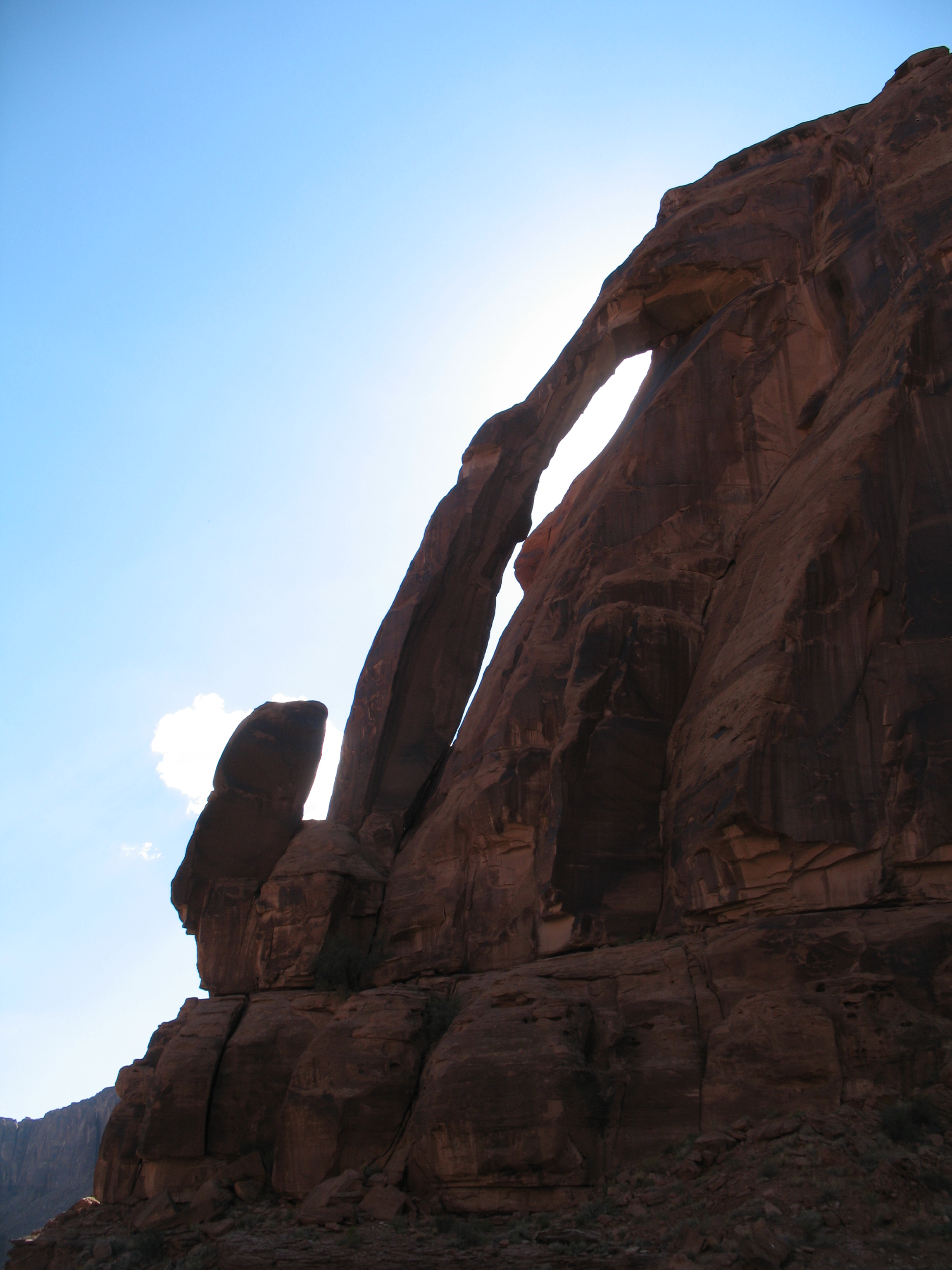 L’après-midi nous avons parcouru la Potash Road jusqu’au bout, contrairement à notre première incursion de 2009. Après être repassés devant les pétroglyphes déjà vus au début de la route, nous avons pu découvrir un paysage un peu différent, et un peu plus loin la Jug Handle Arch au détour d’un virage.