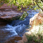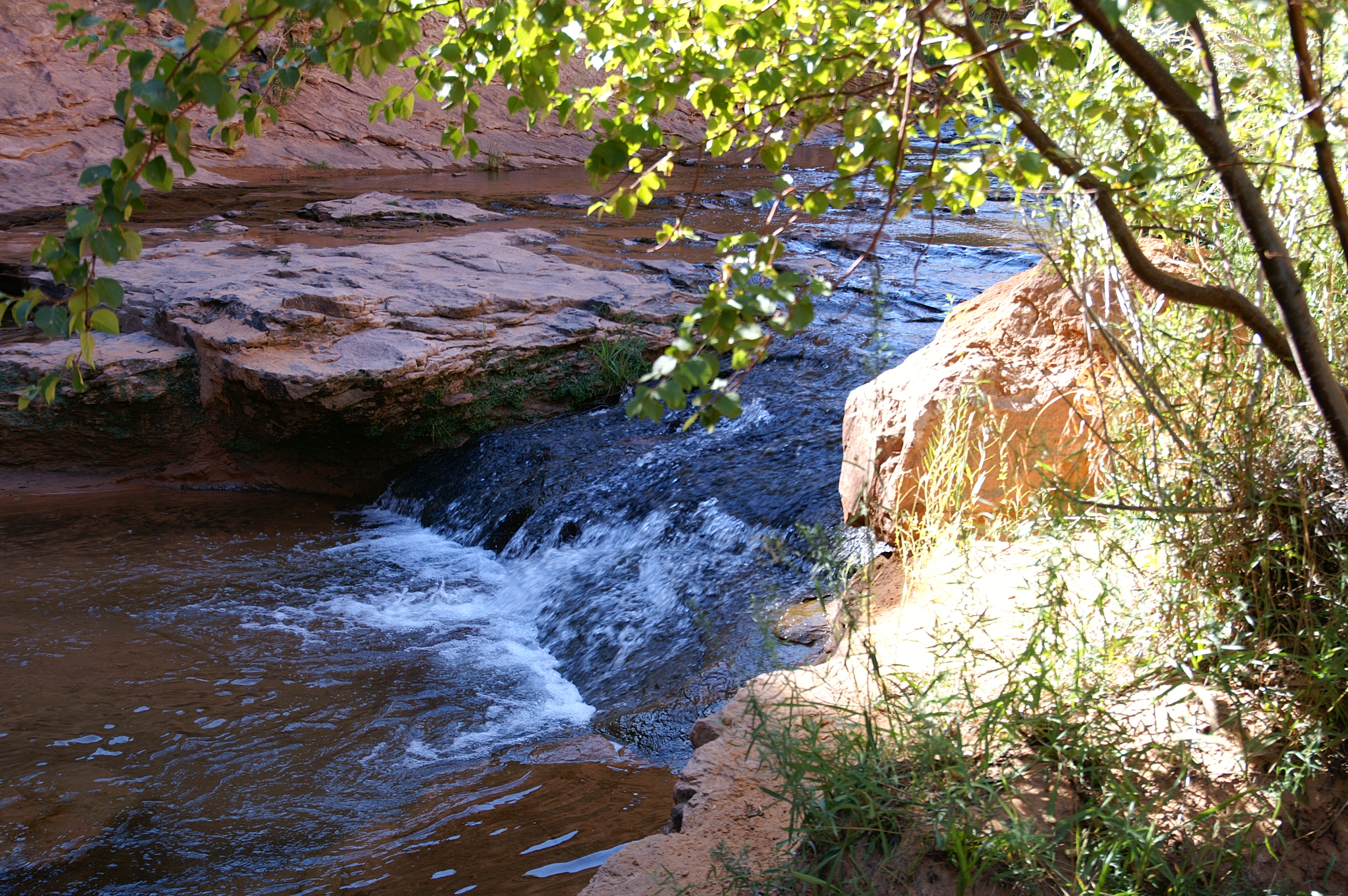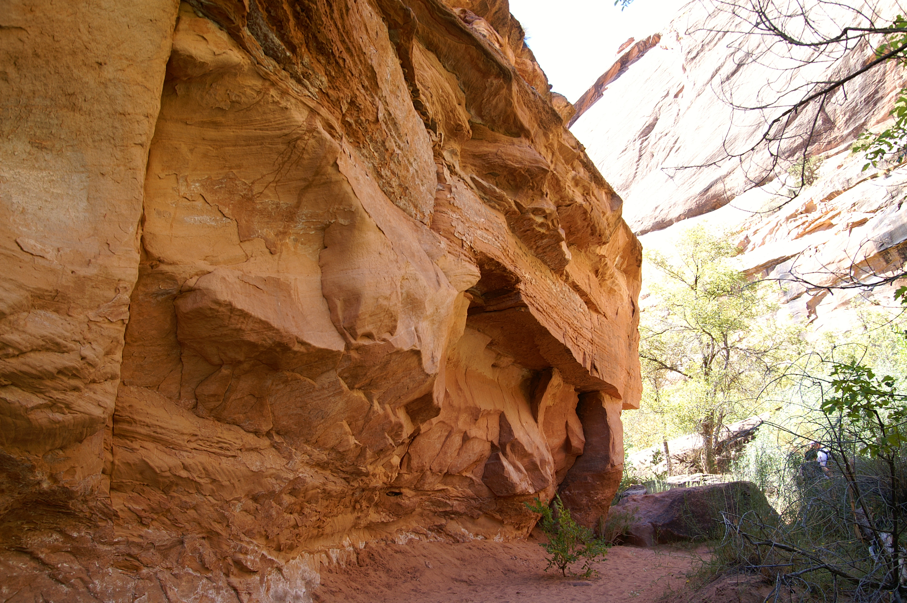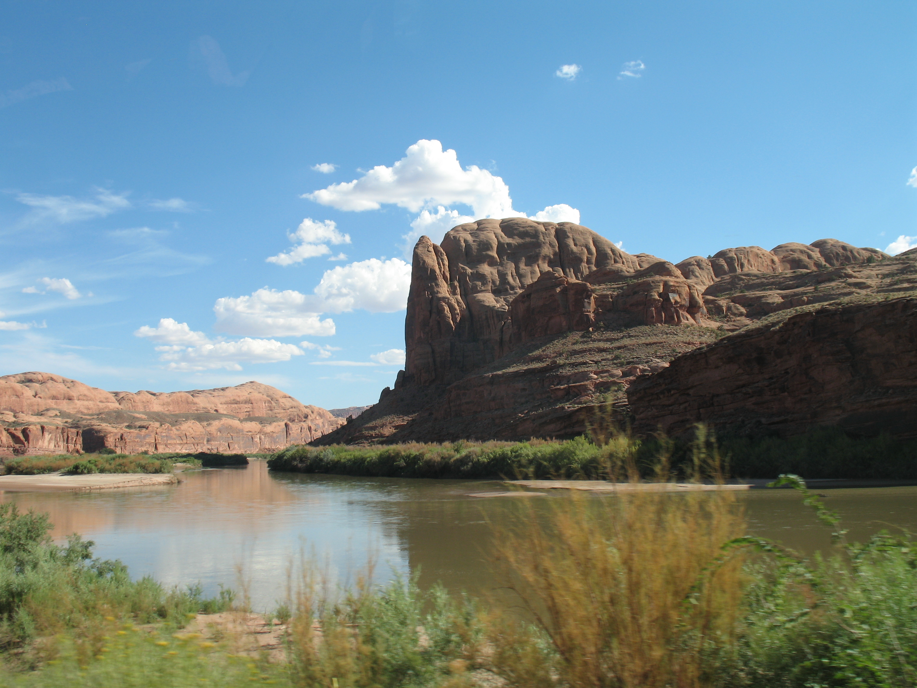 Negro Bill Canyon, dont nous n’avons fait que les trois quarts (environ 5 km aller-retour), comporte plusieurs franchissements du cours d’eau qui longe le trail et quelques passages délicats pour qui n’a pas le pied marin. C’est une randonnée au cœur du canyon avec une vue en contre-plongée sur les falaises qui le surplombent. Il est préférable de l’entreprendre le matin de bonne heure pour bénéficier de l’ombre et des températures plus supportables que dans l’après-midi (36°C ce jour là à Moab).