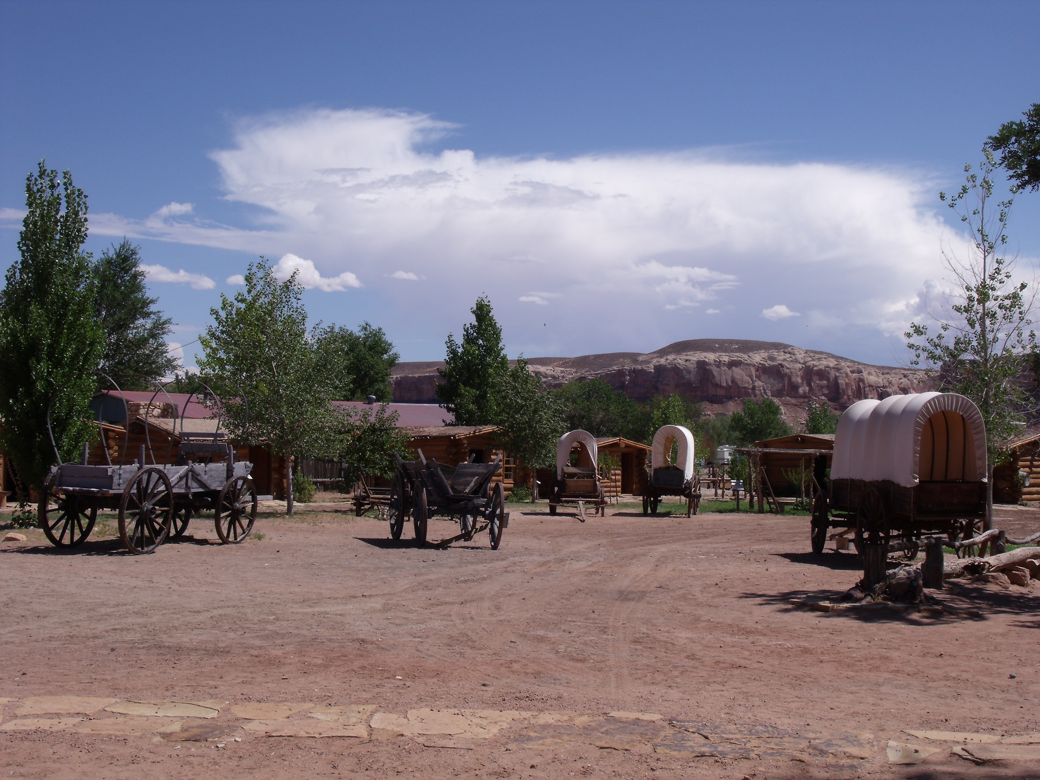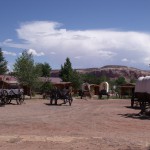 A l’entrée de Bluff, les bien connus et photographiés Twin Rocks surplombent le Trading Post éponyme, dont les articles certes intéressants ont tout de même un certain prix… Mais le lieu à visiter à Bluff est le Bluff Fort, un village fortifié de 1880 où les « cabins » (petites maisons en bois) sont aménagées dans le style de l’époque et dédiées aux familles occupantes ; des chariots de pionniers agrémentent le site. Le film projeté au Visitor Center relate l’épopée des Mormons qui, à partir de Parowan et dans des conditions dantesques, ont tracé une route directe à travers le canyon Hole-in-the-Rock et les gorges du Colorado pour établir une colonie là où se trouve Bluff aujourd’hui.