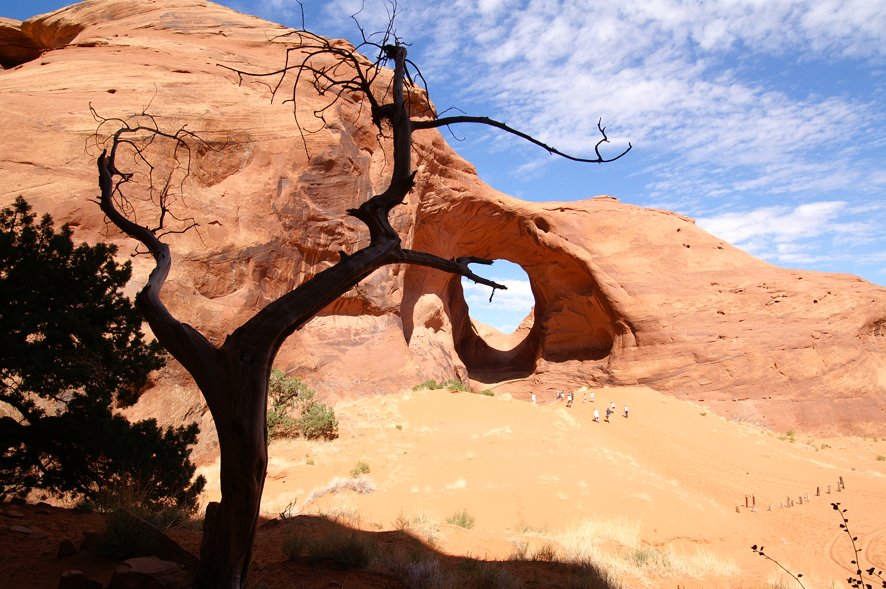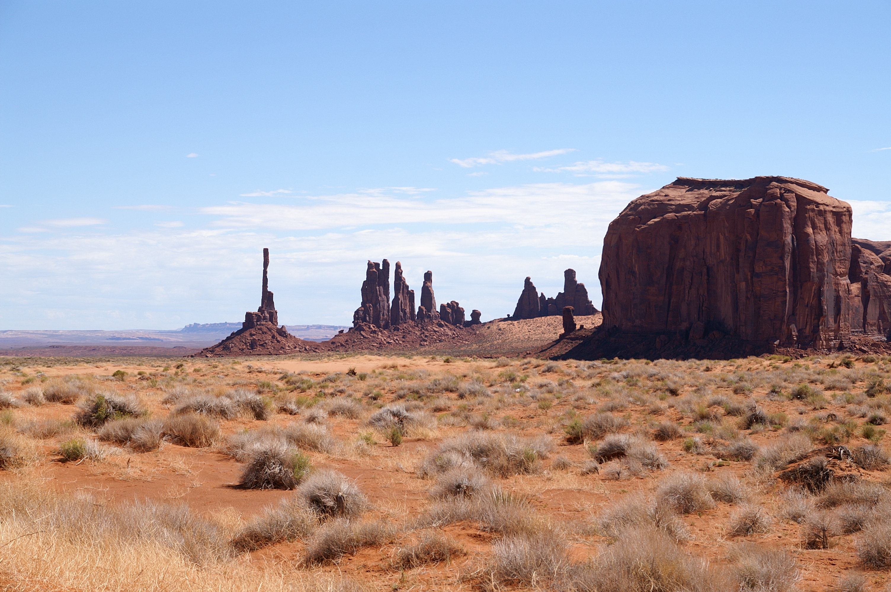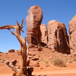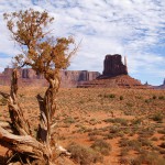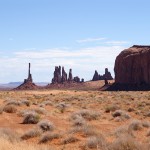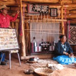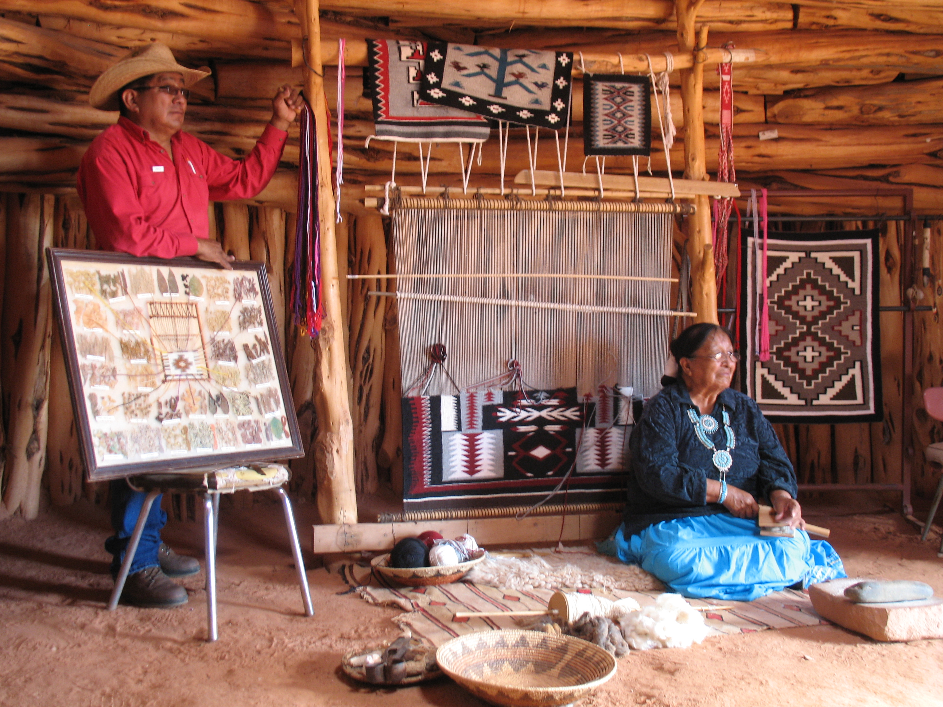 Comme en 2009, nous avons opté pour le tour de 3h30 organisé par le Goulding’s, qui comprend les zones publiques et certaines zones privées de Monument Valley. Le véhicule de 20 personnes comprend un pare-brise pour protéger de la poussière et est équipé de sièges relativement confortables ; notre guide, en dehors d’une conduite assez souple, nous a gratifiés de commentaires intéressants mais pas toujours intelligibles… Le paysage est toujours aussi émouvant et inoubliable, et ne se limite pas aux trois buttes bien connues représentées sur les cartes postales. Au début de la visite, une démonstration d’artisanat est effectuée par une Navajo dans un hogan traditionnel.