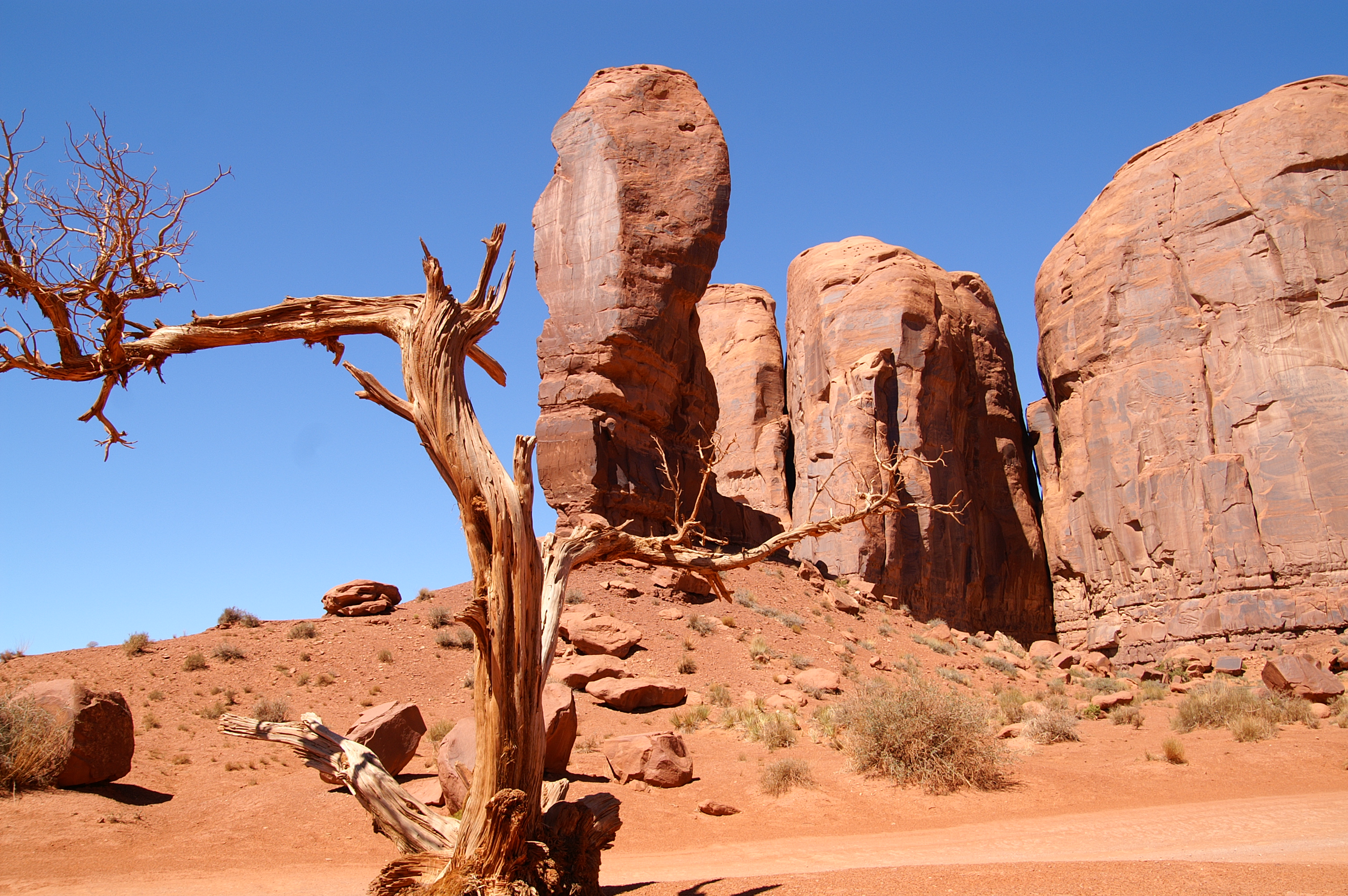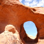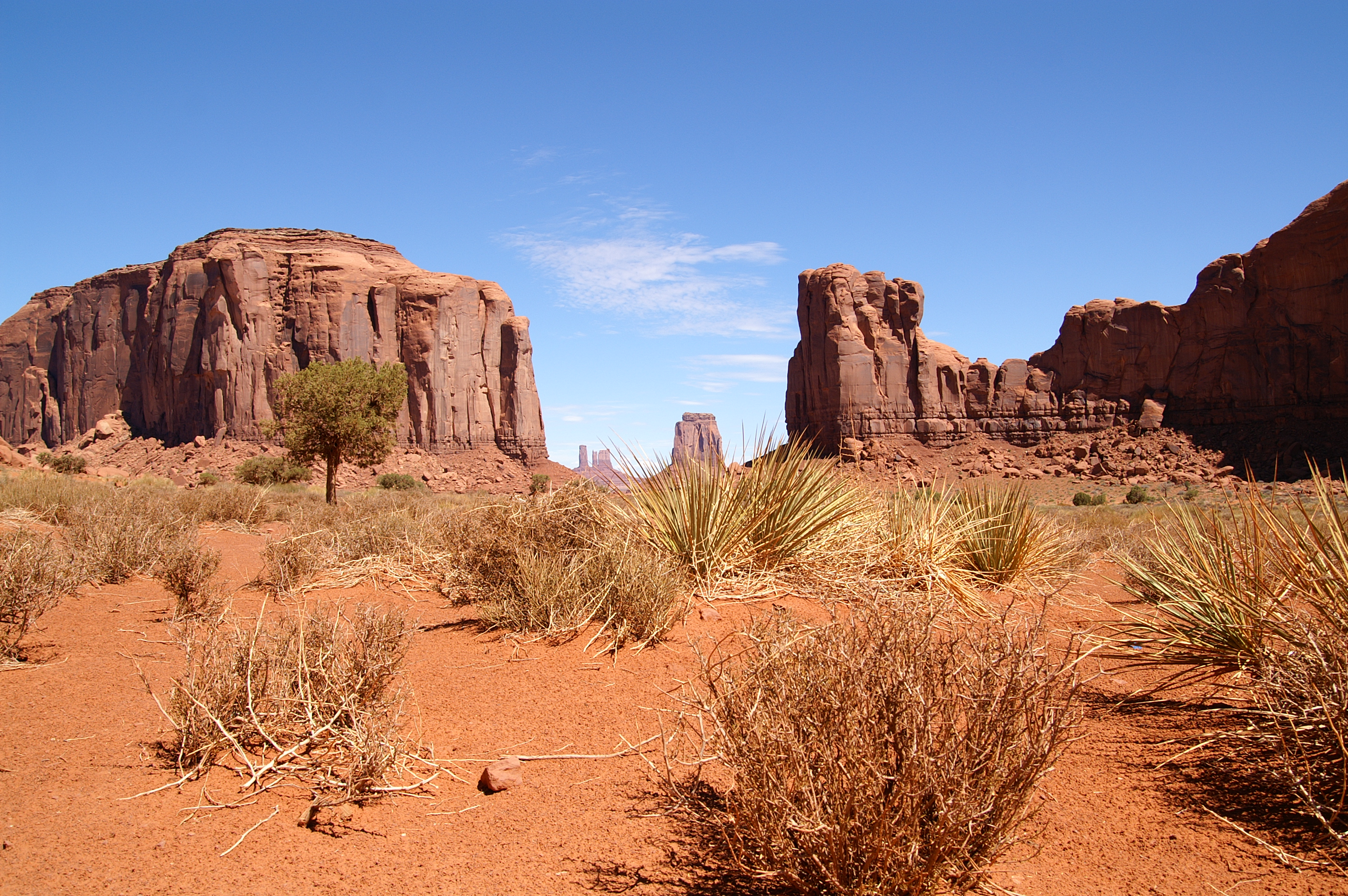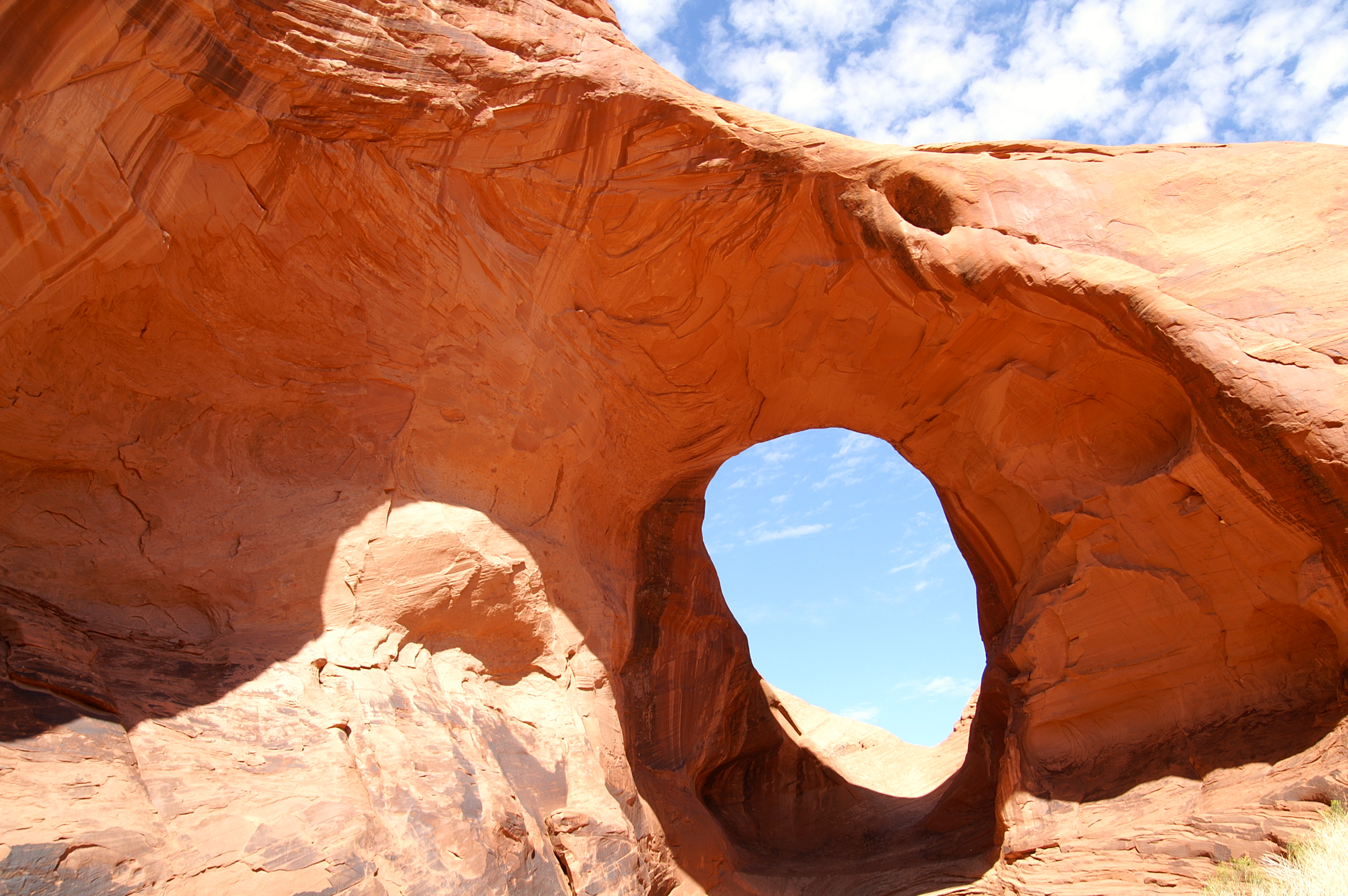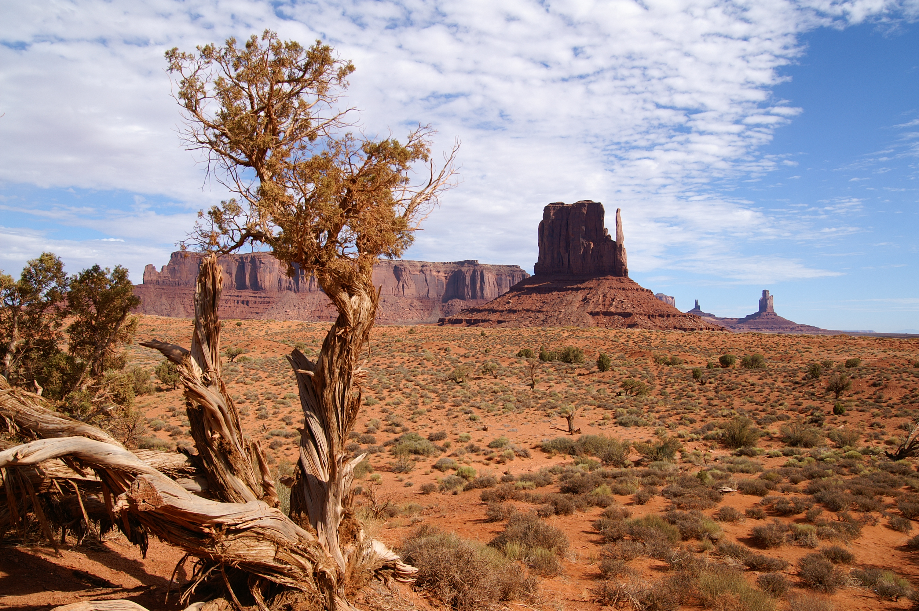 Comme en 2009, nous avons opté pour le tour de 3h30 organisé par le Goulding’s, qui comprend les zones publiques et certaines zones privées de Monument Valley. Le véhicule de 20 personnes comprend un pare-brise pour protéger de la poussière et est équipé de sièges relativement confortables ; notre guide, en dehors d’une conduite assez souple, nous a gratifiés de commentaires intéressants mais pas toujours intelligibles… Le paysage est toujours aussi émouvant et inoubliable, et ne se limite pas aux trois buttes bien connues représentées sur les cartes postales. Au début de la visite, une démonstration d’artisanat est effectuée par une Navajo dans un hogan traditionnel.