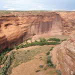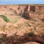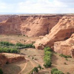 Nous quittons aujourd’hui l’Utah pour entrer dans l’Arizona. La route 59 qui relie directement Kayenta à Chinle est finalement moins décevante que prévu : une première partie avec de verts (!) pâturages, au milieu (sur 5 miles environ) de très belles roches multicolores, la fin étant beaucoup plus aride. Chinle est une ville toujours aussi déprimante, mais nous avons retrouvé avec joie le Spider Rock Campground et sa quiétude. Howard Smith, le gérant Navajo, nous a encore réservé un accueil chaleureux (son chien Boy aussi).
