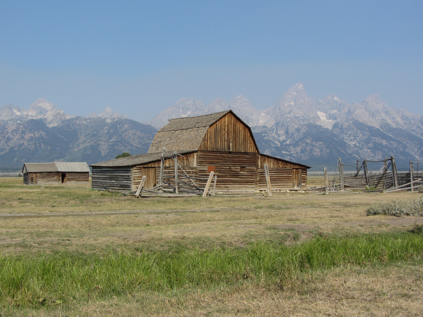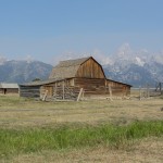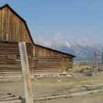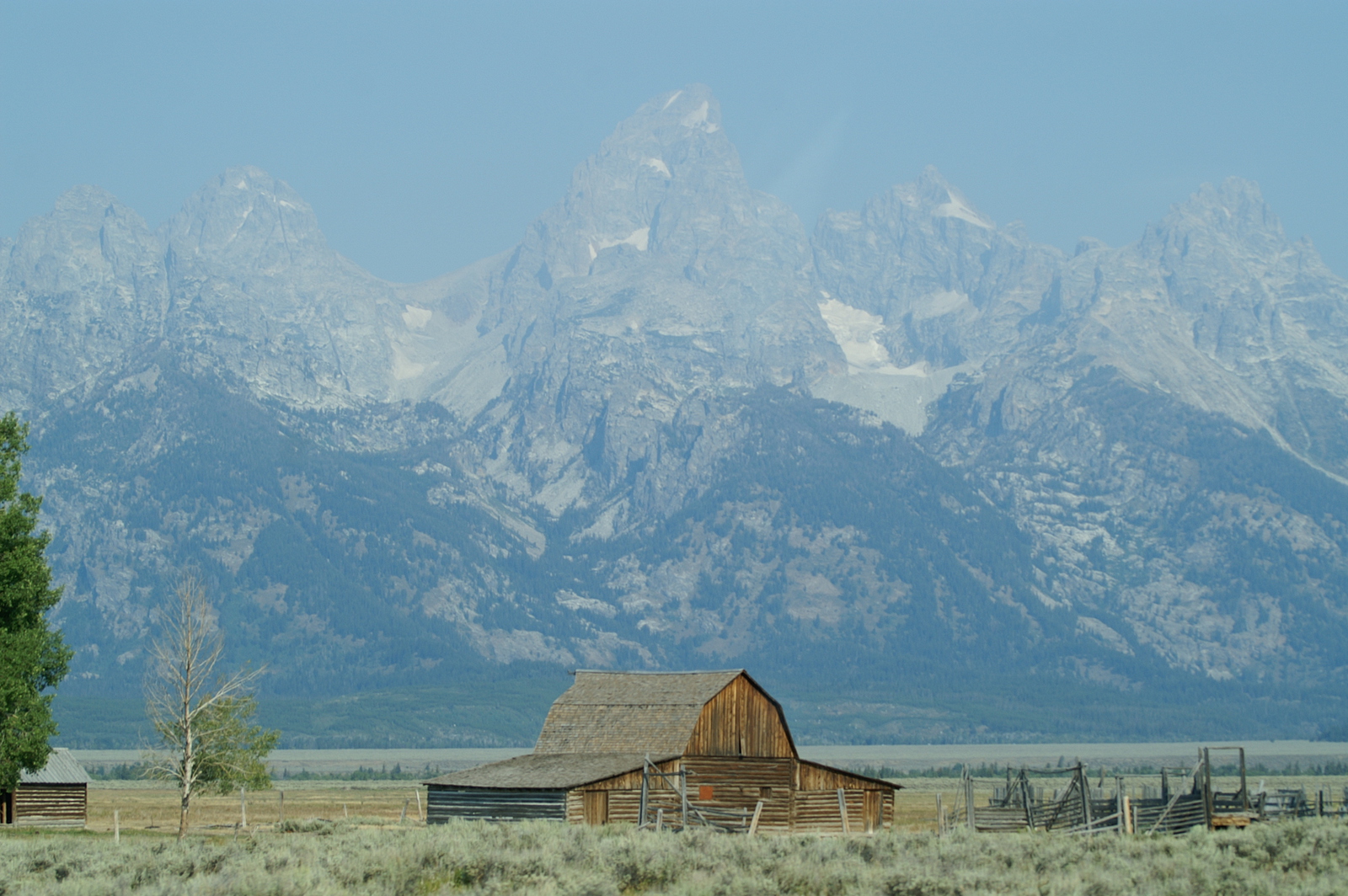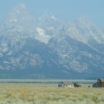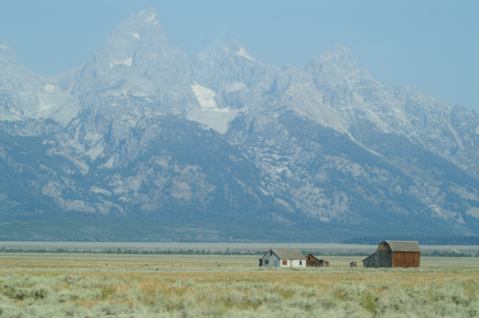 Dès 7h30, nous assistons au petit déjeuner d’un « moose » (élan) au campground, devant les campeurs étonnés au sortir du lit. La faune est au rendez-vous ce matin : un troupeau d’antilopes nous attend à proximité de Kelly Warm Spring, un étang alimenté par des sources d’eau chaude. Plus loin sur la route, nous n’avons pas pu résister à l’envie de prendre la traditionnelle photo des fermes de Mormon Row écrasées par le gigantisme des montagnes de Grand Teton, qui culminent à plus de 4000 m.