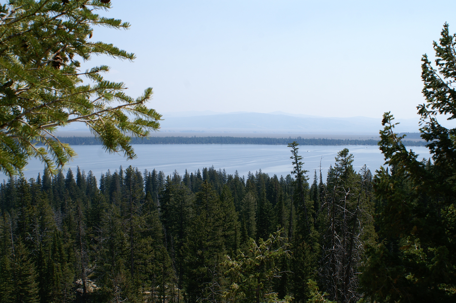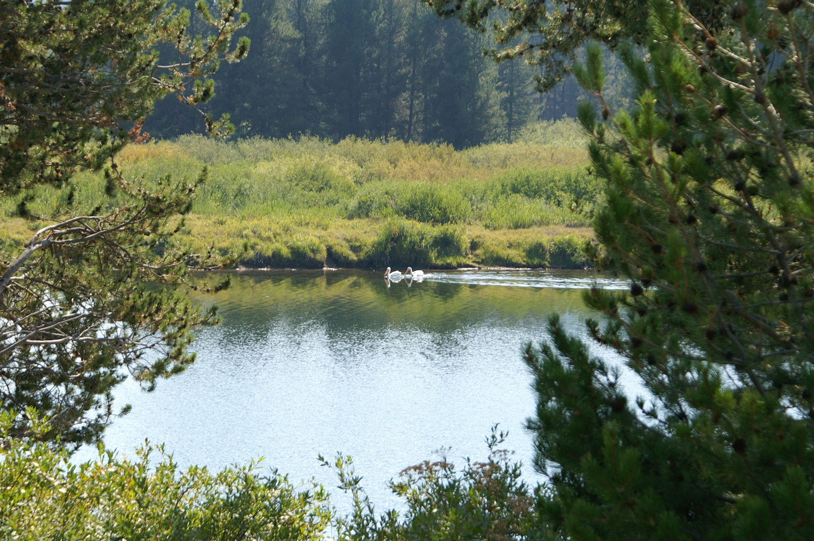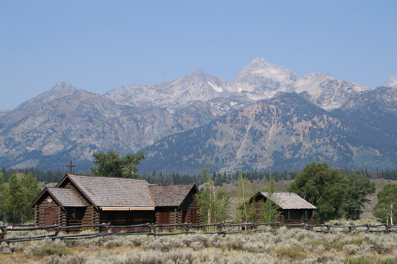 En reprenant la route vers Jackson Lake, la Chapel of the Sacred Heart présente la particularité architecturale d’être faite de rondins (voire de troncs) de bois tout en offrant un point de vue sur le lac, au moins dix fois plus grand que Jenny Lake. Un autre arrêt à Oxbow Bend est une occasion inattendue de rencontrer des sortes de pélicans naviguant tranquillement sur l’eau.