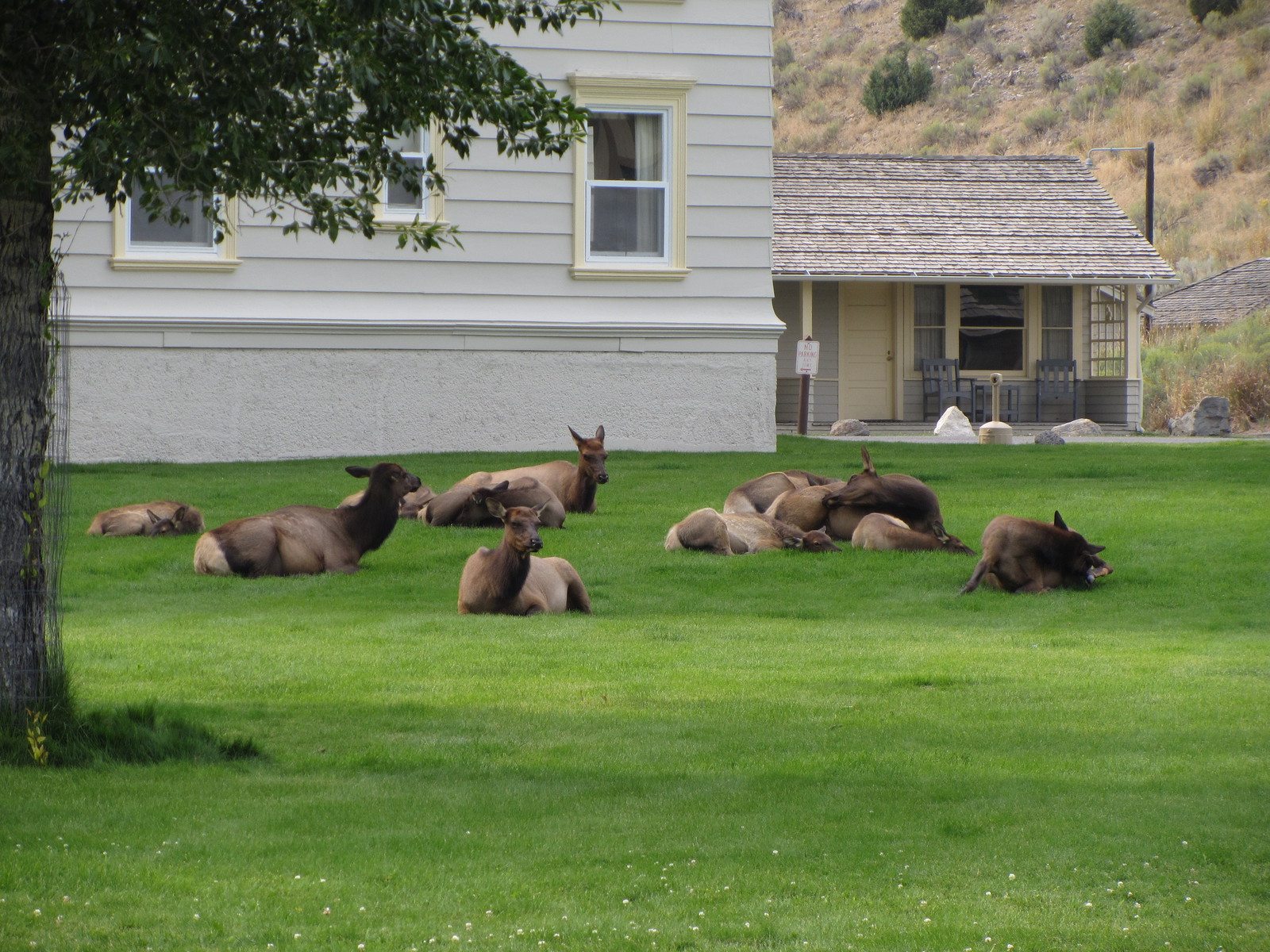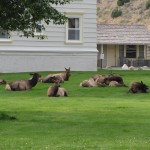 Avant de quitter Mammoth, nous assistons à une scène insolite mais courante en ce lieu : un troupeau d’elks (une espèce de cervidés) broutant paisiblement les pelouses du centre ville, à quelques pas des passants et des voitures. La suite de la route nous fait sortir de Yellowstone par la grande porte : la Roosevelt Arch, entrée nord historique du parc à Gardiner, Montana. C’est ici que nous passerons la nuit au Rocky Mountain Campground.
