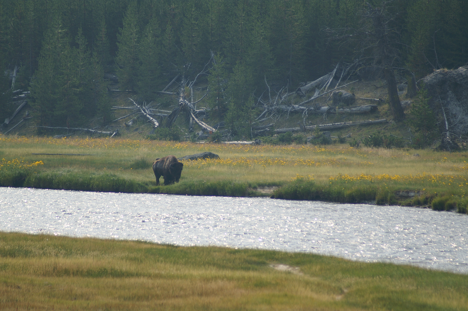 Aujourd’hui, cap à l’est depuis West Yellowstone en longeant la Madison River et la Gibbon River. Cette route bucolique nous amène à la rencontre lointaine d’un bison égaré et d’oies sauvages profitant de la fraicheur du matin, avant de contempler les Gibbon Falls.
