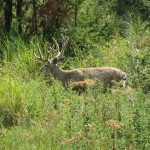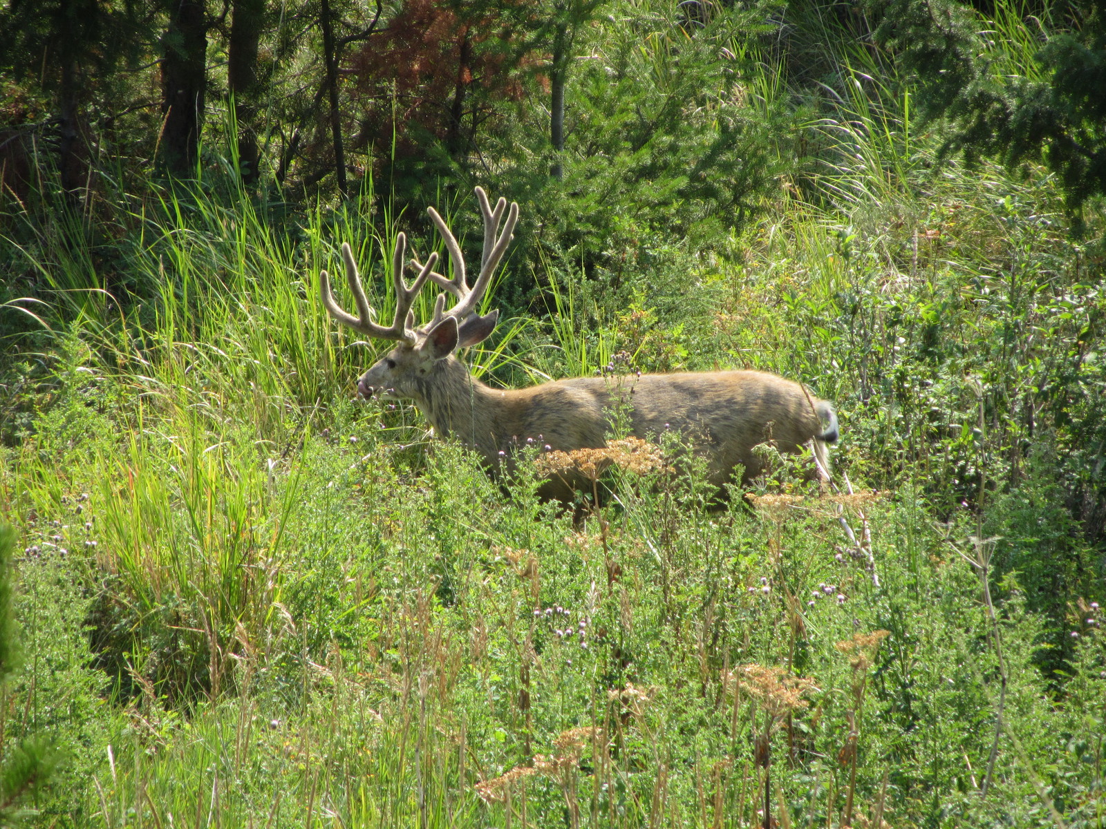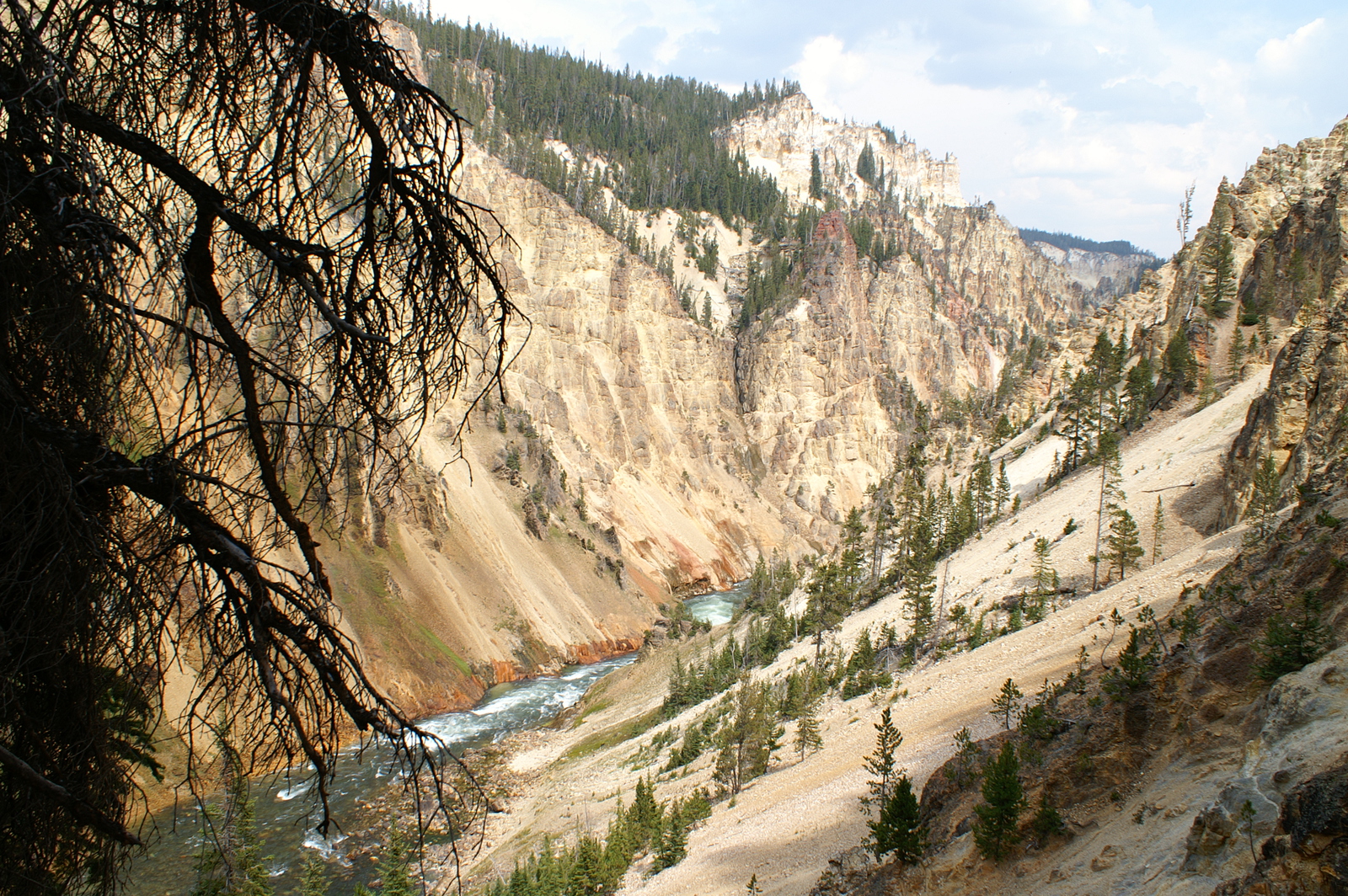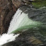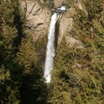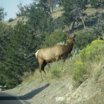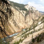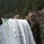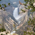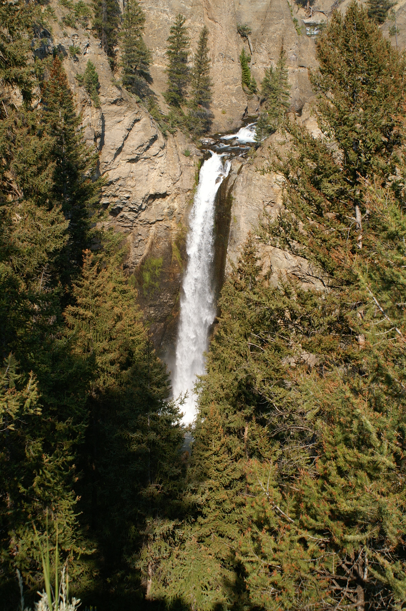 Près du parking de Tower Falls, notre attention fut attirée par l’alignement de touristes visiblement captivés : un jeune elk mâle doté de beaux bois se restaurait dans une haute futaie, avant de partir en bondissant allégrement. La fin du parcours révèle une chute d’eau que l’on peut entrevoir à travers les arbres.