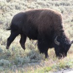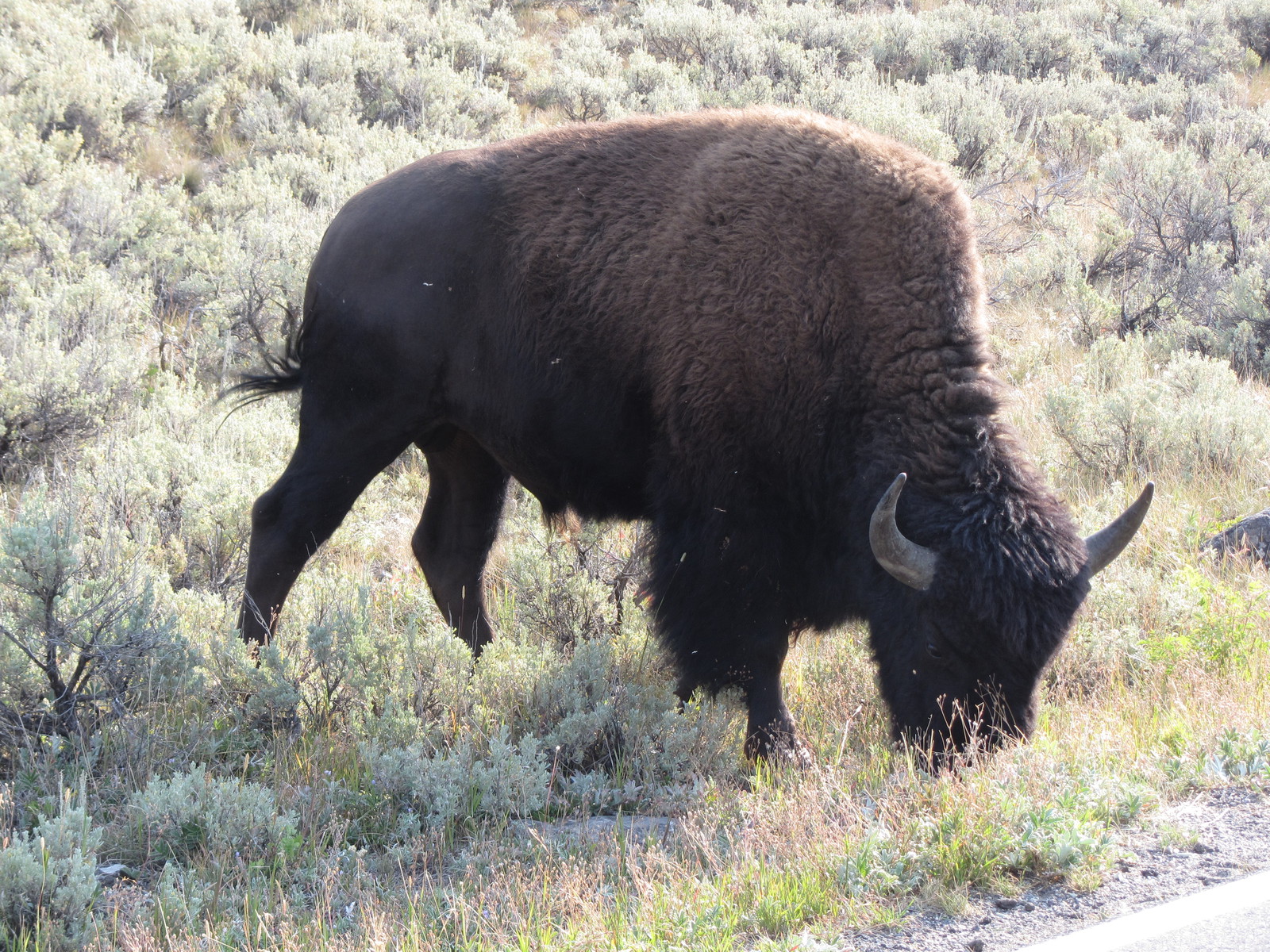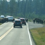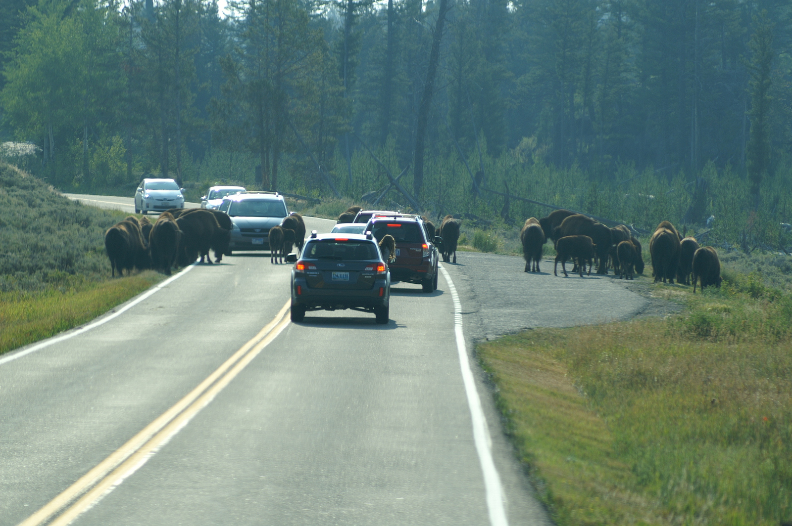 Le trajet vers Tower Junction nous offre la deuxième rencontre animalière de la journée : un troupeau de bisons d’au moins 25 têtes a envahi la route et broute paisiblement les herbes du bas-côté. Nous nous retrouvons alors aux premières loges pour en observer les différents individus plus ou moins jeunes, et les suivre pendant de longues minutes. Cette rencontre que nous espérions a donc finalement bien eu lieu !